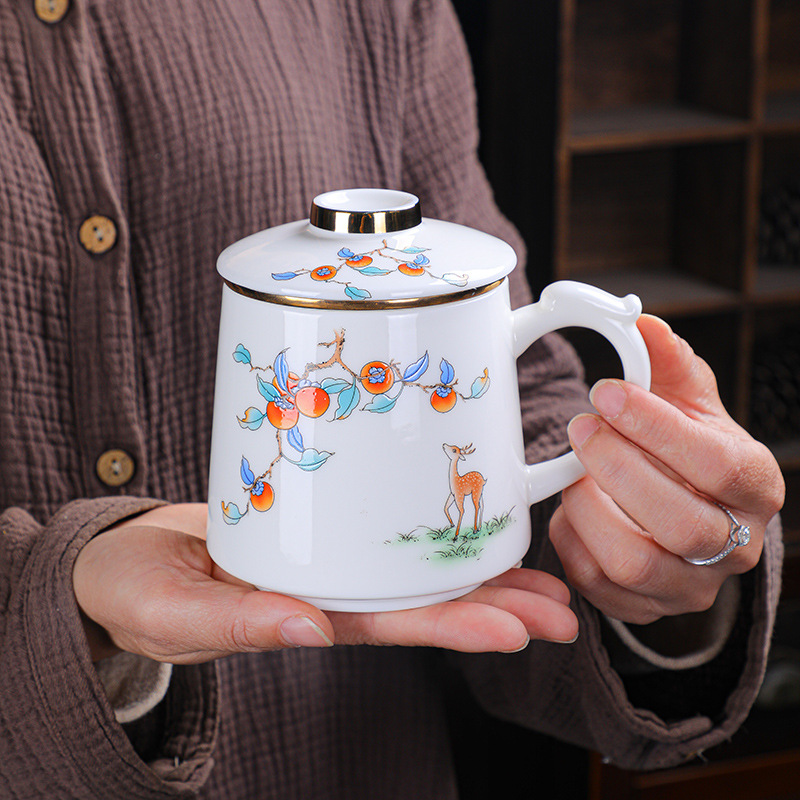陶瓷办公杯羊脂玉茶水分离马克杯功夫泡茶杯礼品杯公司会议杯批发