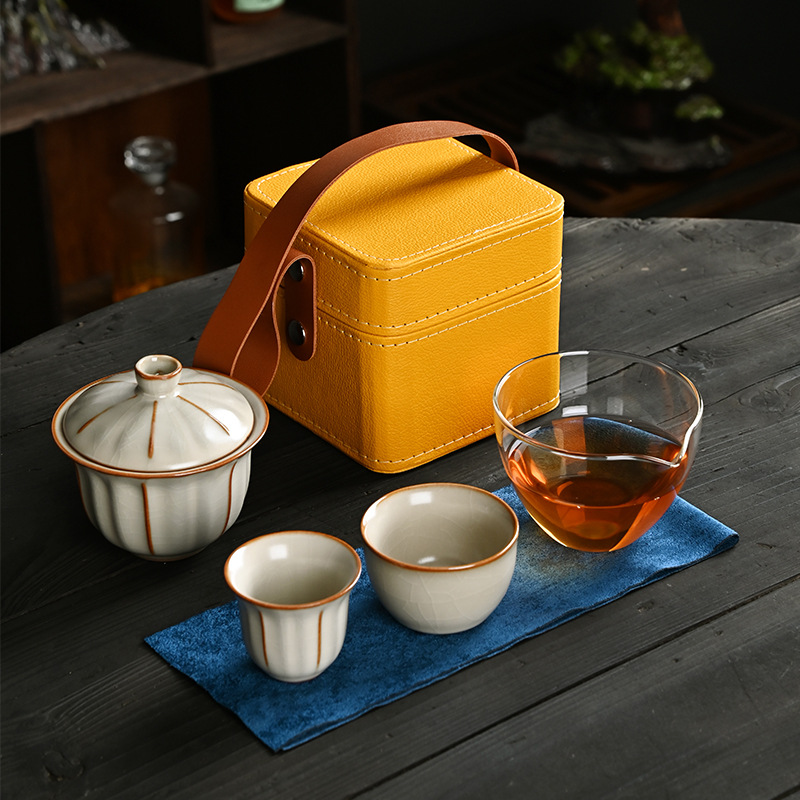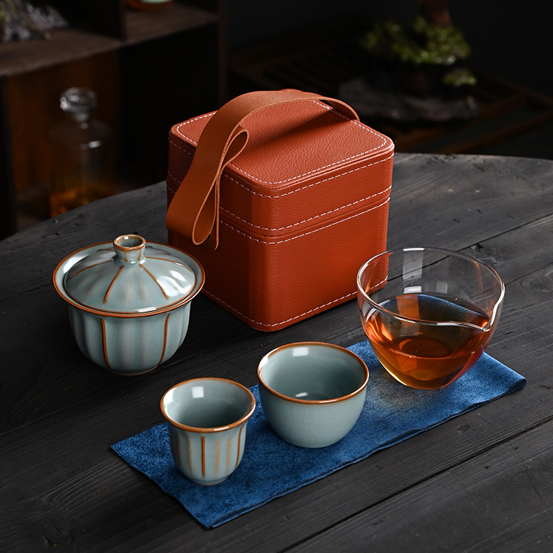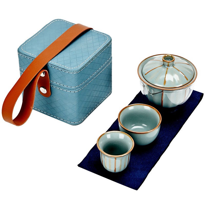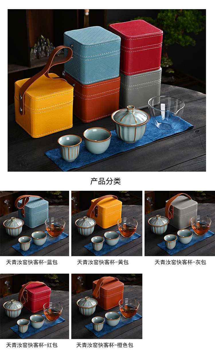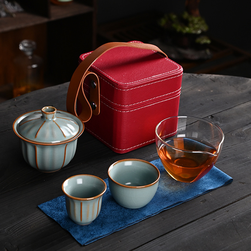 汝窑快客杯户外便携旅行茶具一壶两杯功夫茶具礼盒装商务伴手礼