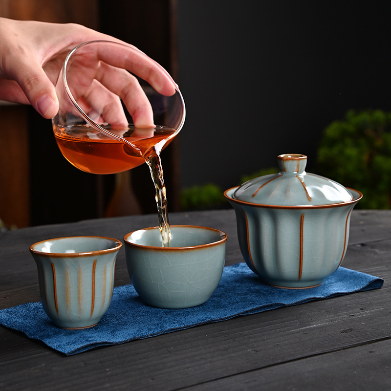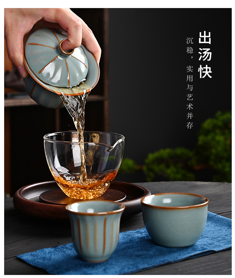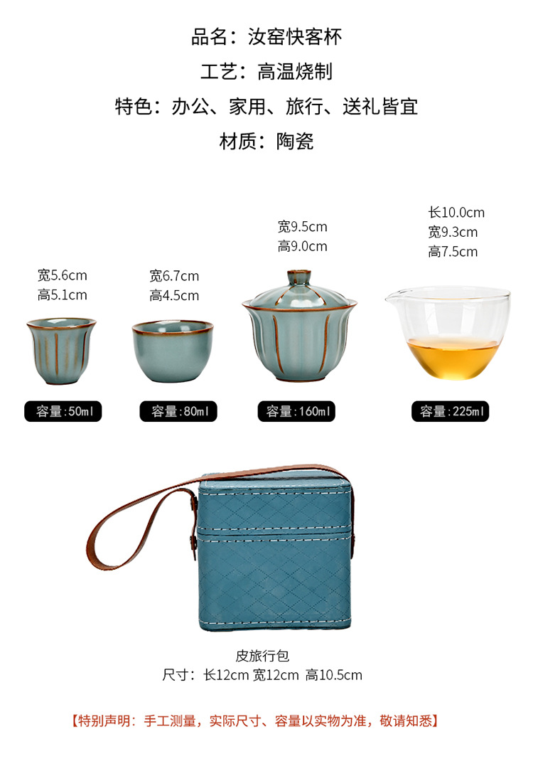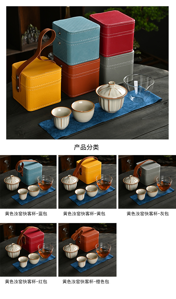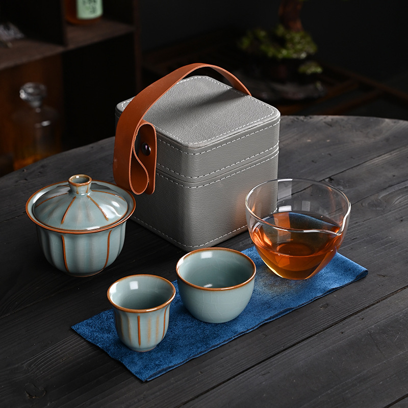 汝窑快客杯户外便携旅行茶具一壶两杯功夫茶具礼盒装商务伴手礼