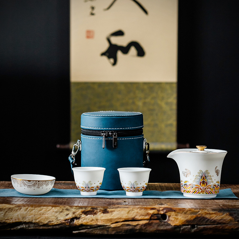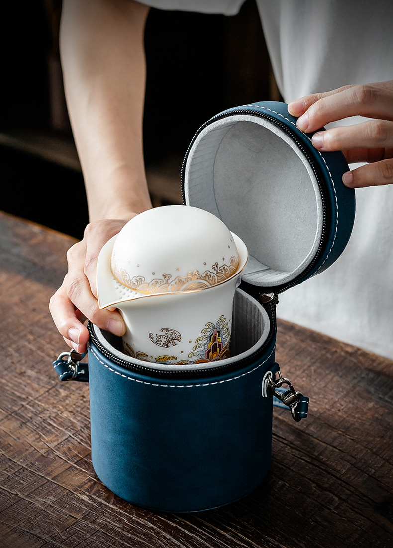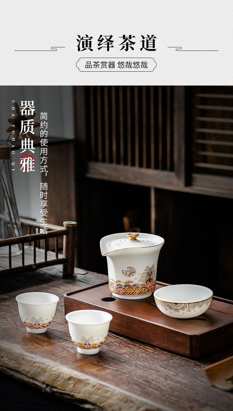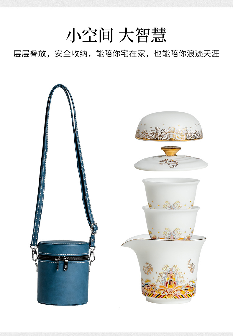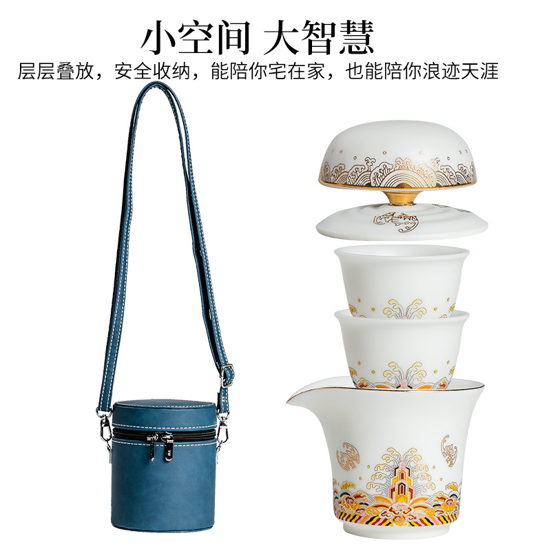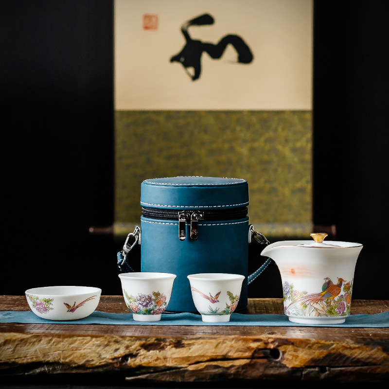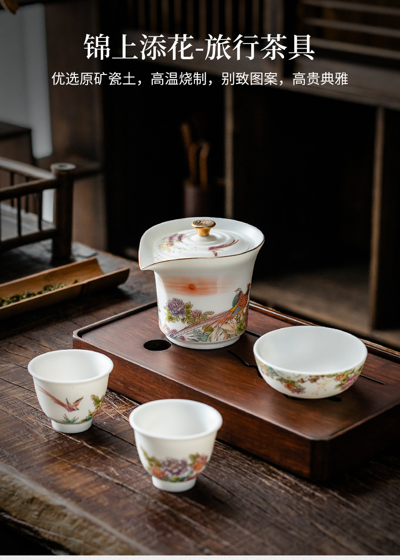 羊脂玉一壶三杯便携陶瓷简约户外随身快客杯防烫功夫旅行礼品茶具