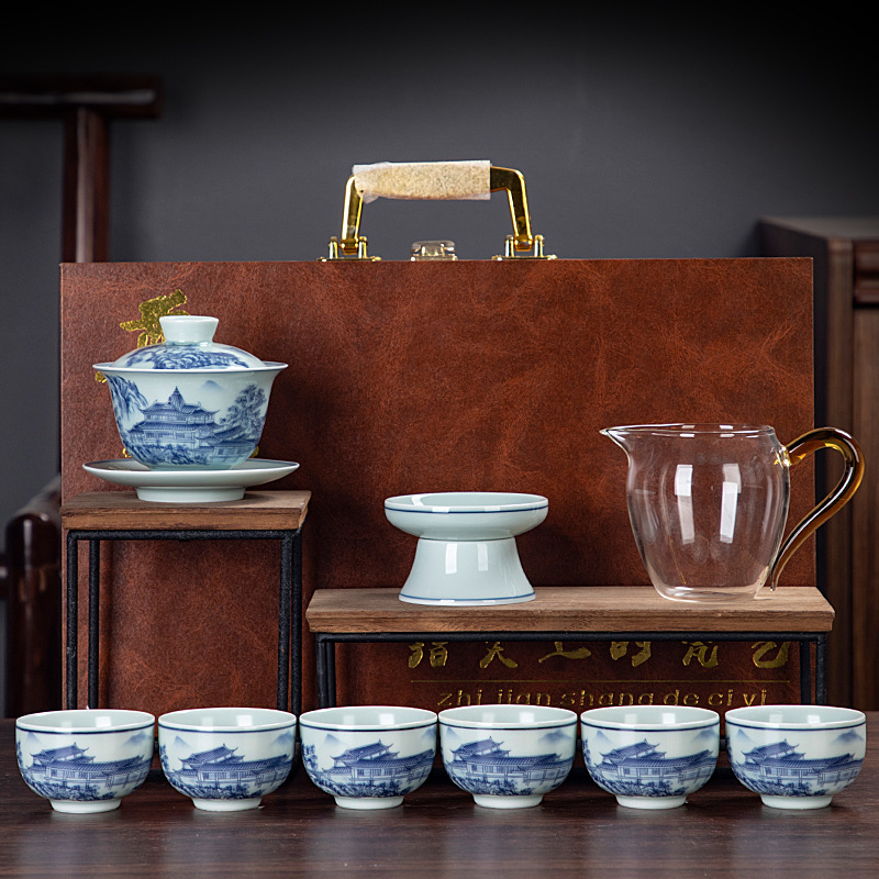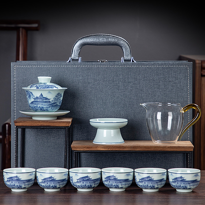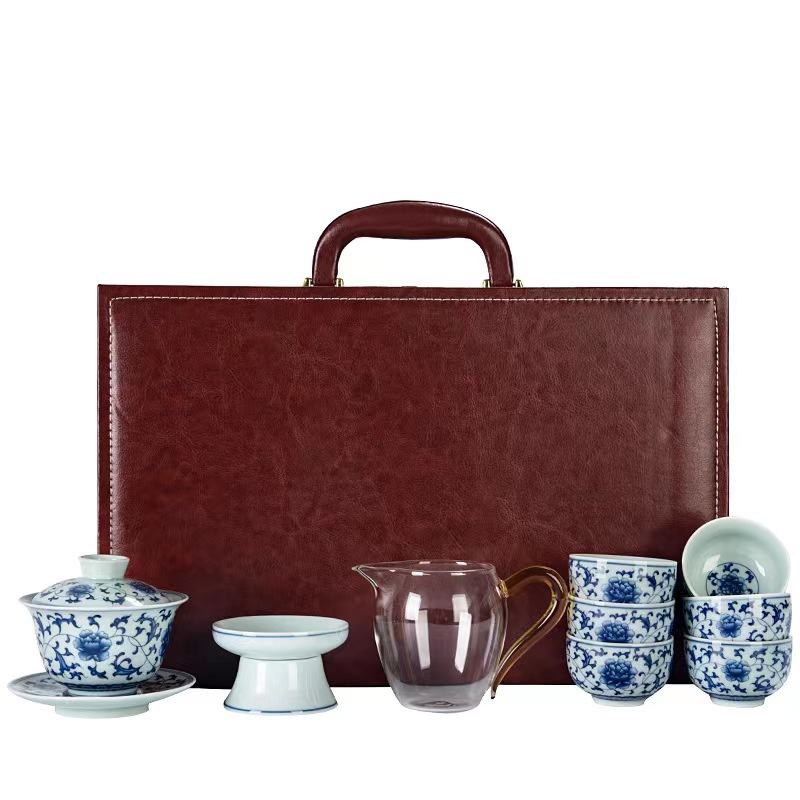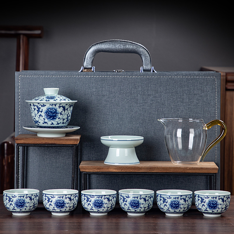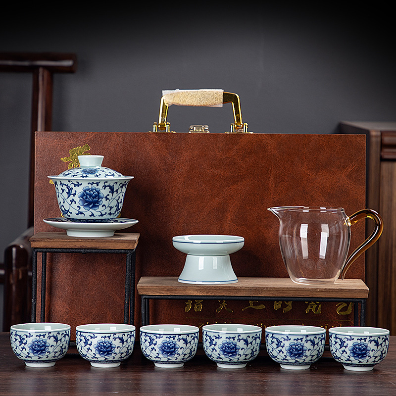 青花瓷釉下彩复古陶瓷功夫茶具套装商务礼品伴手礼整套高档礼盒装