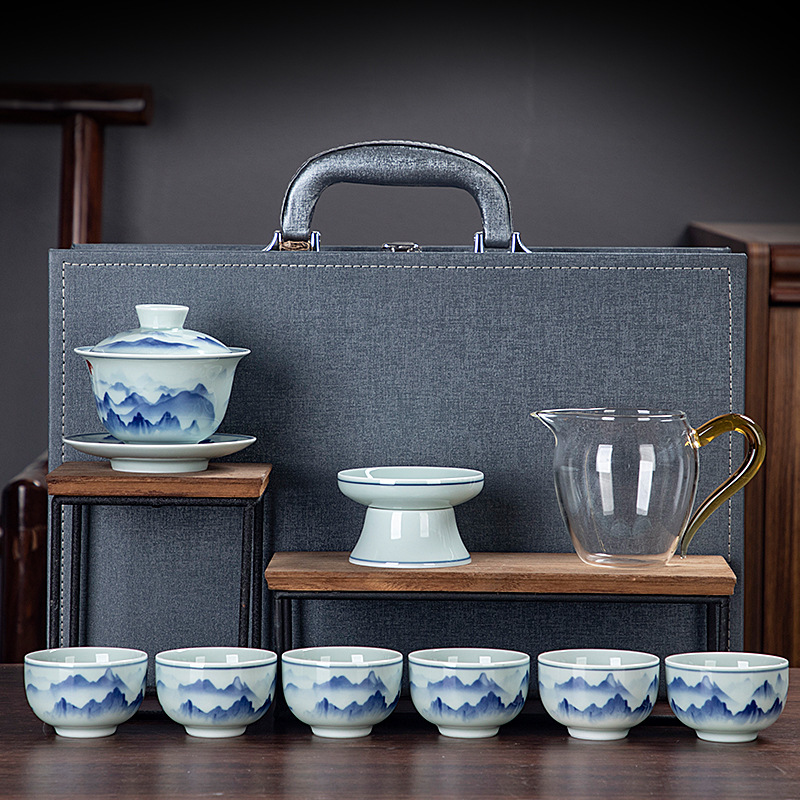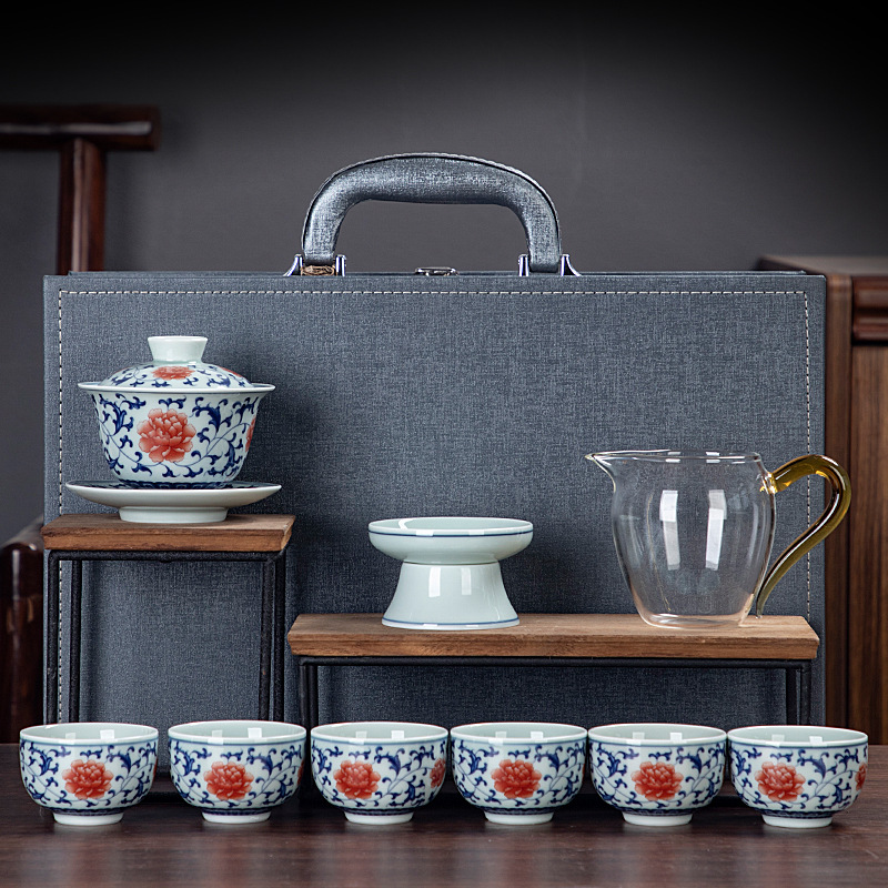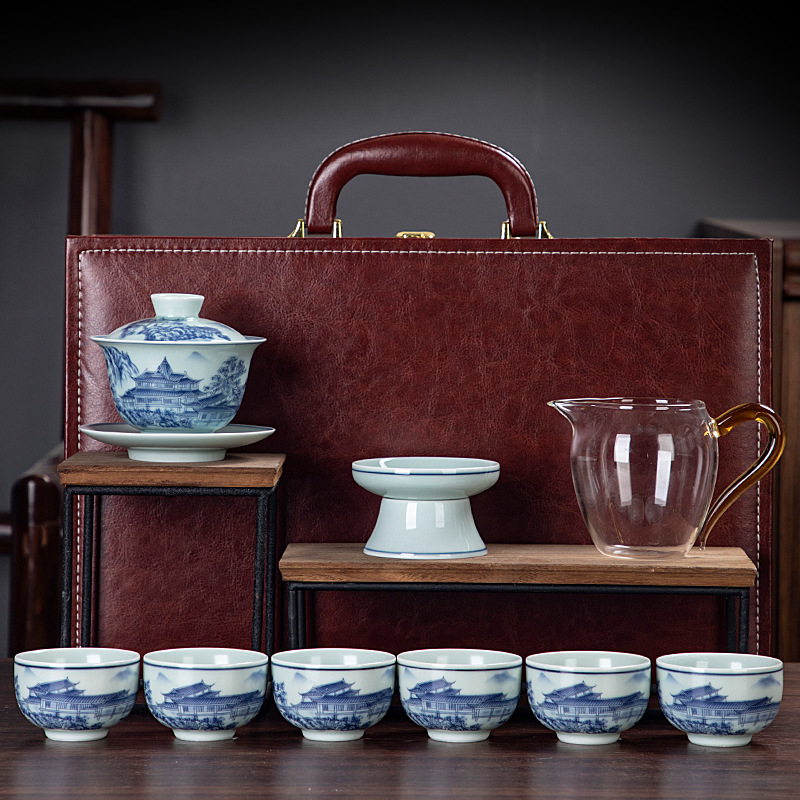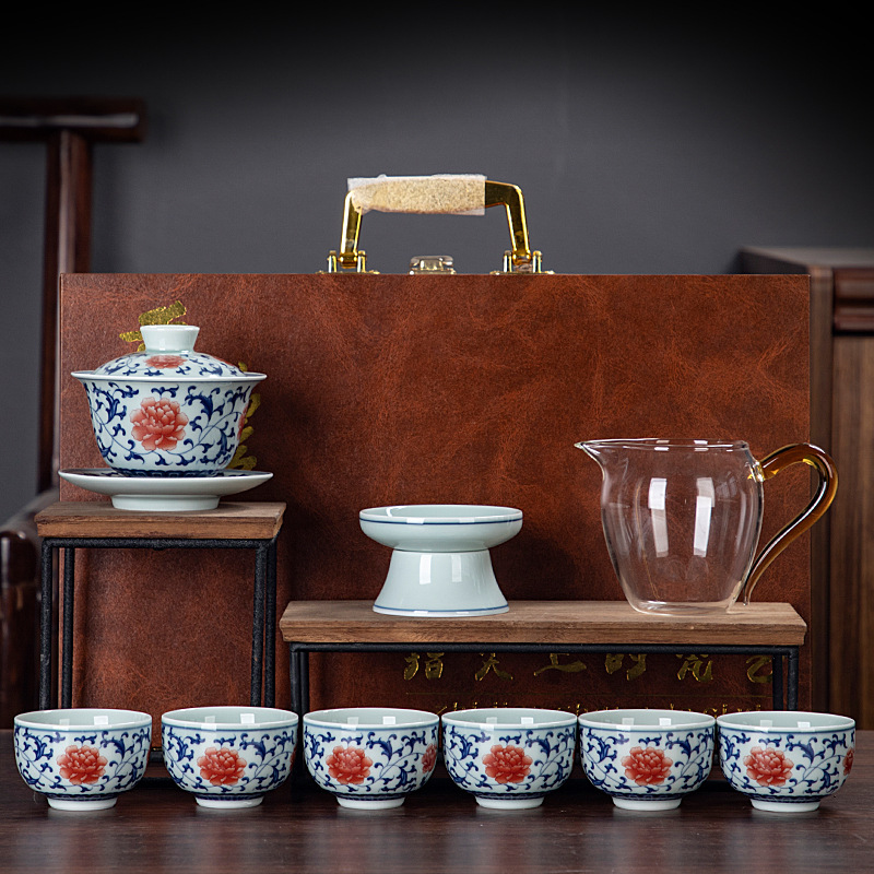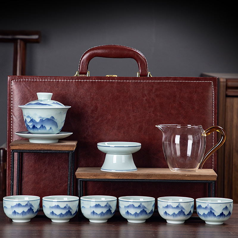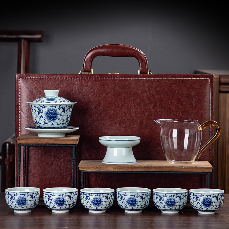 青花瓷釉下彩复古陶瓷功夫茶具套装商务礼品伴手礼整套高档礼盒装