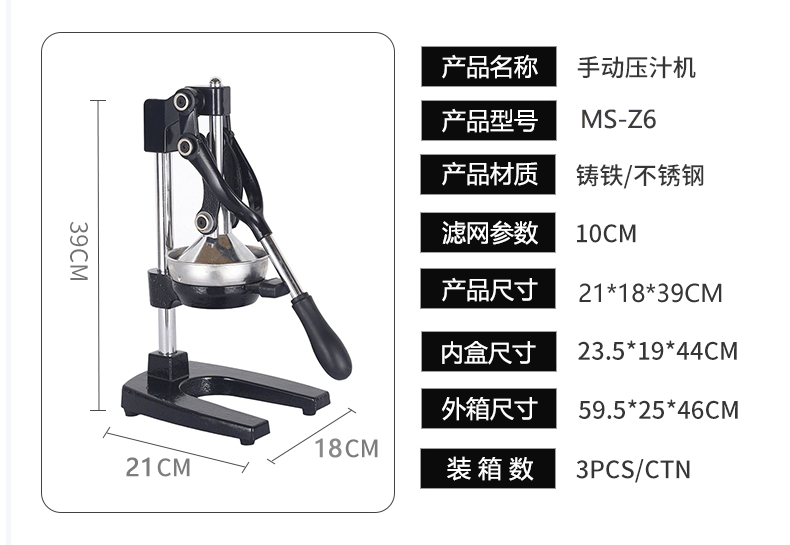 厨具手动榨汁机大号手压鲜橙榨汁器摆摊橙子柠檬手工压榨压汁机子