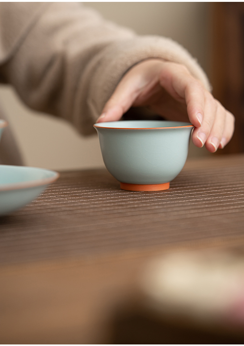 汝窑茶杯开片可养主人杯家用功夫喝茶个人杯茶具陶瓷品茗单杯批发