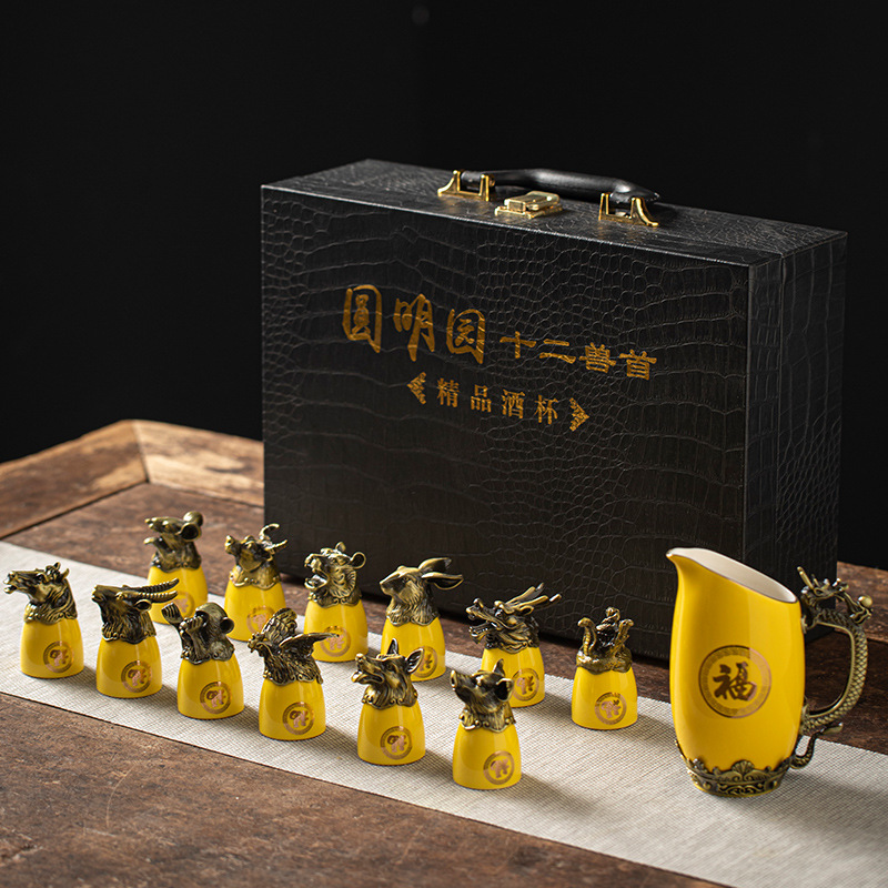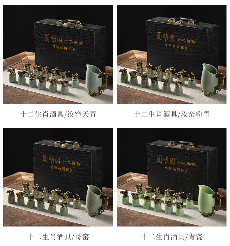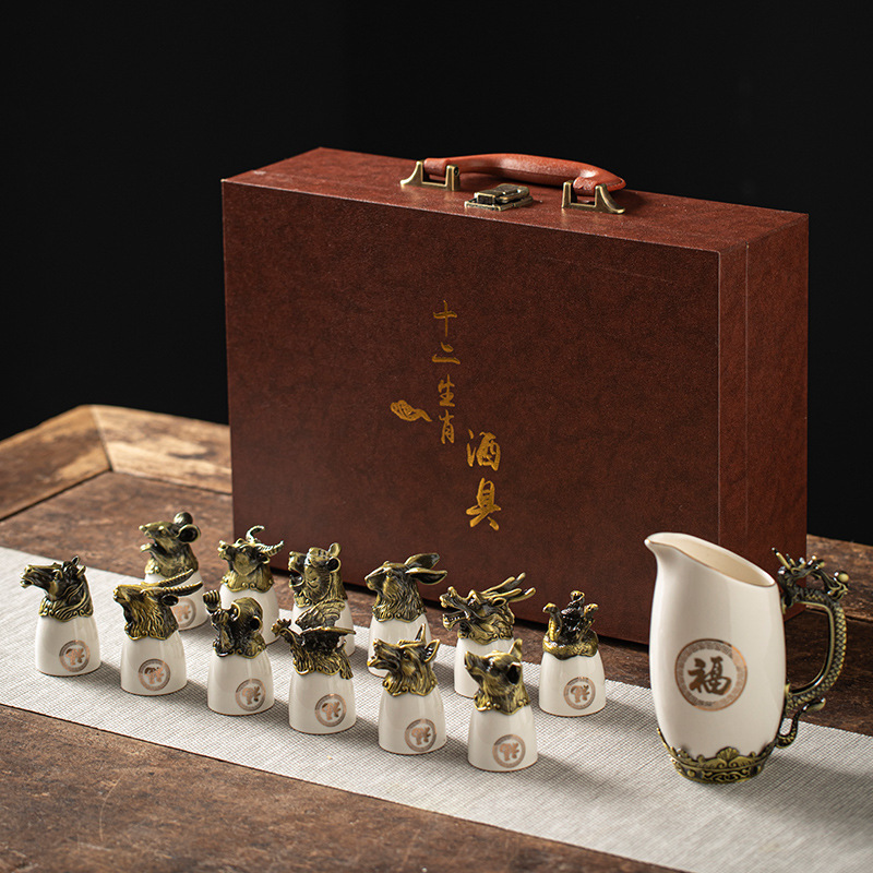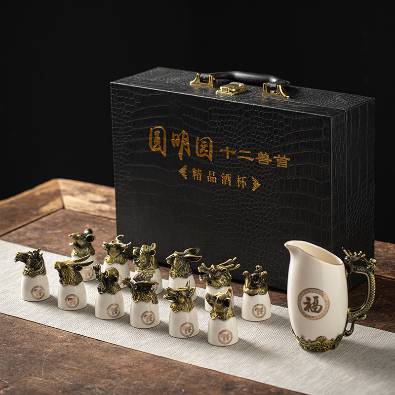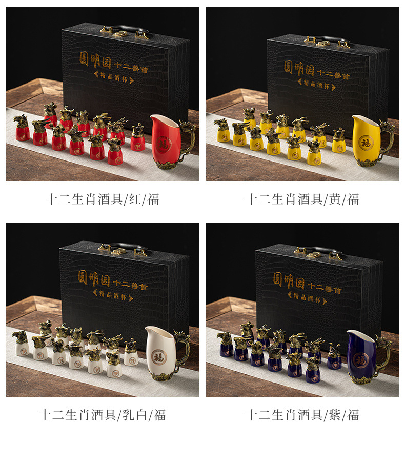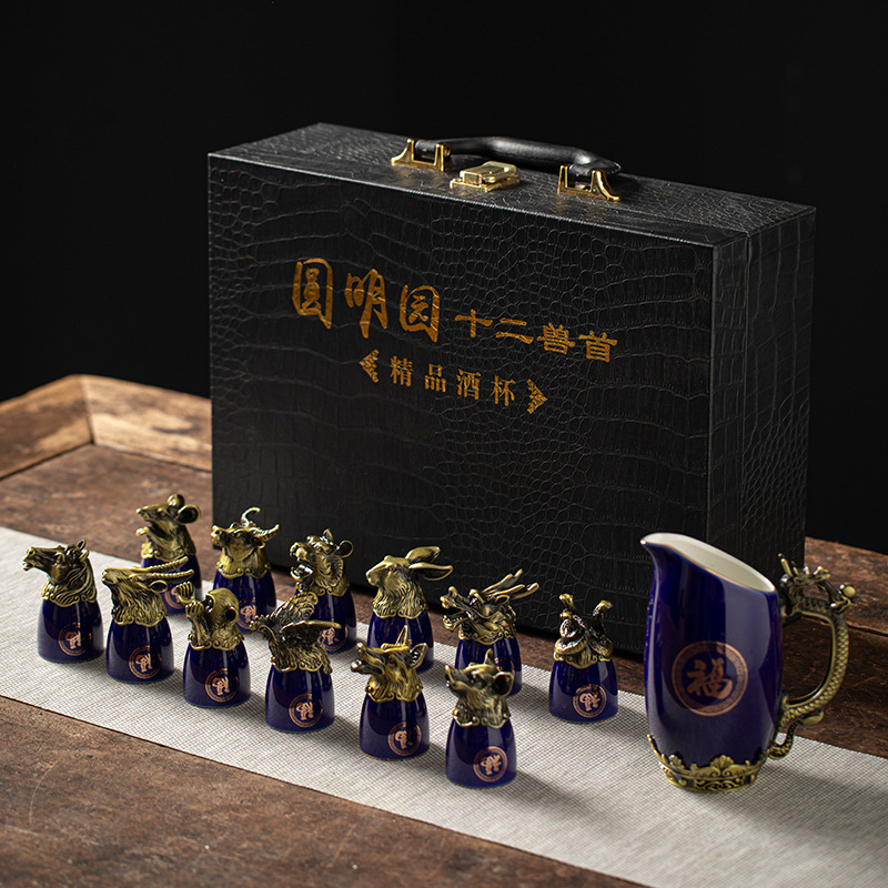 高档十二生肖陶瓷酒具礼盒套装兽首白酒杯分酒器节日商务伴手礼品
