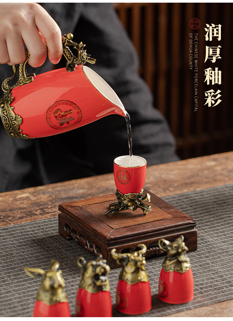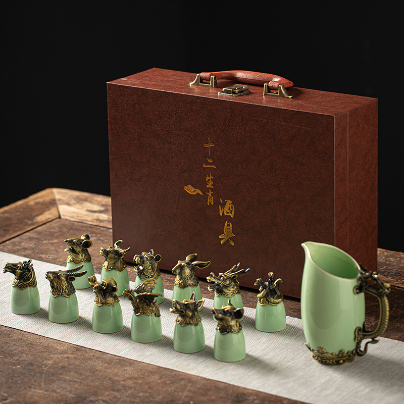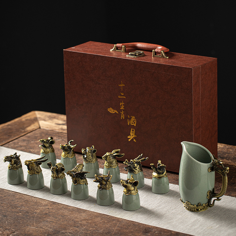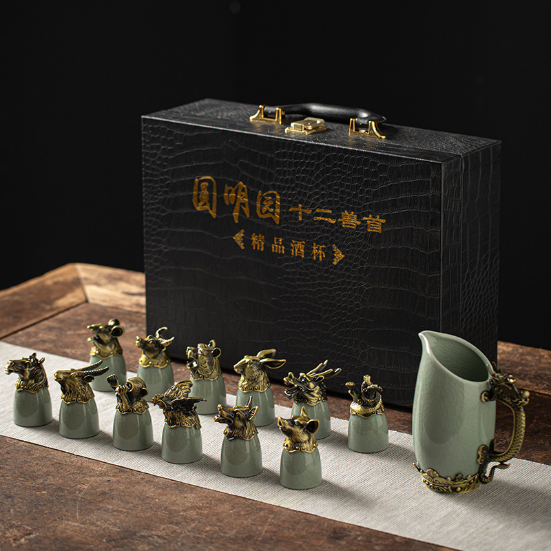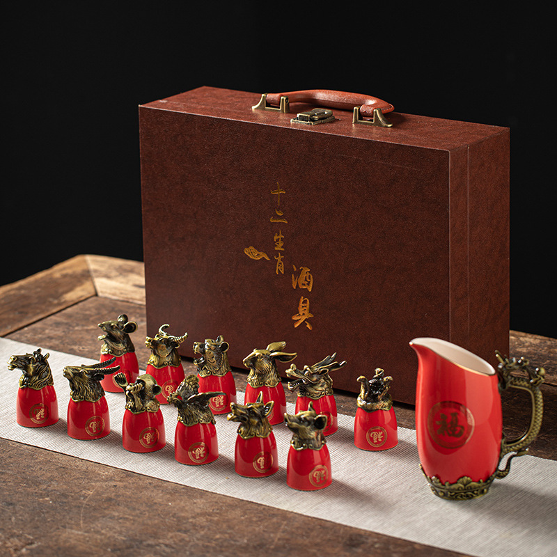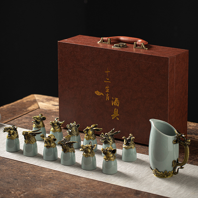 高档十二生肖陶瓷酒具礼盒套装兽首白酒杯分酒器节日商务伴手礼品