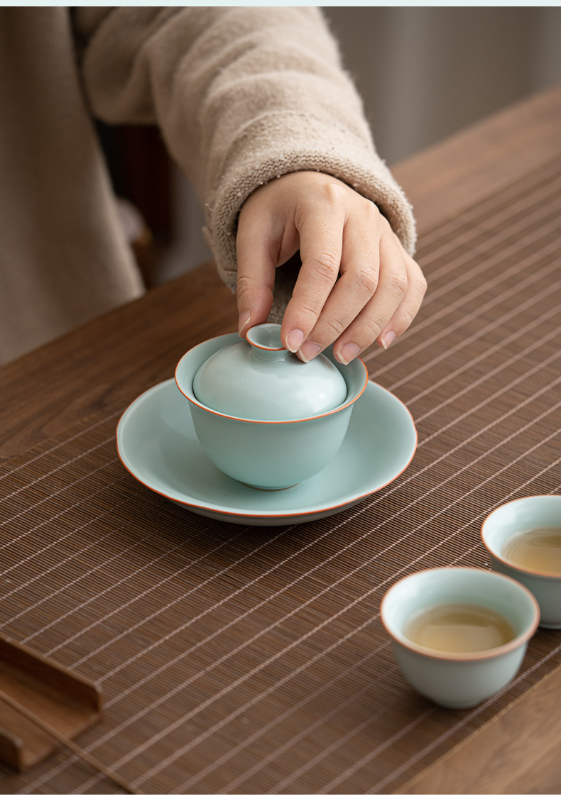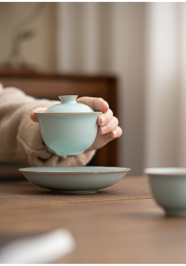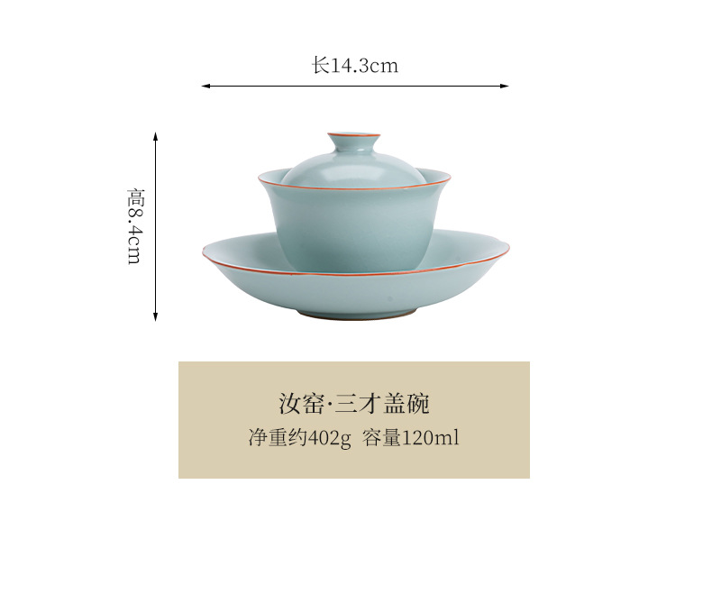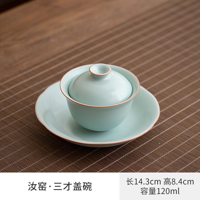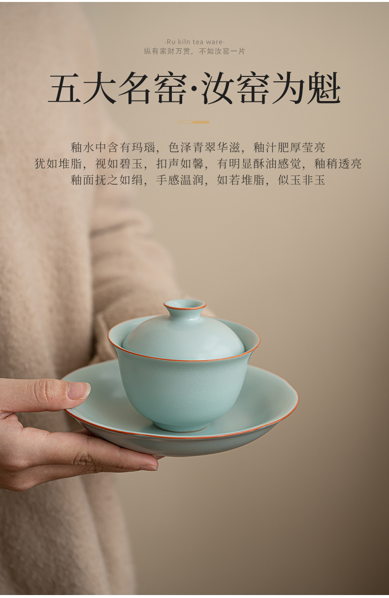 轻奢汝窑大号三才盖碗陶瓷功夫茶具家用单个开片泡茶器喝茶碗包邮