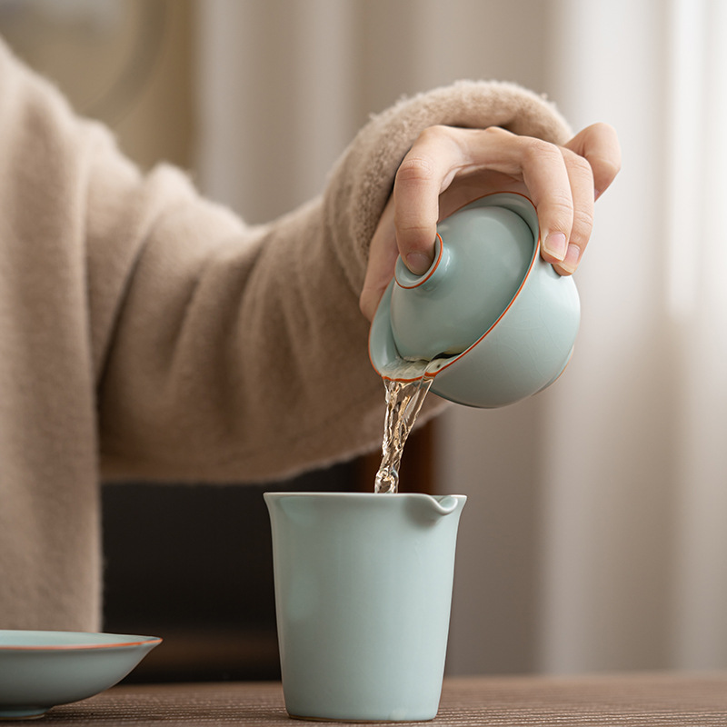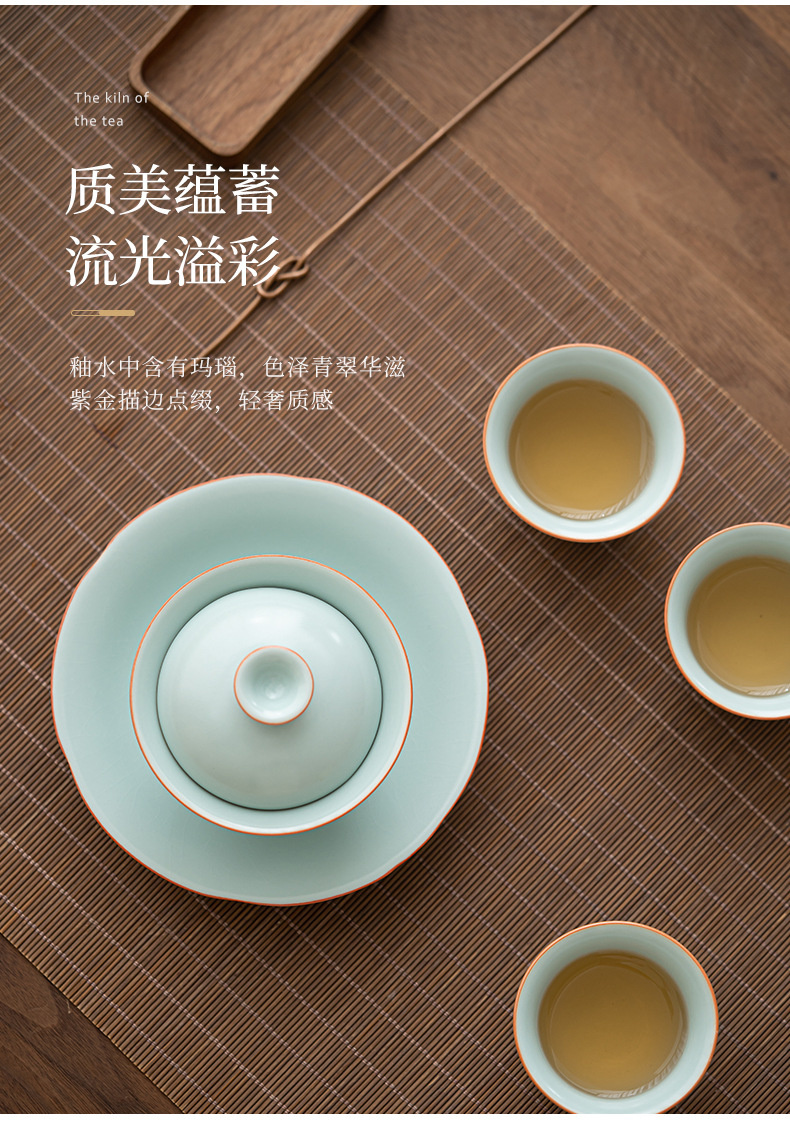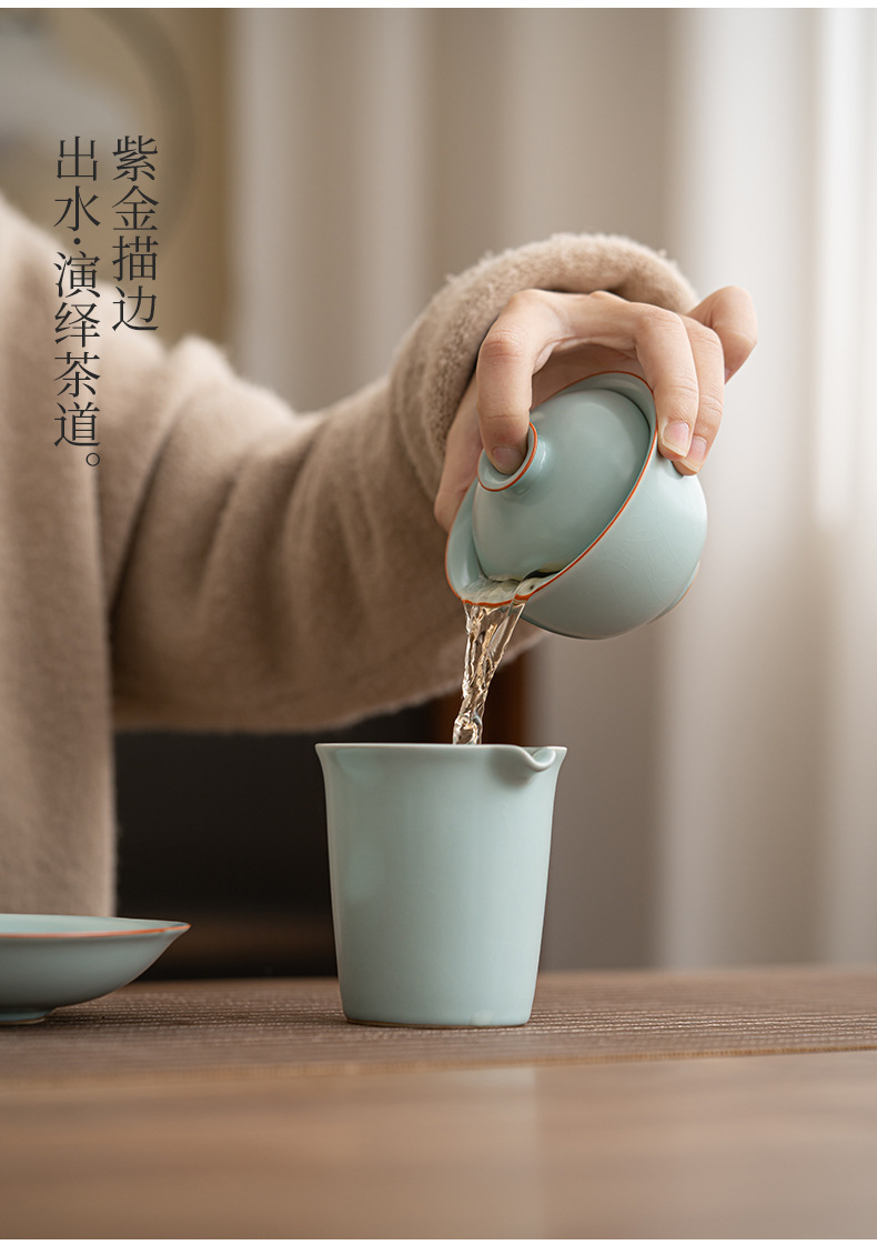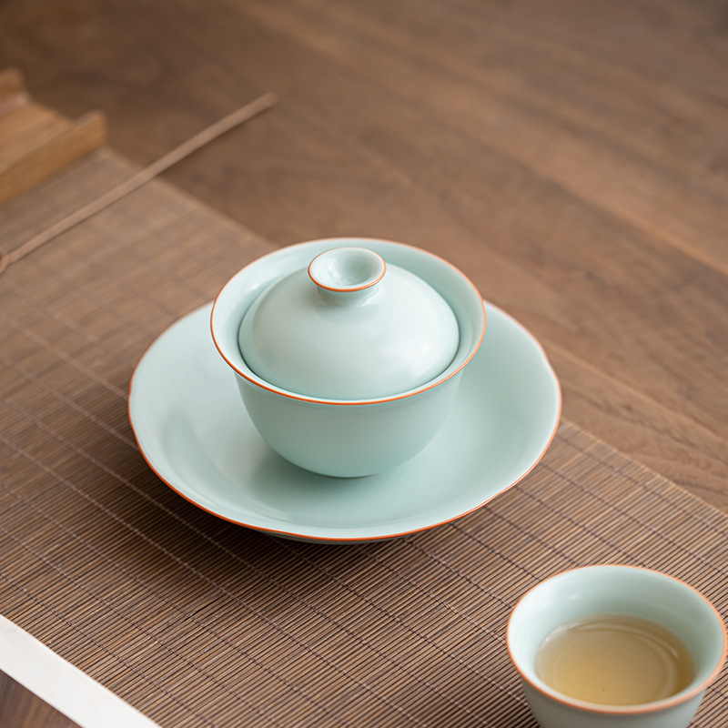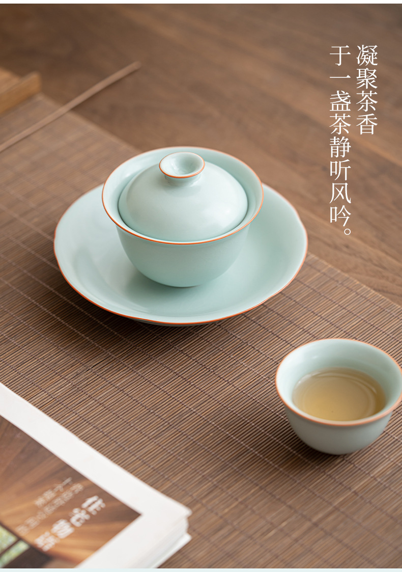 轻奢汝窑大号三才盖碗陶瓷功夫茶具家用单个开片泡茶器喝茶碗包邮