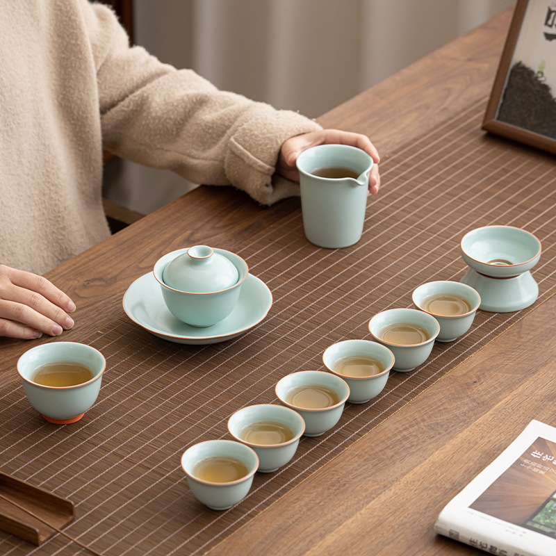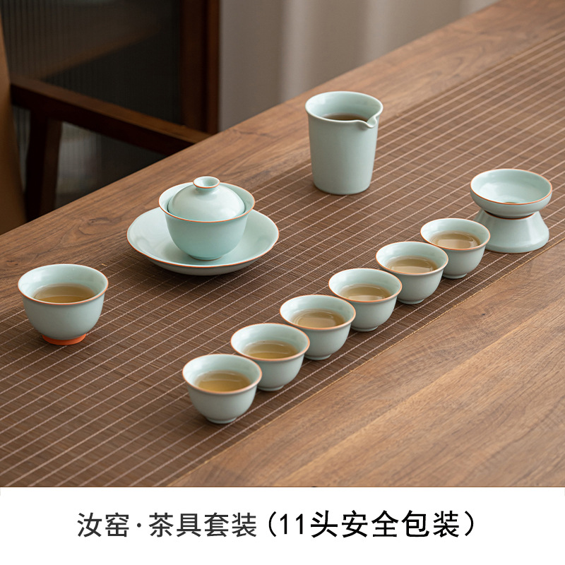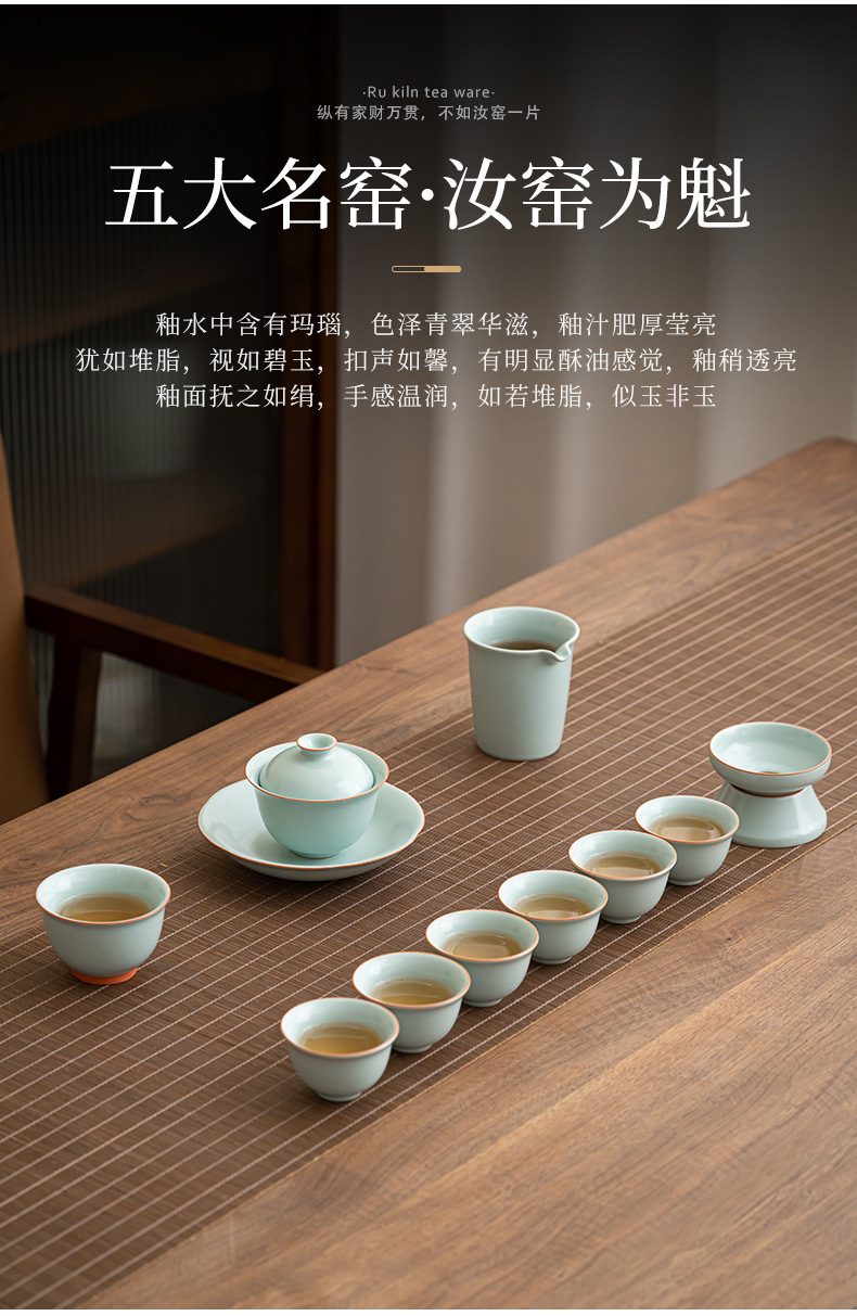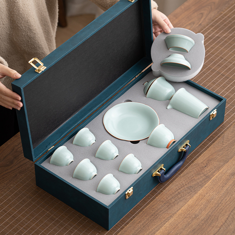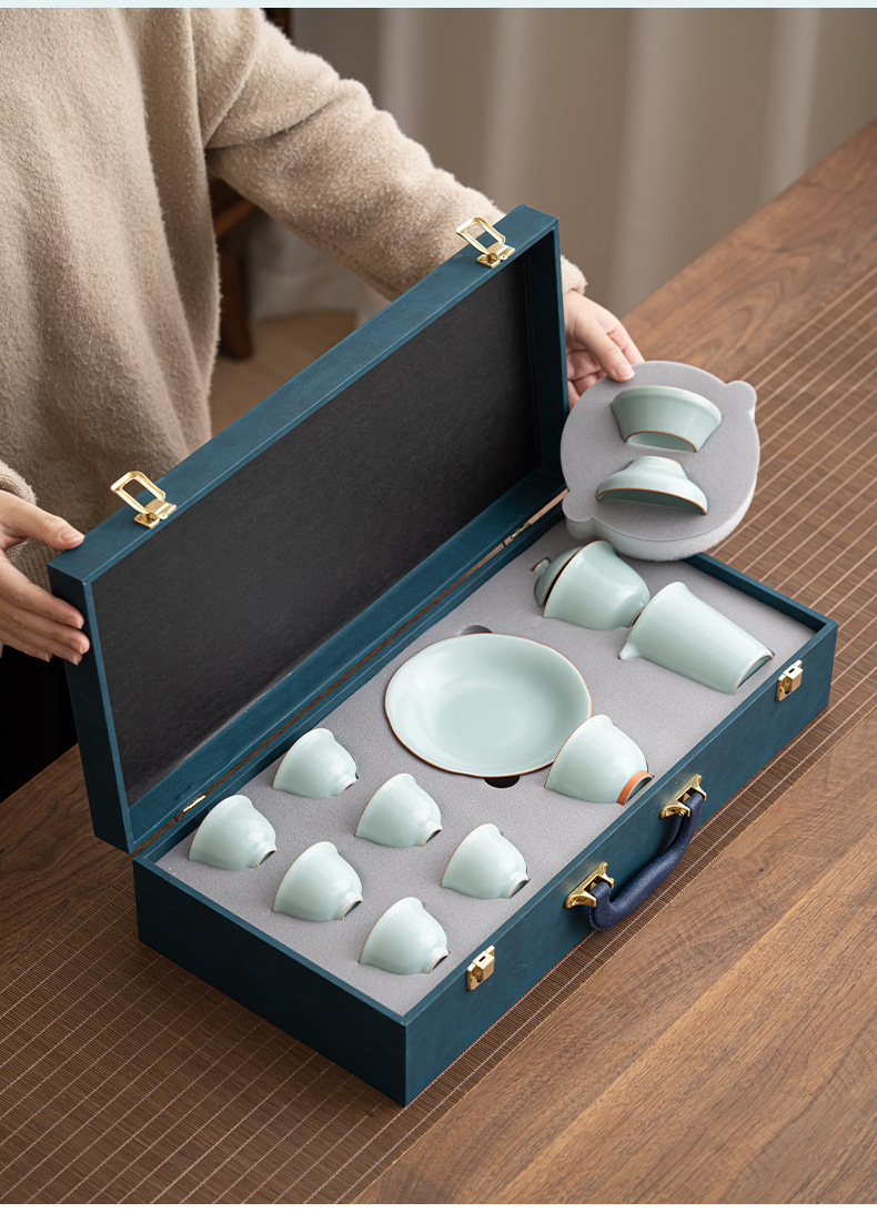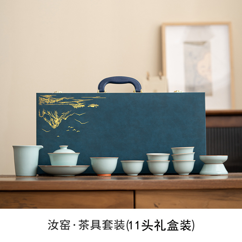 轻奢高档汝窑茶具套装可养开片功夫礼盒装家用茶杯茶碗陶瓷订LOGO