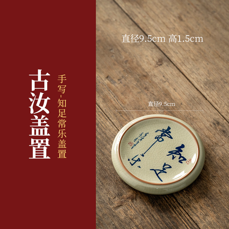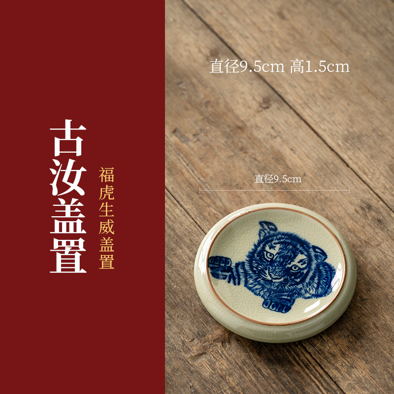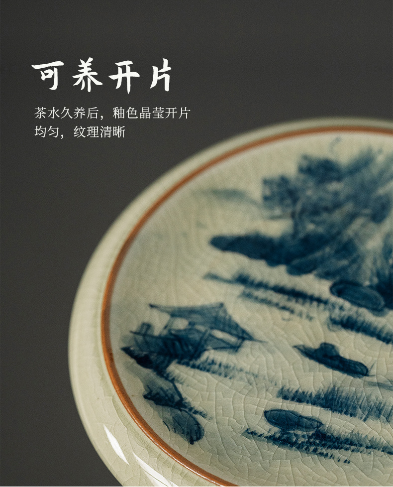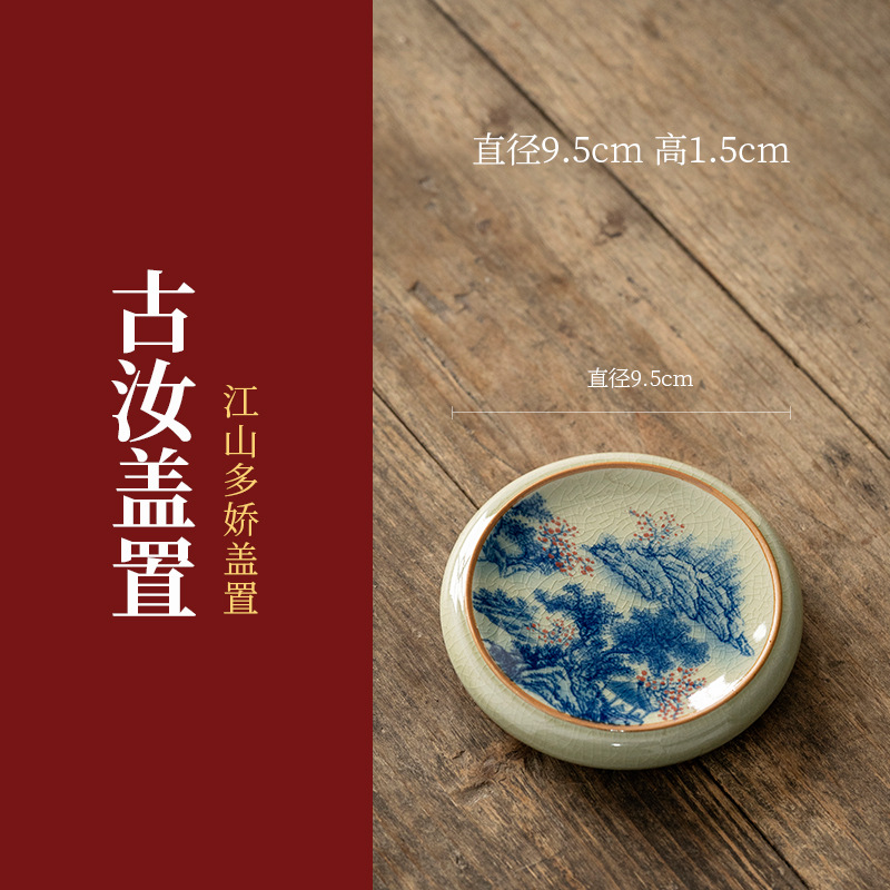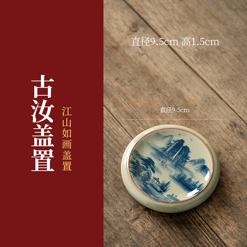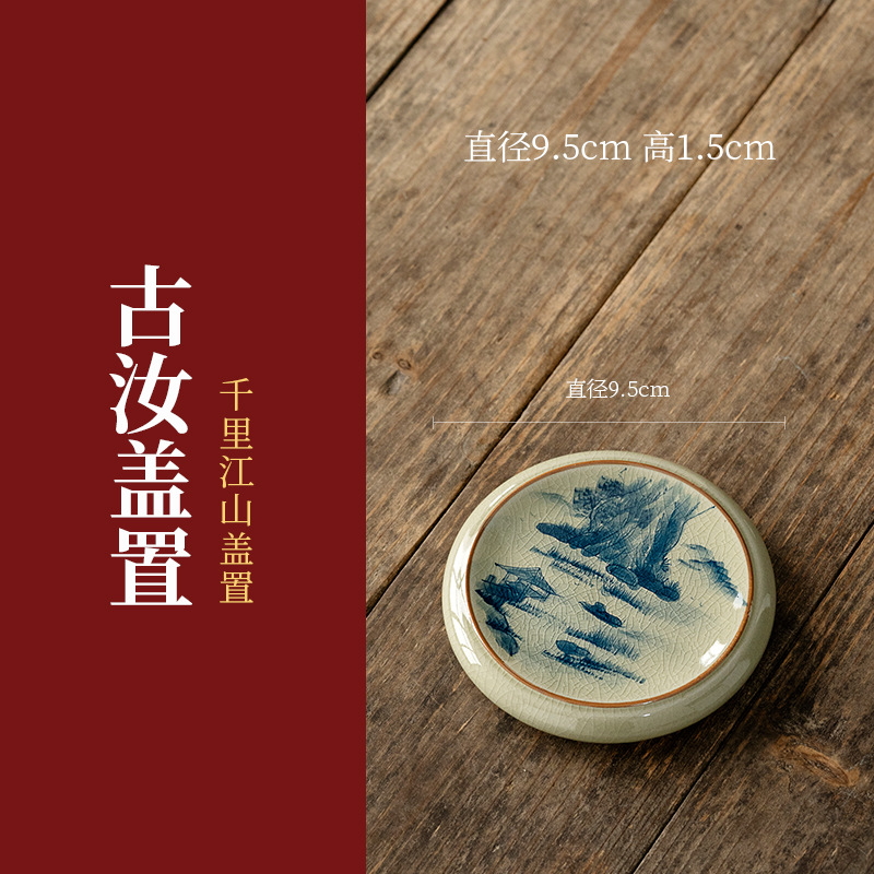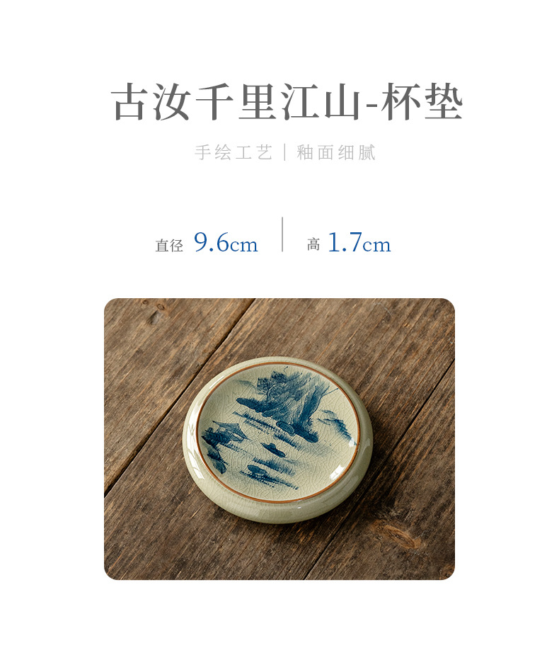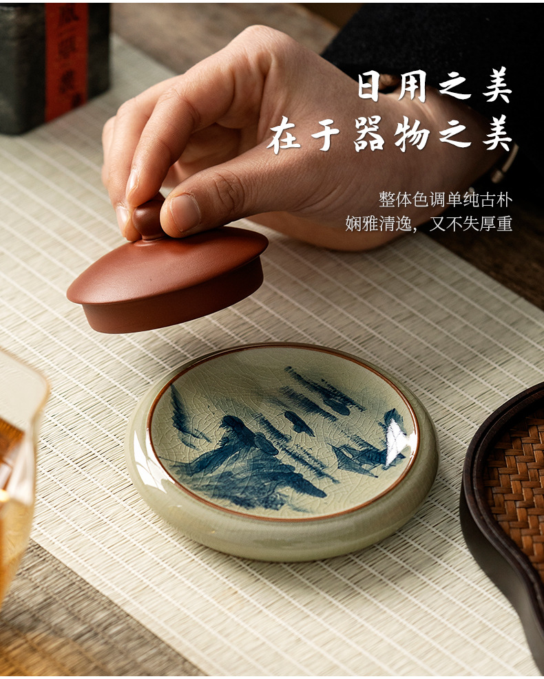手绘复古老陶泥青花山水杯垫陶瓷功夫茶道配件禅意盖置家用茶杯托