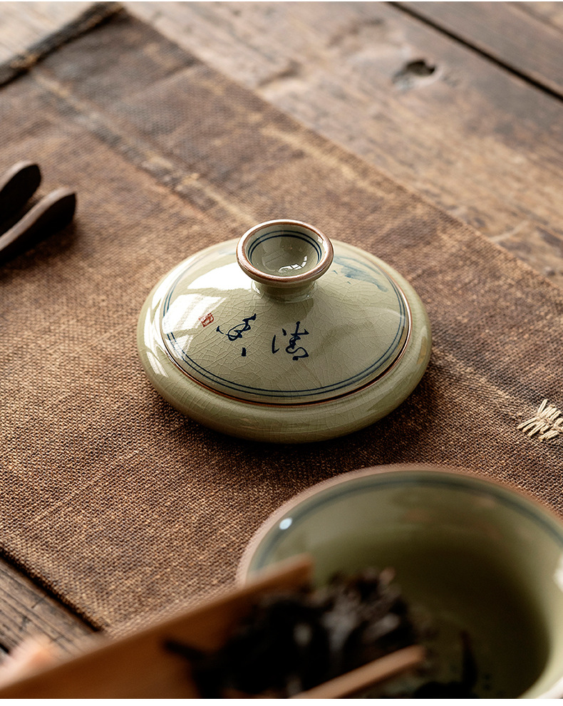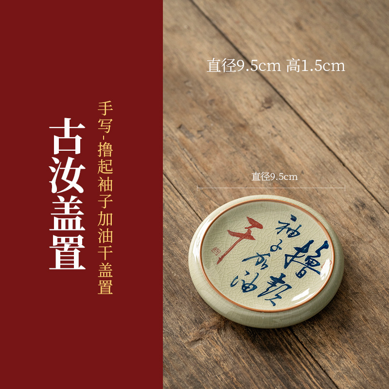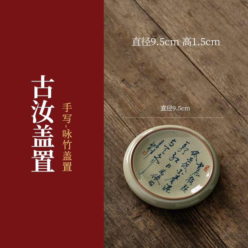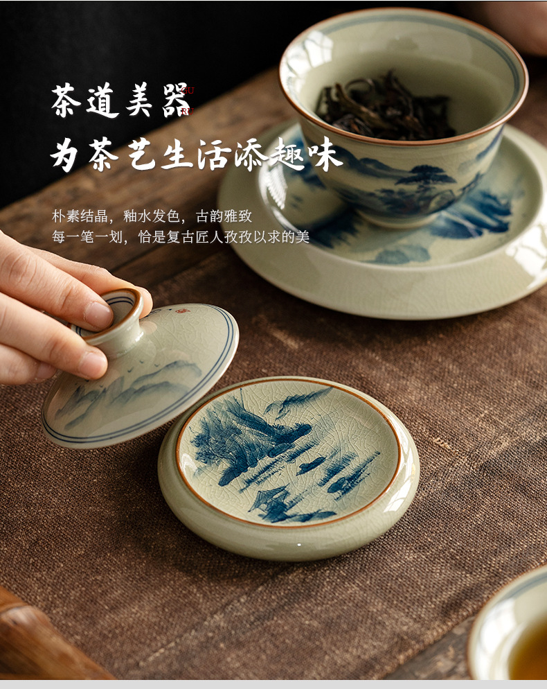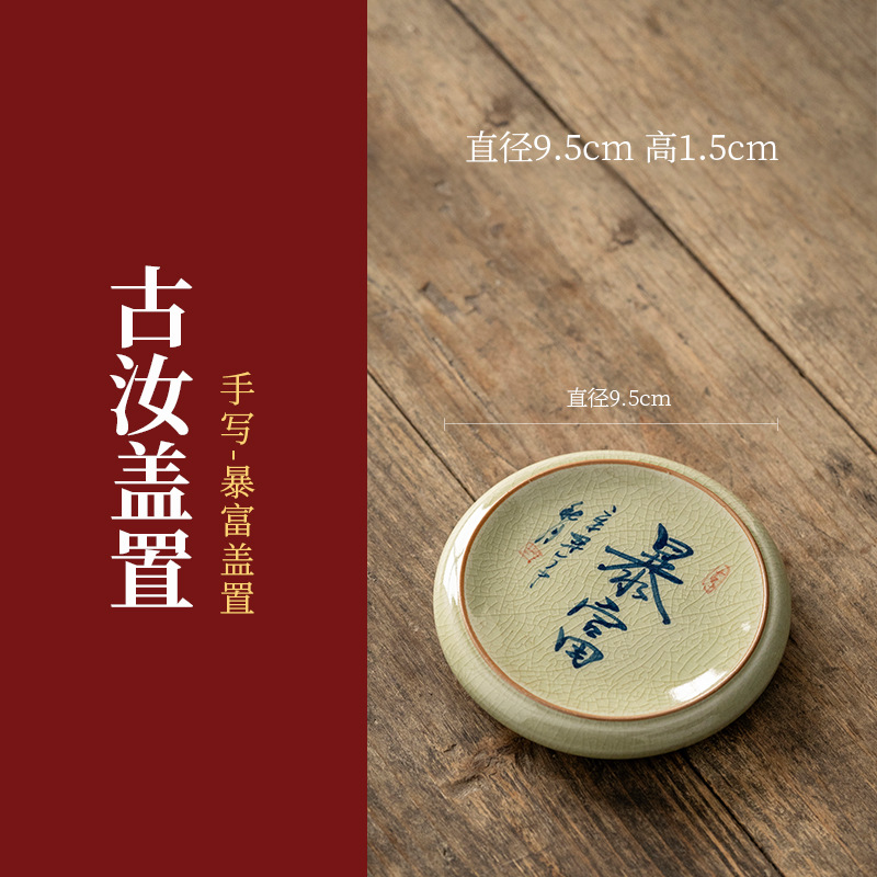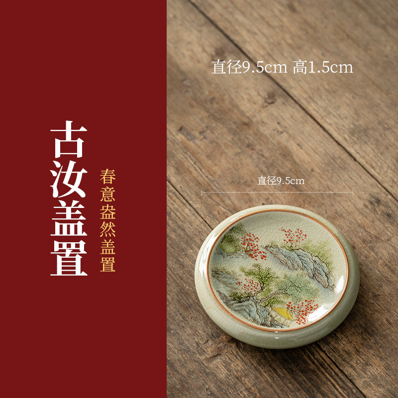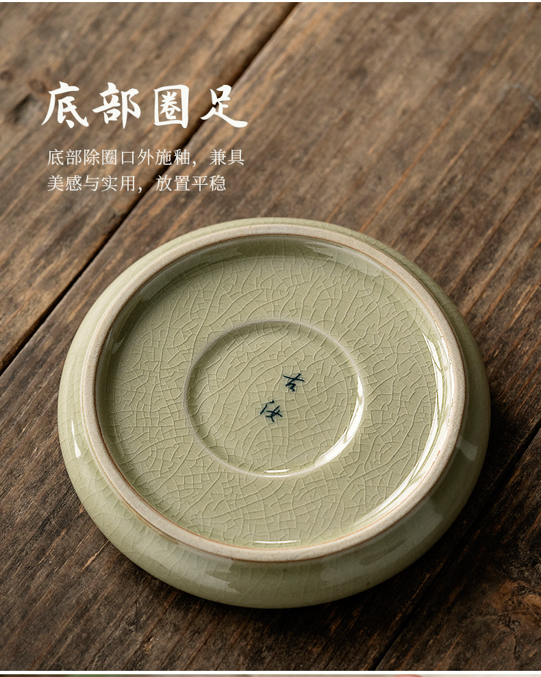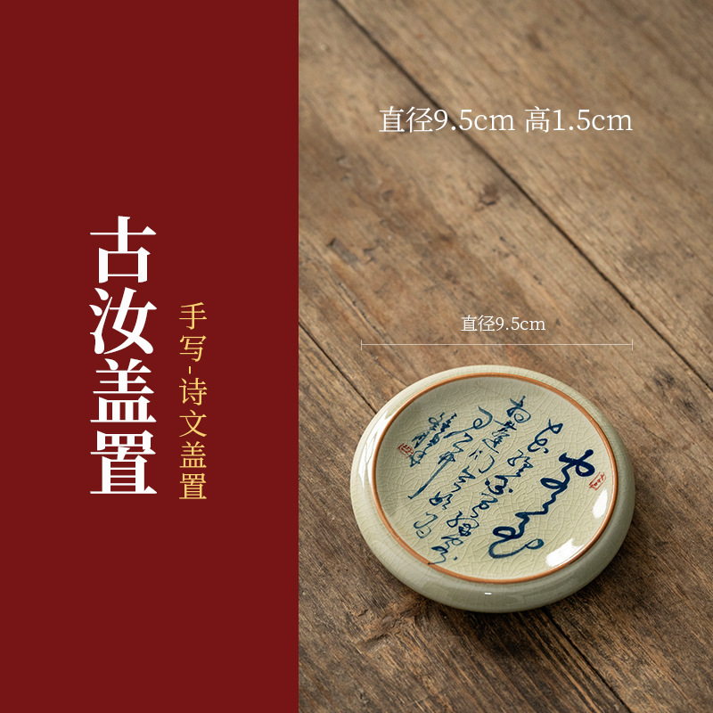 手绘复古老陶泥青花山水杯垫陶瓷功夫茶道配件禅意盖置家用茶杯托