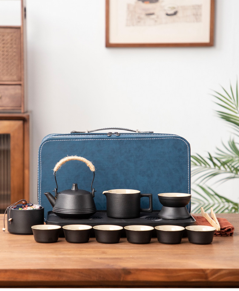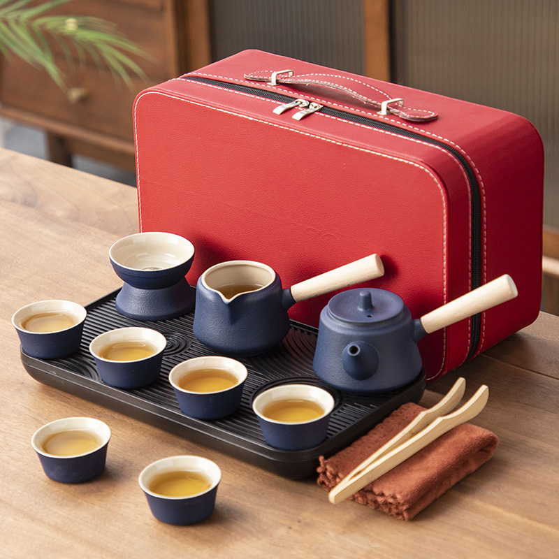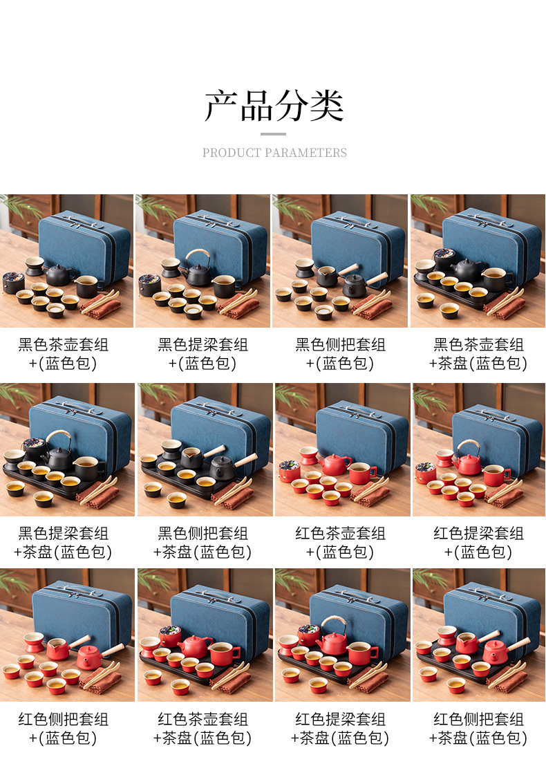 日式旅行茶具套装办公室家用泡茶壶户外功夫陶瓷茶杯小茶盘便携包
