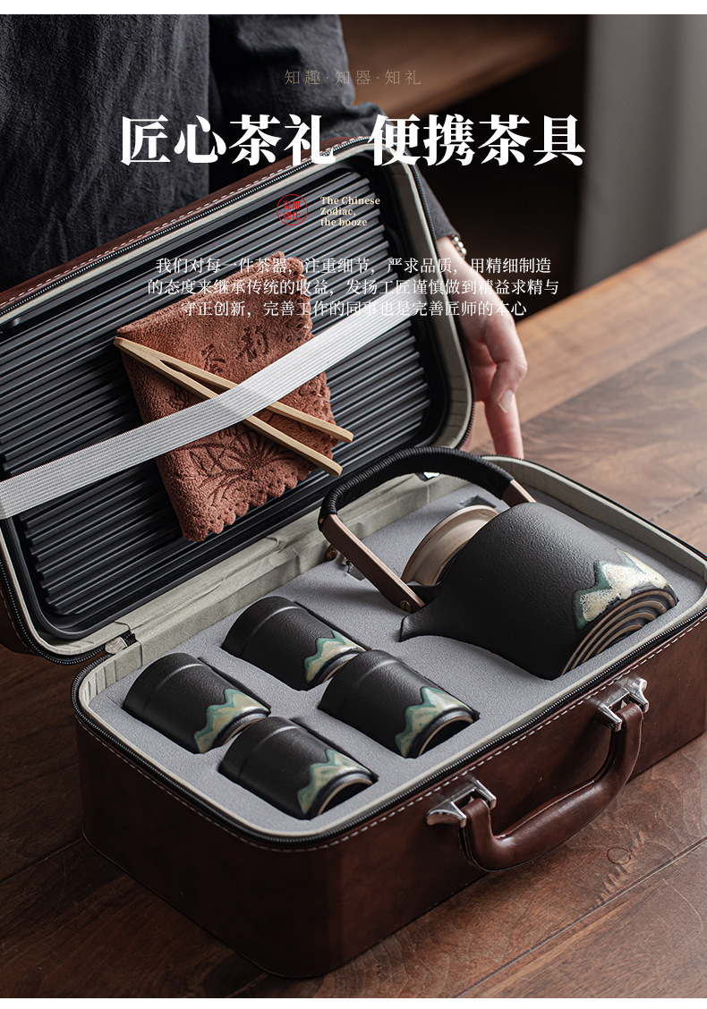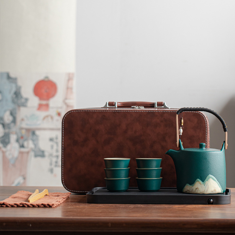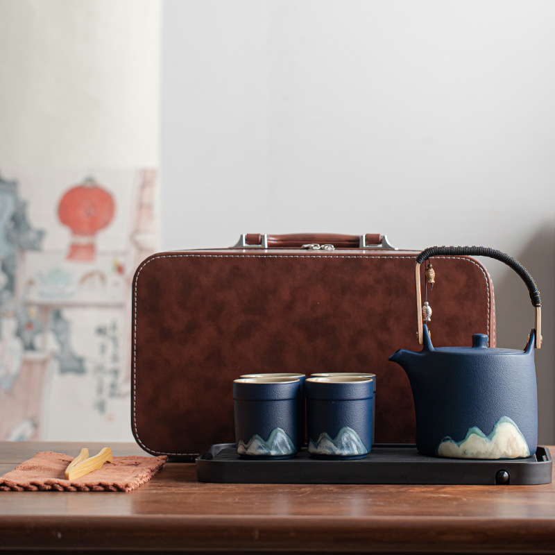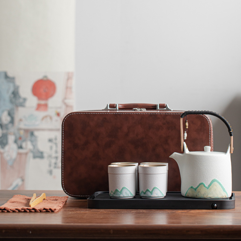 大容量提梁壶旅行功夫茶具套装防烫露营户外便携收纳泡茶印刷LOGO
