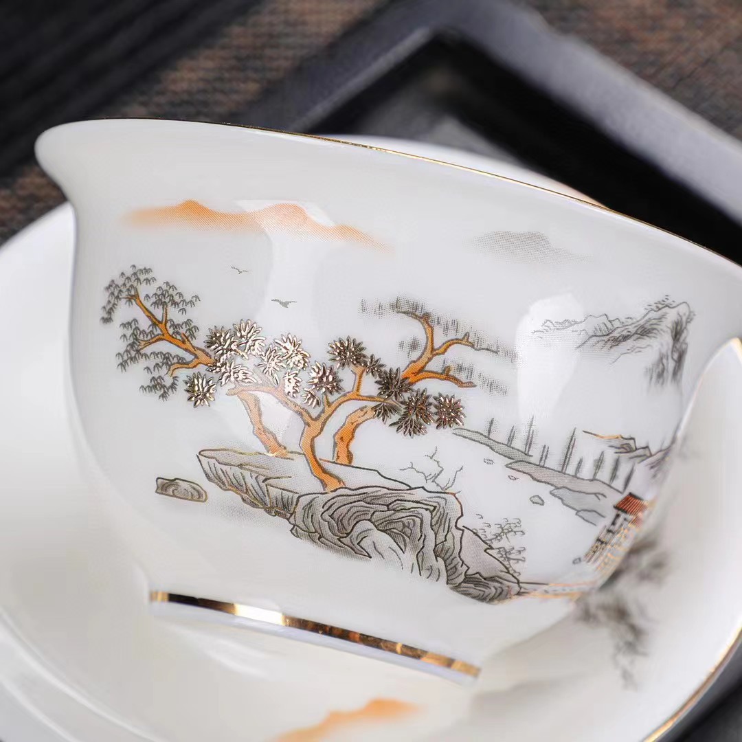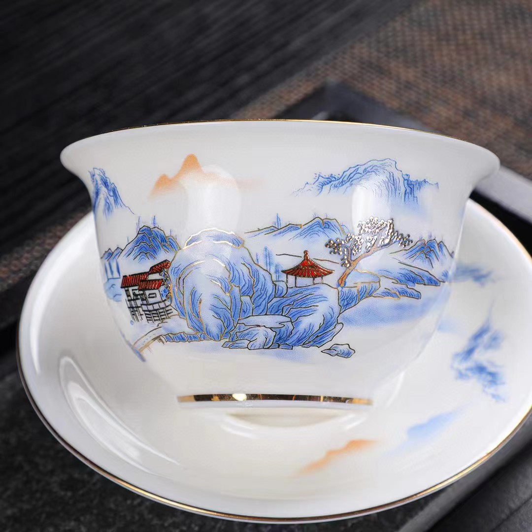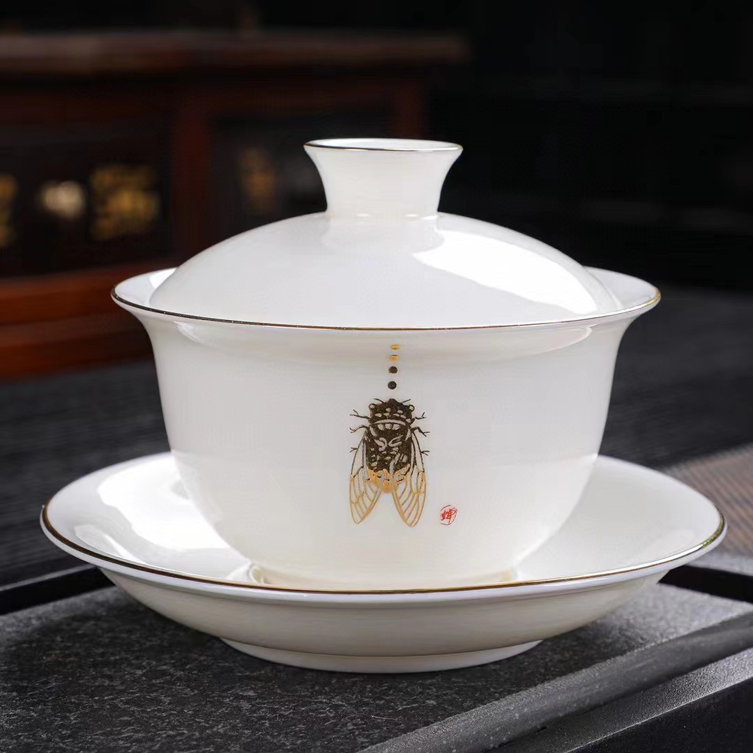 高档轻奢羊脂玉三才盖碗家用陶瓷功夫茶碗单个大号泡茶器茶杯茶具