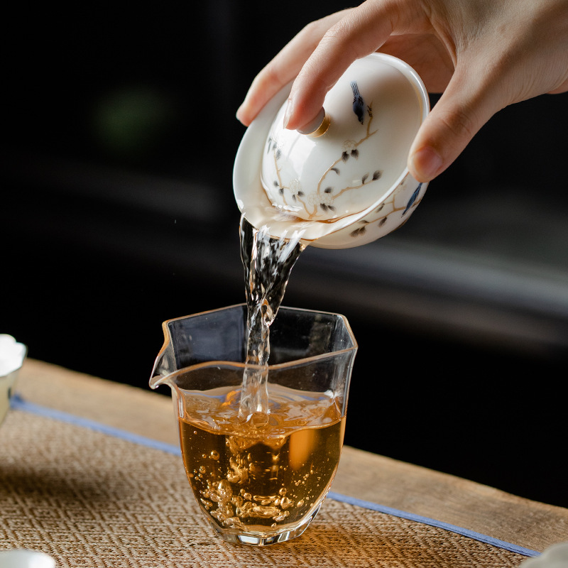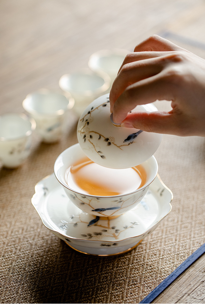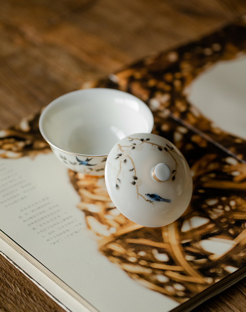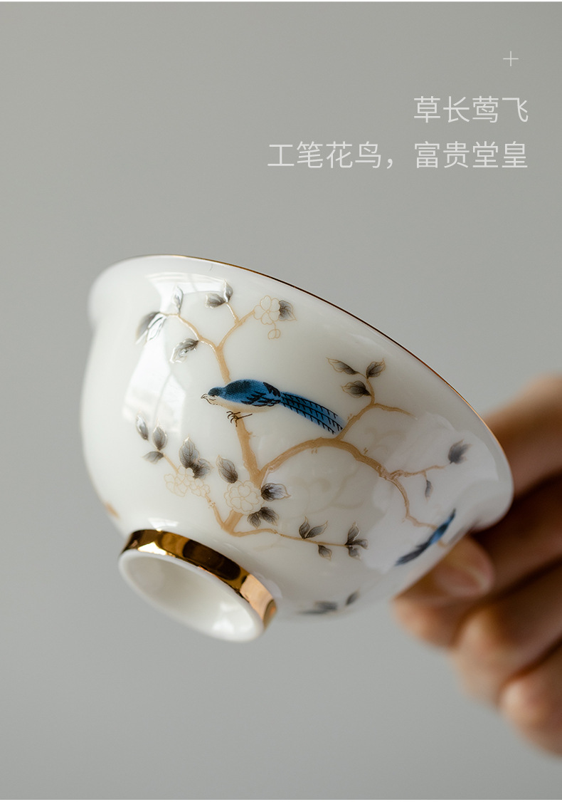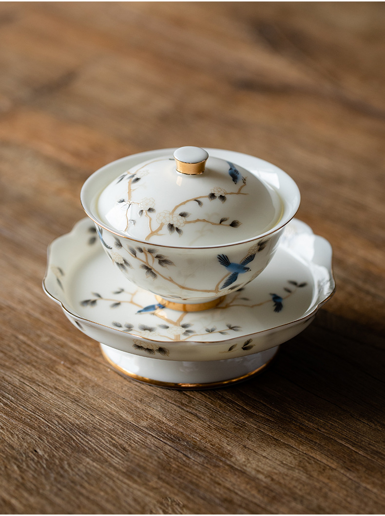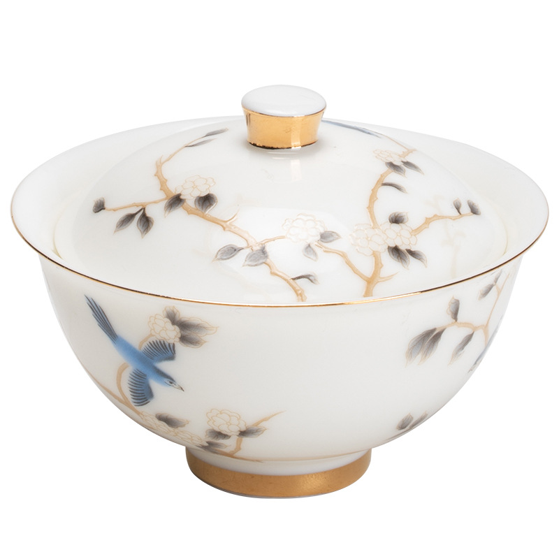 轻奢简约高档羊脂玉茶具二才盖碗壶承陶瓷功夫茶具单个泡茶碗家用