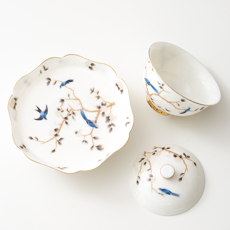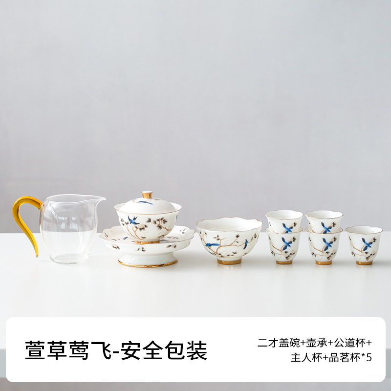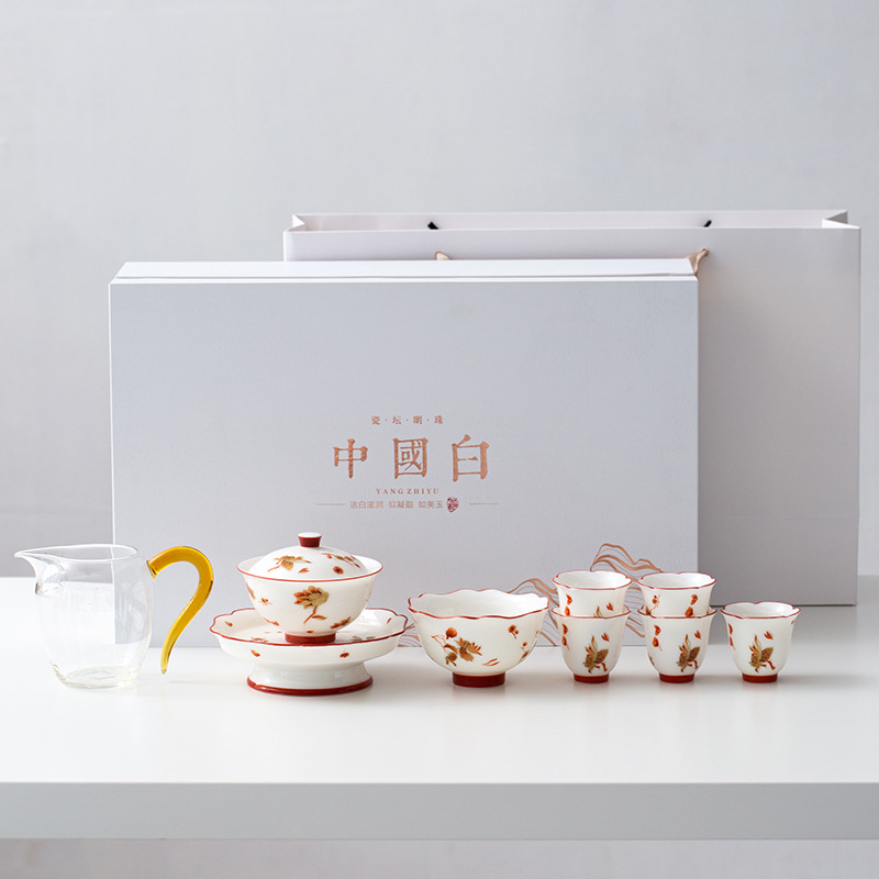 轻奢高档羊脂玉茶具套装白瓷三才盖碗家用精致礼盒装功夫茶碗茶杯