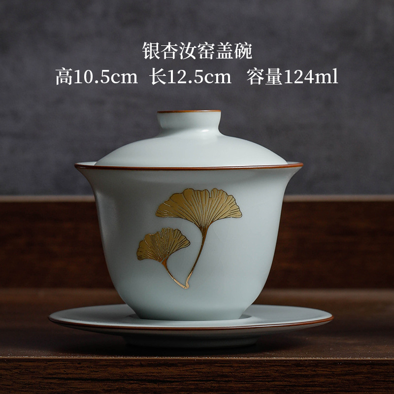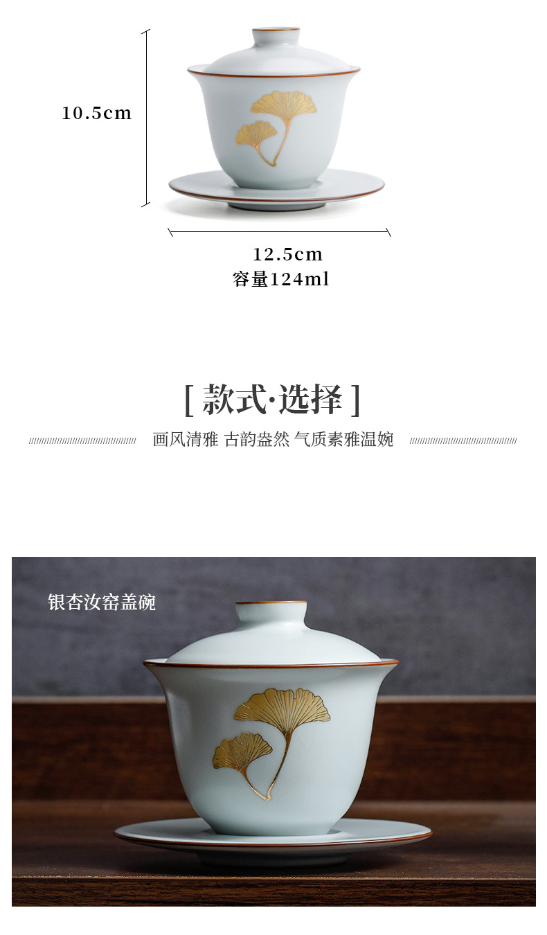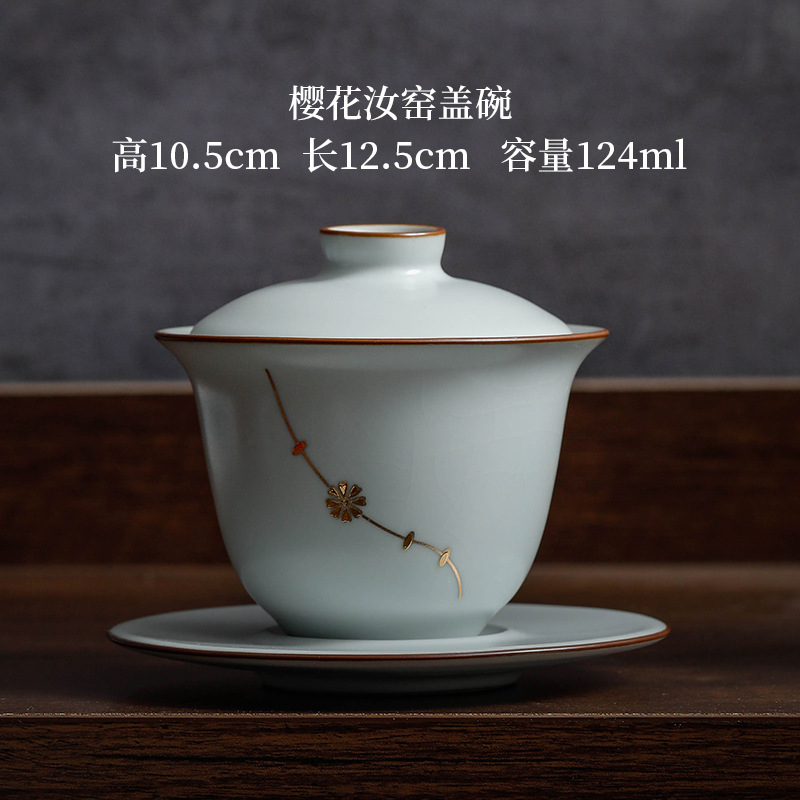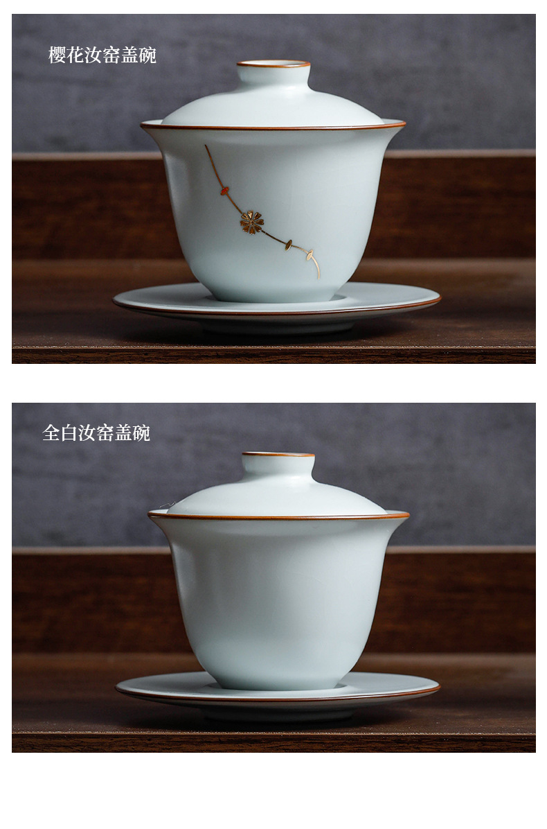 轻奢高档汝窑防烫三才盖碗功夫茶具陶瓷泡茶器文人敬茶碗可养开片