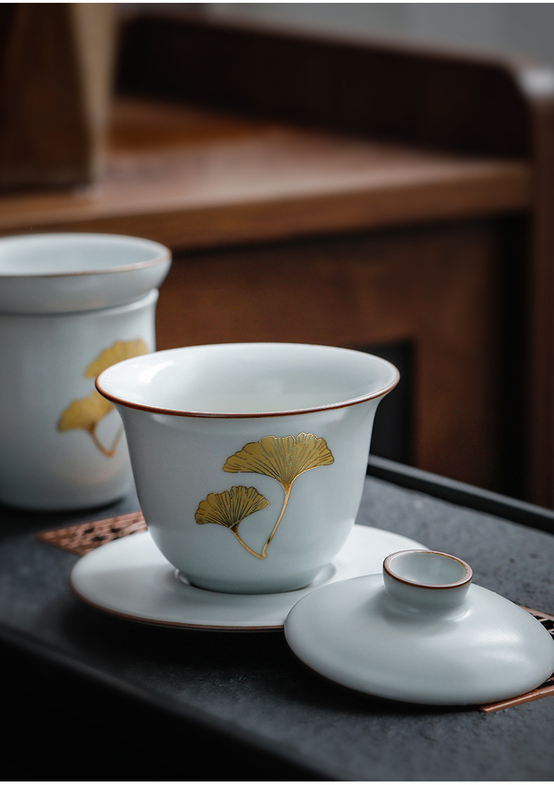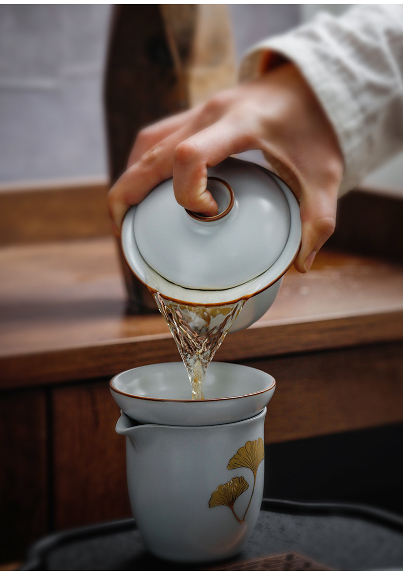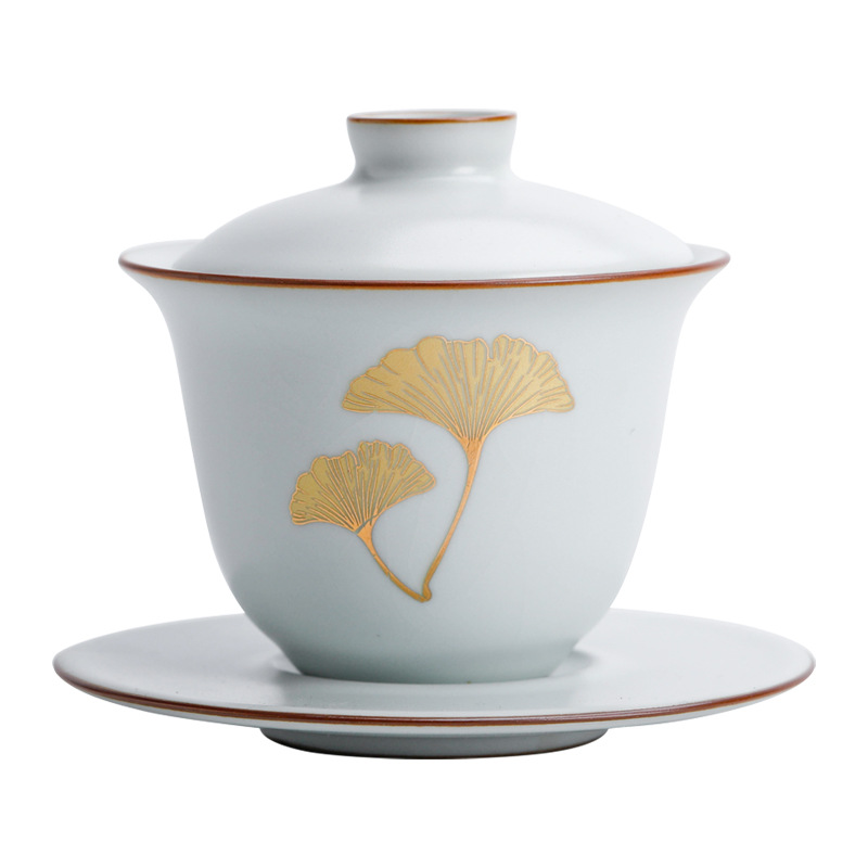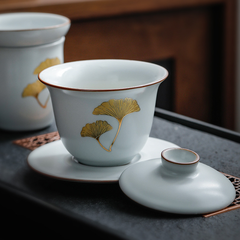 轻奢高档汝窑防烫三才盖碗功夫茶具陶瓷泡茶器文人敬茶碗可养开片