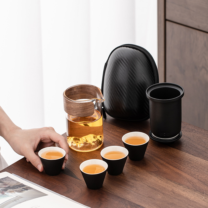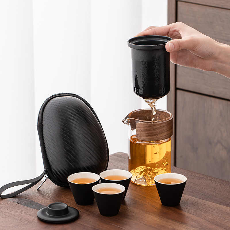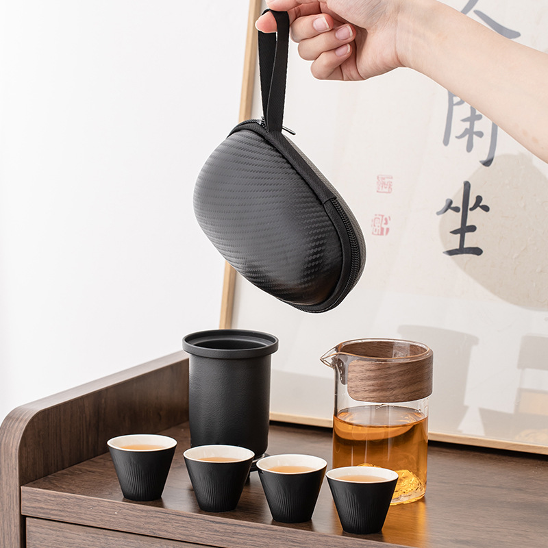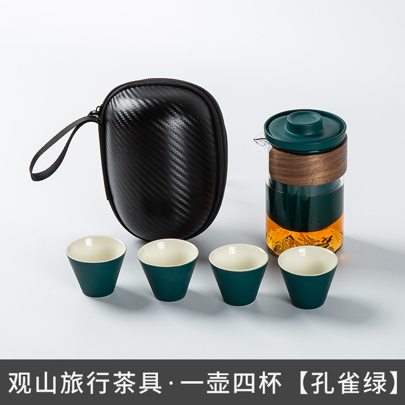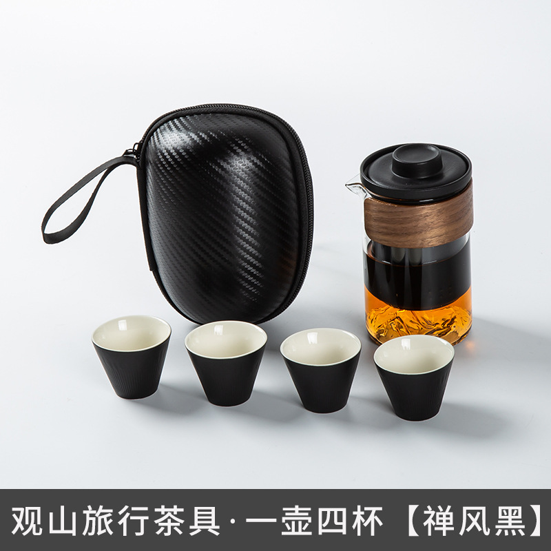 粗陶磨砂便携式一壶四杯户外泡茶杯盖碗快客杯伴手礼旅行茶具套装