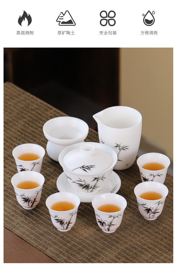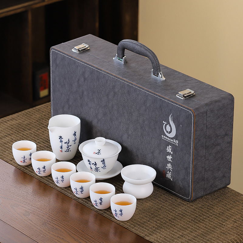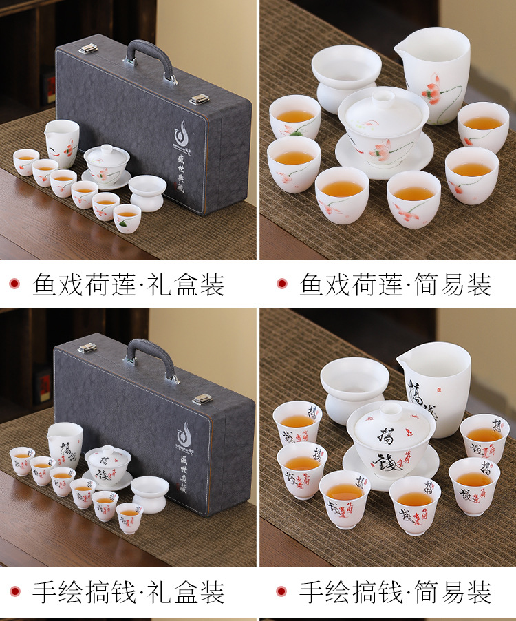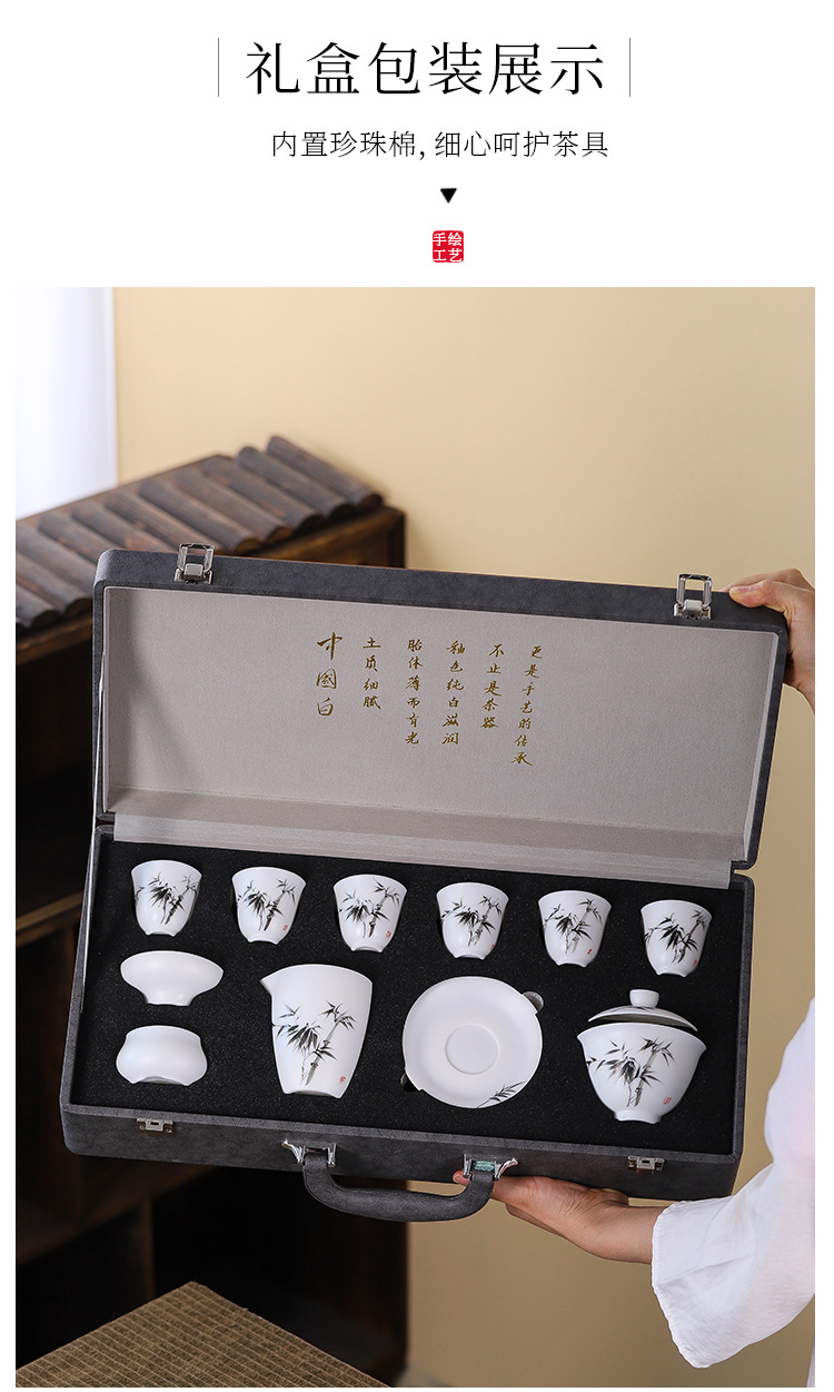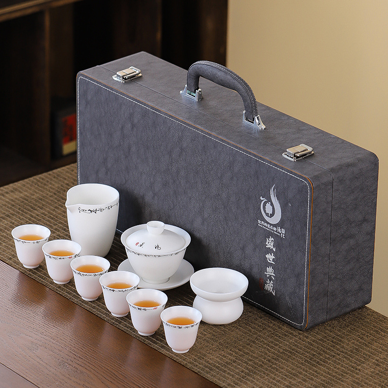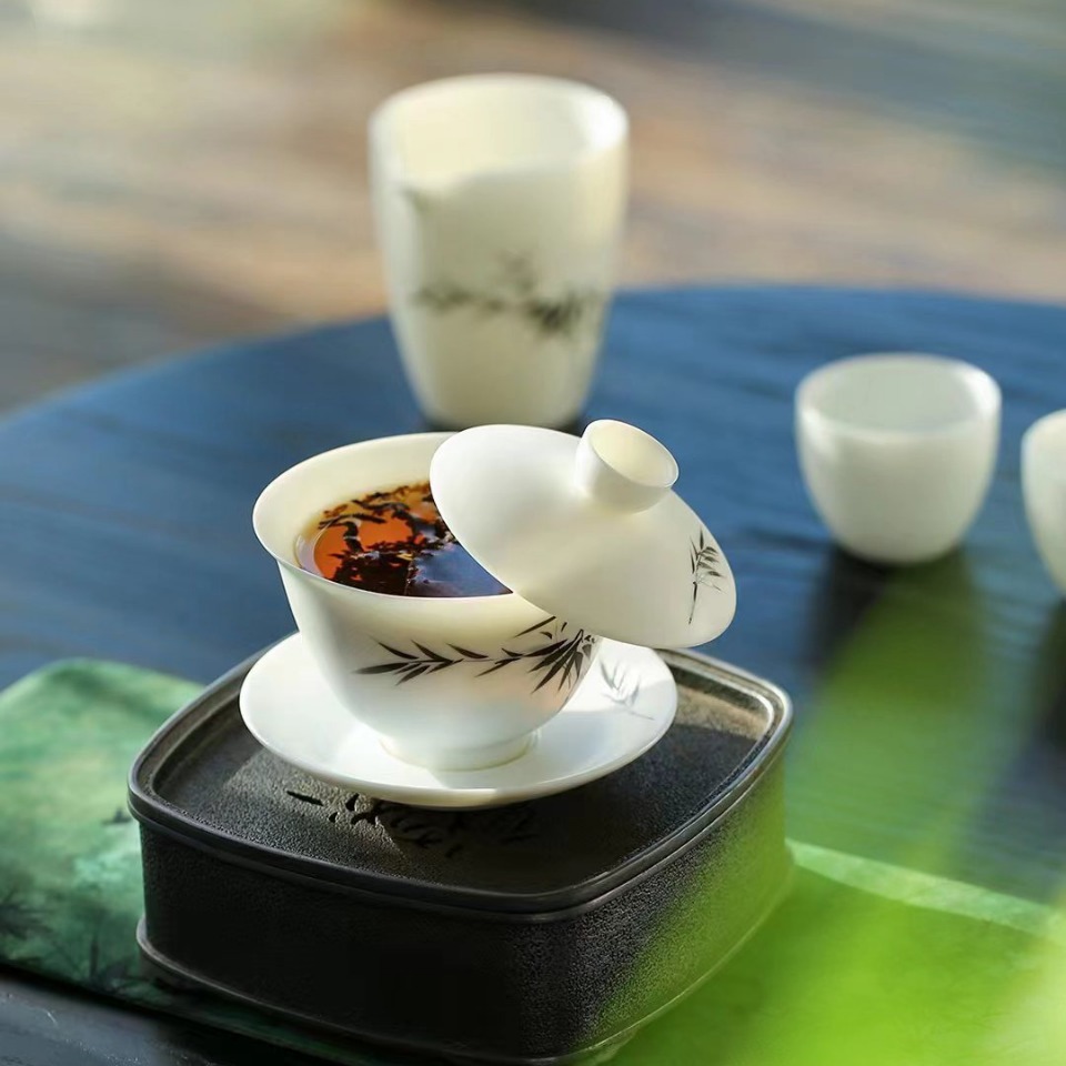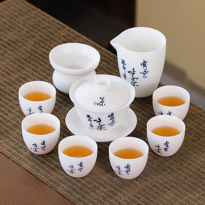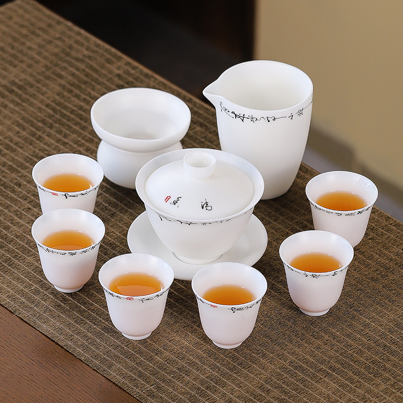 德化白瓷素烧手绘羊脂玉陶瓷功夫茶具办公室盖碗小茶杯礼品瓷茶具
