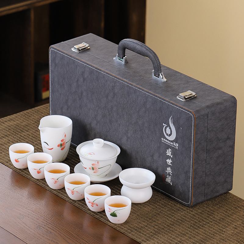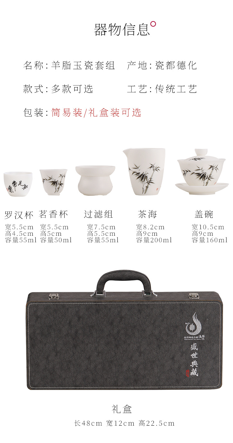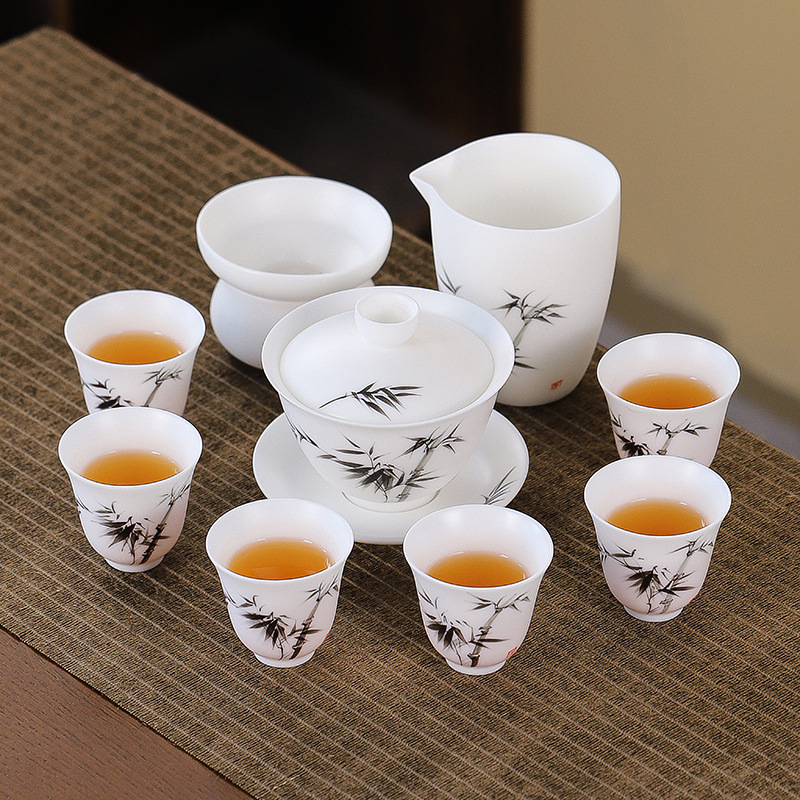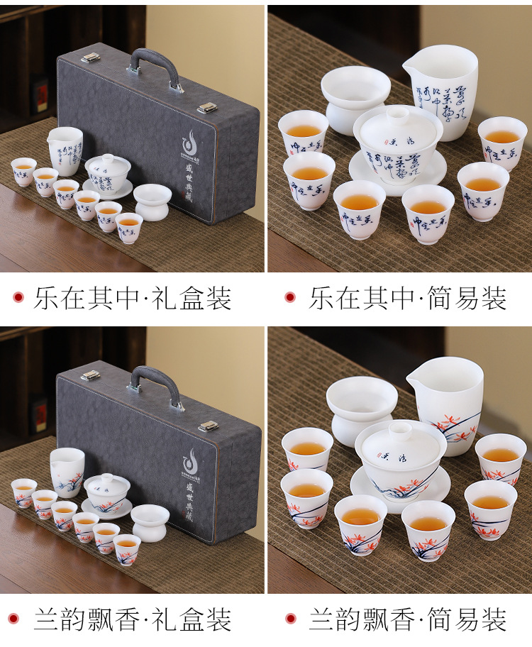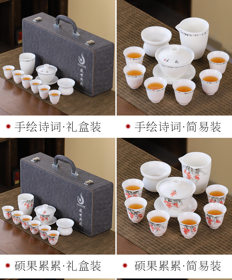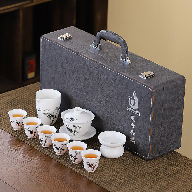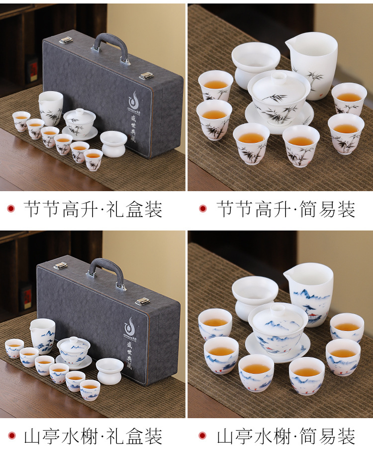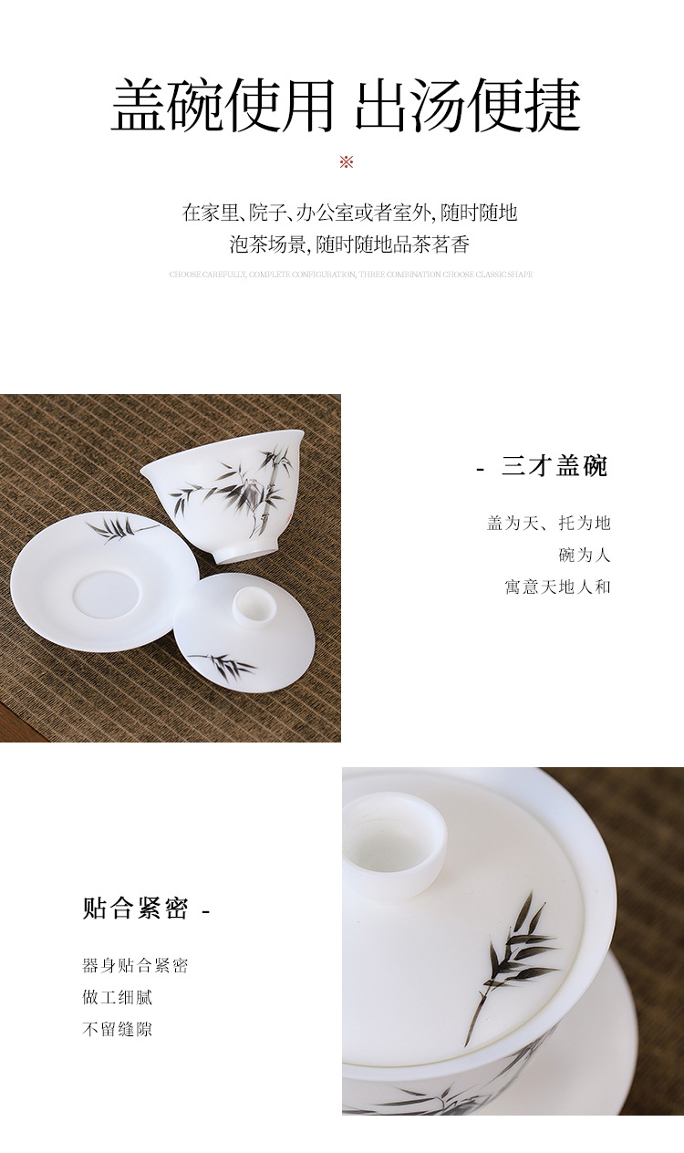 德化白瓷素烧手绘羊脂玉陶瓷功夫茶具办公室盖碗小茶杯礼品瓷茶具