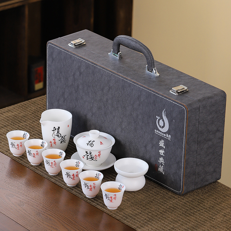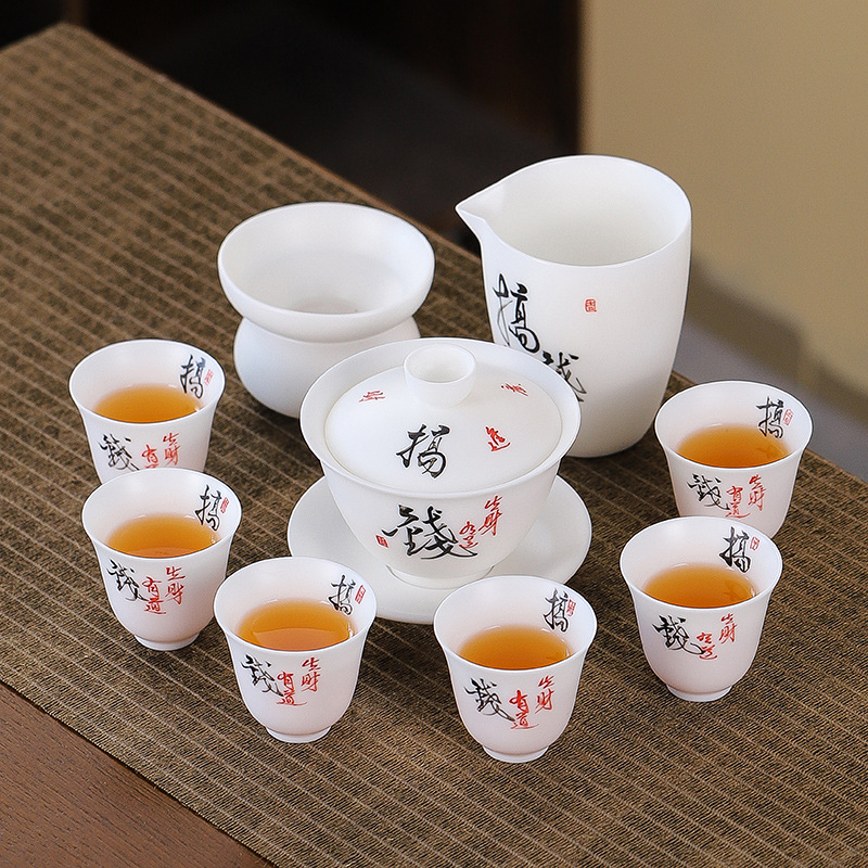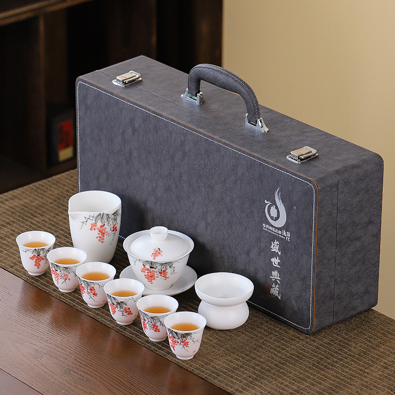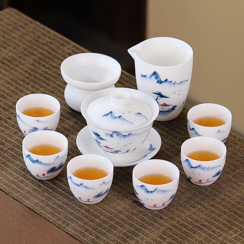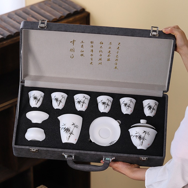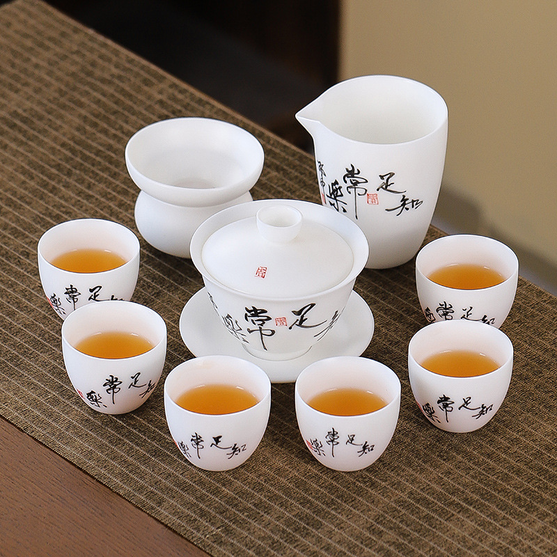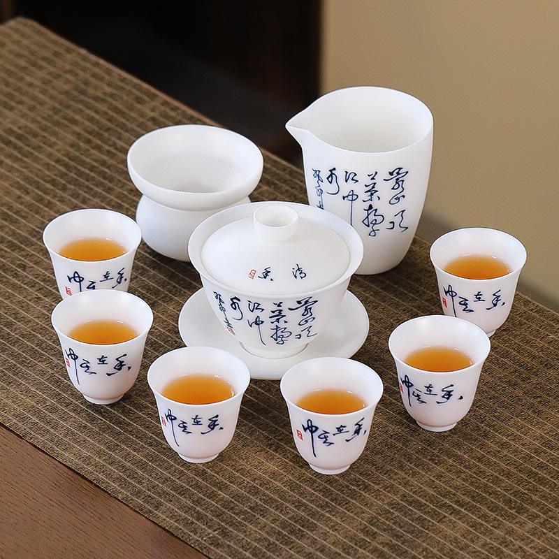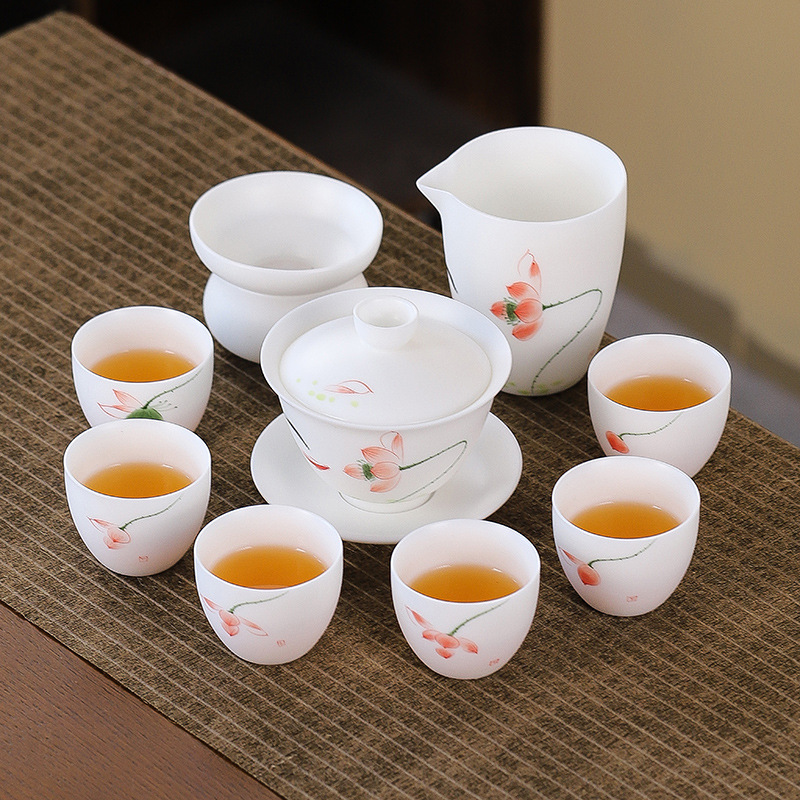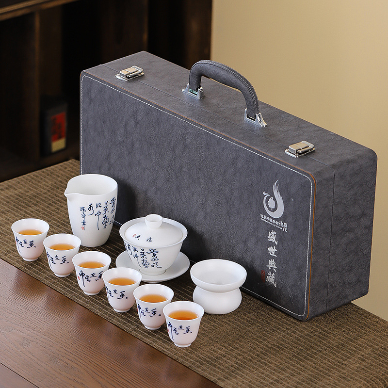 德化白瓷素烧手绘羊脂玉陶瓷功夫茶具办公室盖碗小茶杯礼品瓷茶具