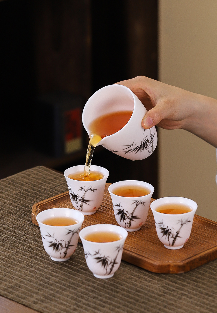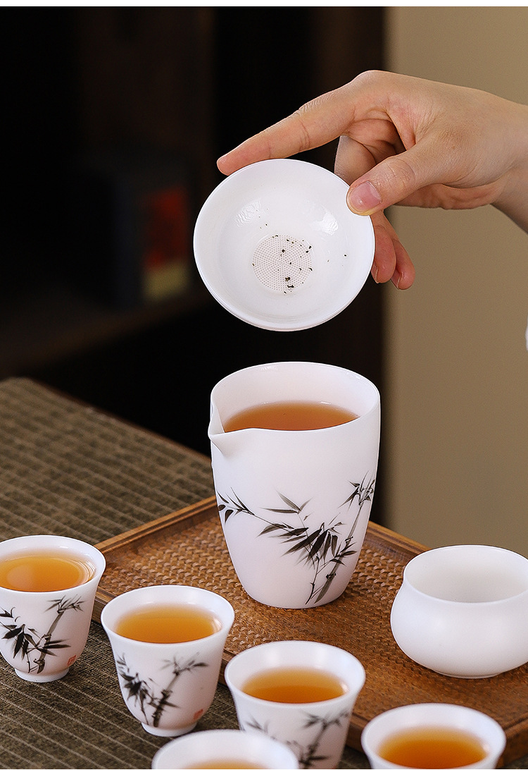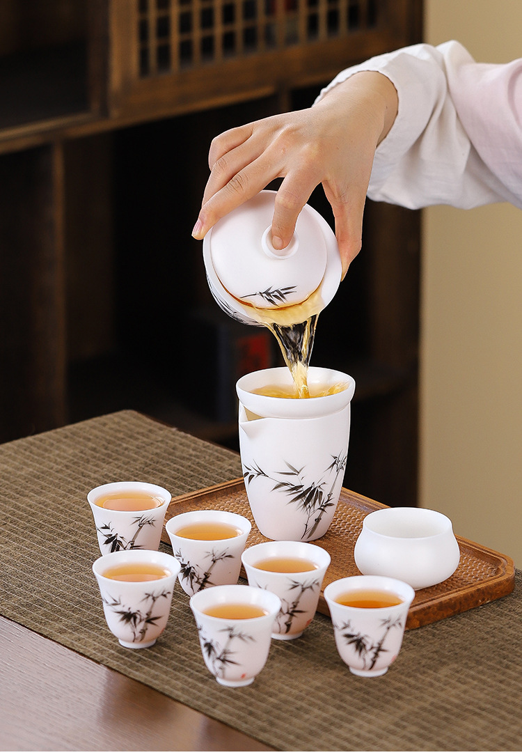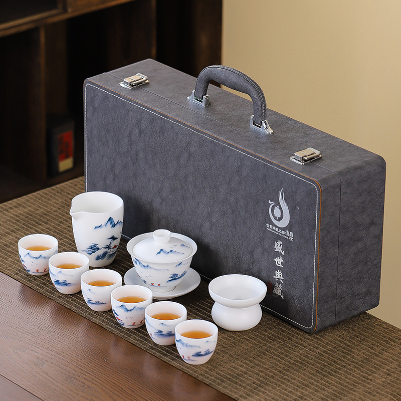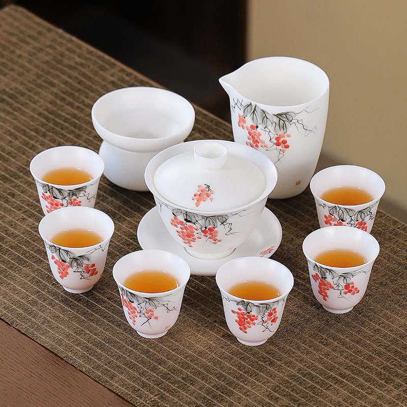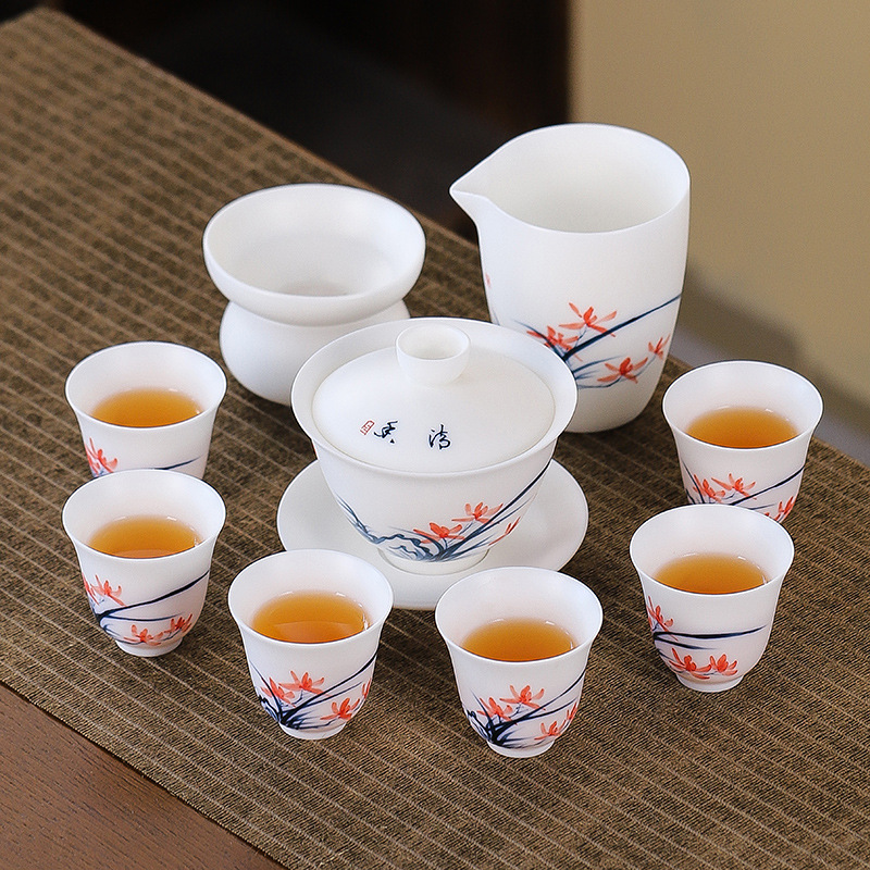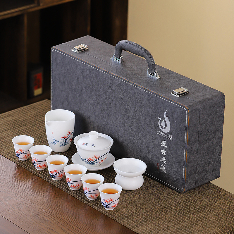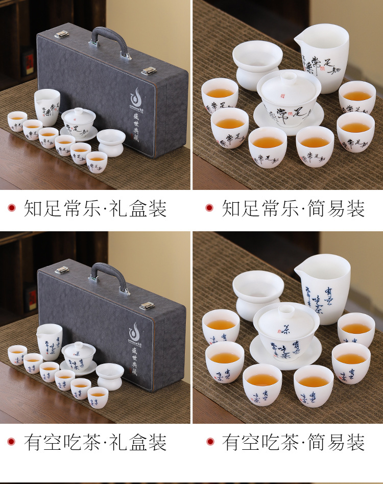 德化白瓷素烧手绘羊脂玉陶瓷功夫茶具办公室盖碗小茶杯礼品瓷茶具