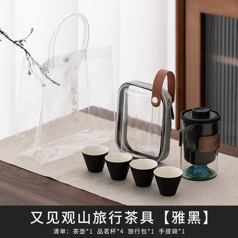 观山旅行快客杯一壶四杯陶瓷便携式车载茶具办公户外套装送礼logo