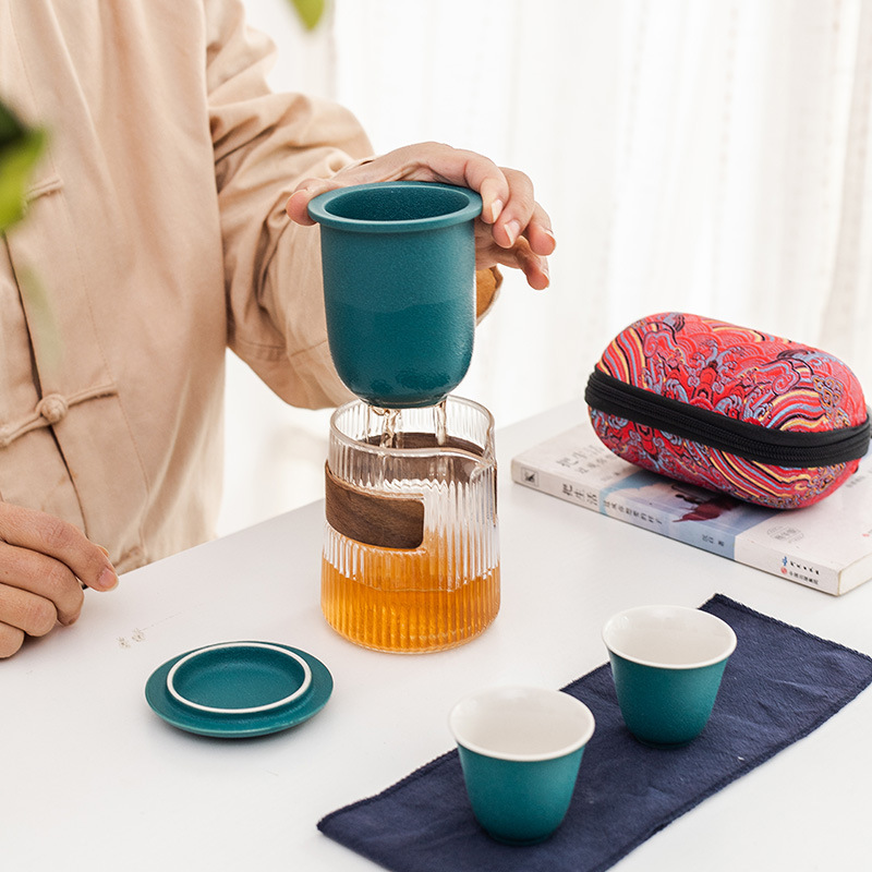 便携式旅行功夫茶具套装玻璃泡茶壶陶瓷快客杯商务活动伴手礼品