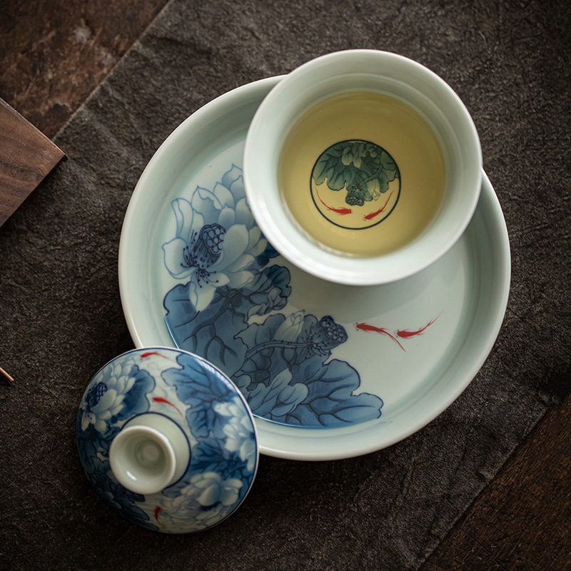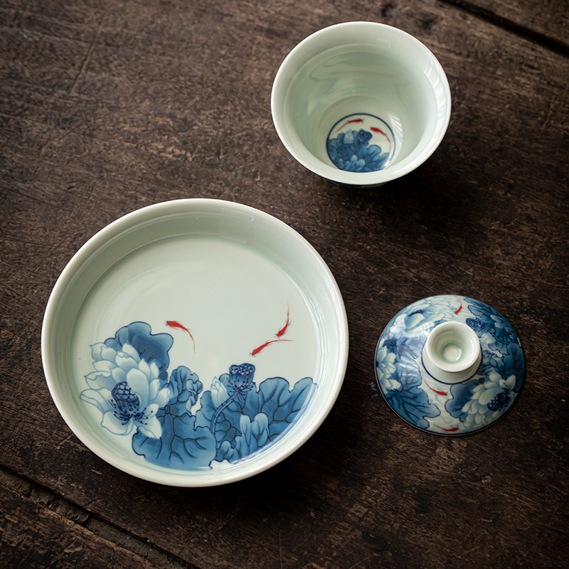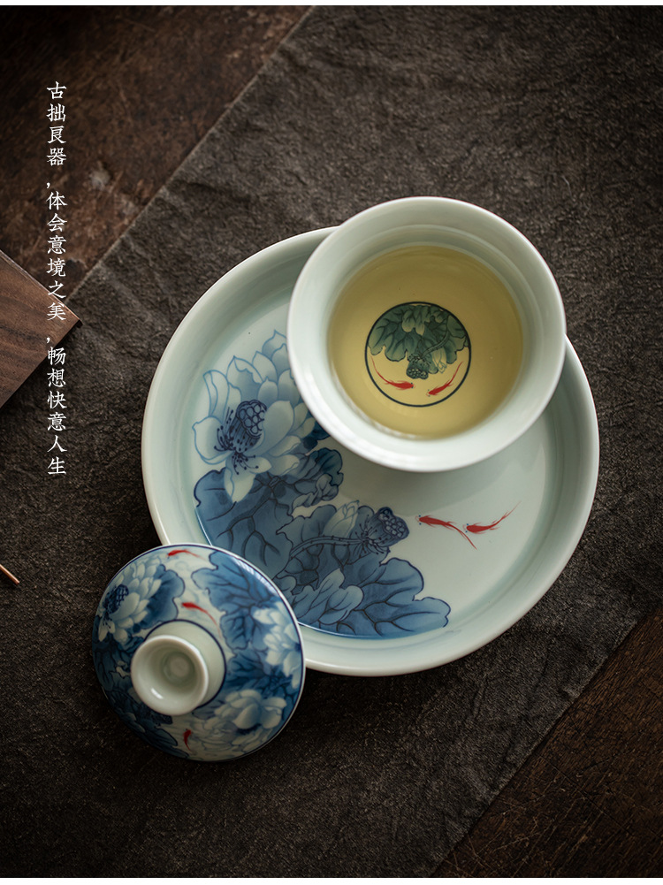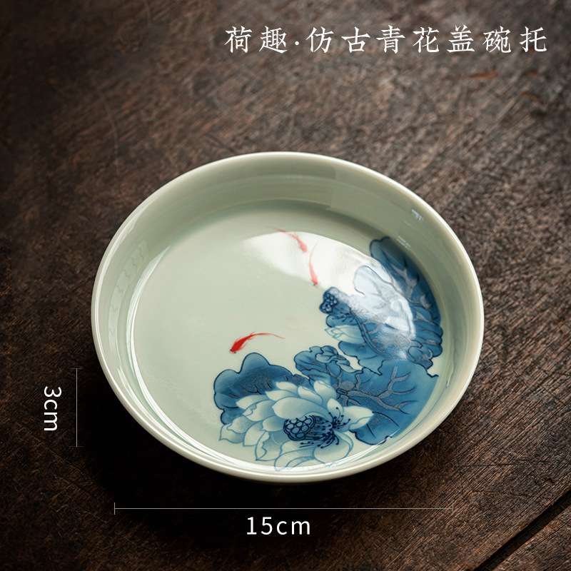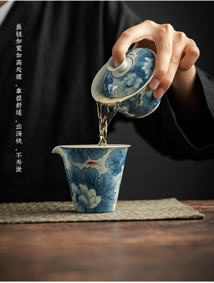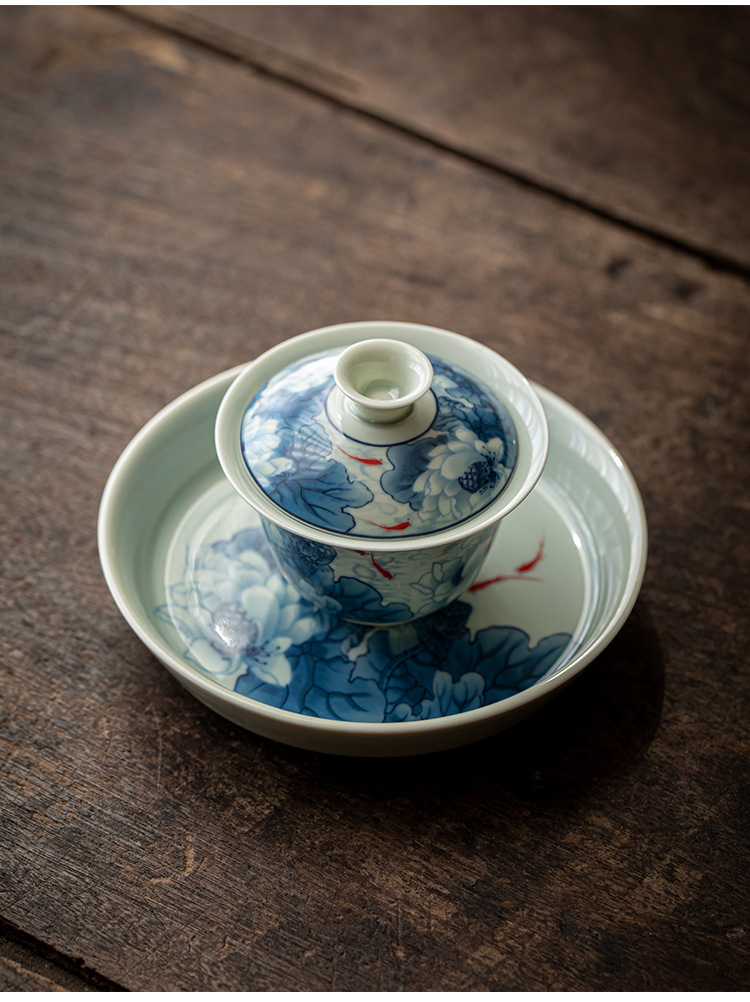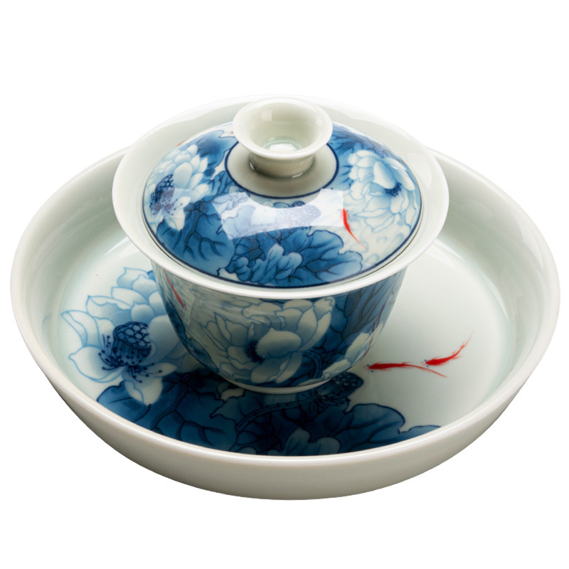 复古青花三才盖碗壶承简约功夫茶具手抓碗陶瓷茶杯茶盏带盖泡茶碗