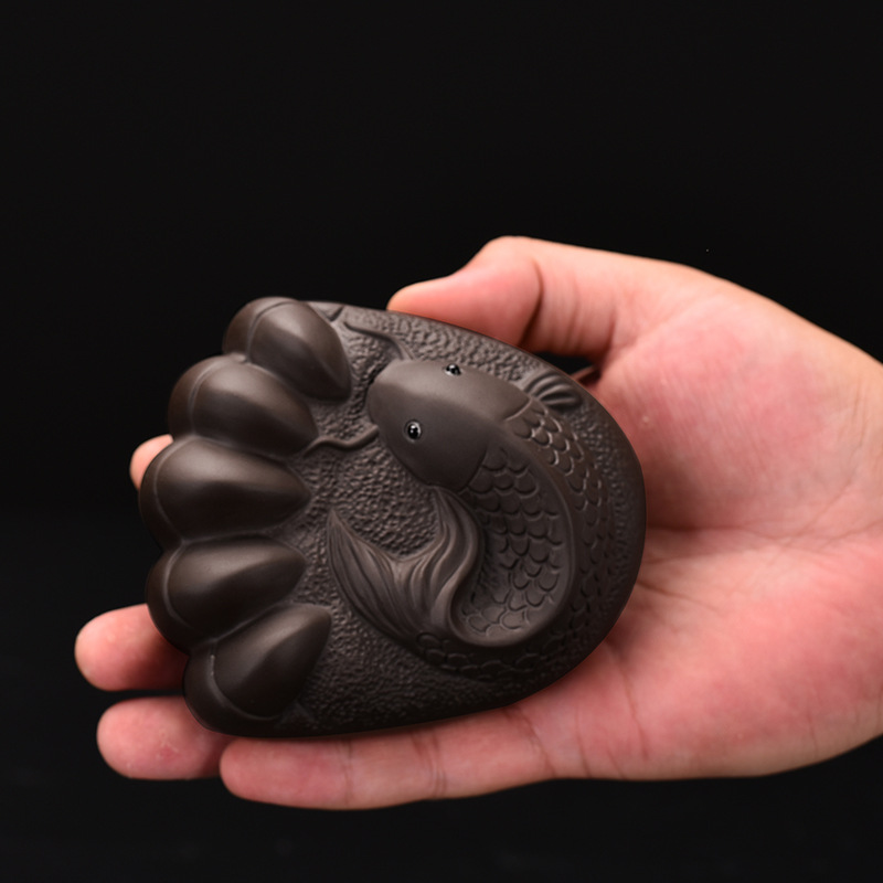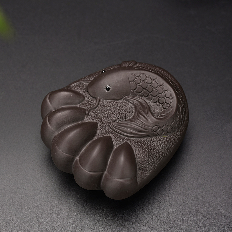 厂家批发新款创意紫砂茶宠鱼和熊掌一举两得茶玩家居茶盘摆件