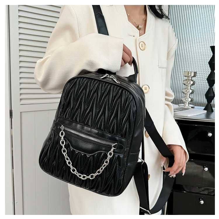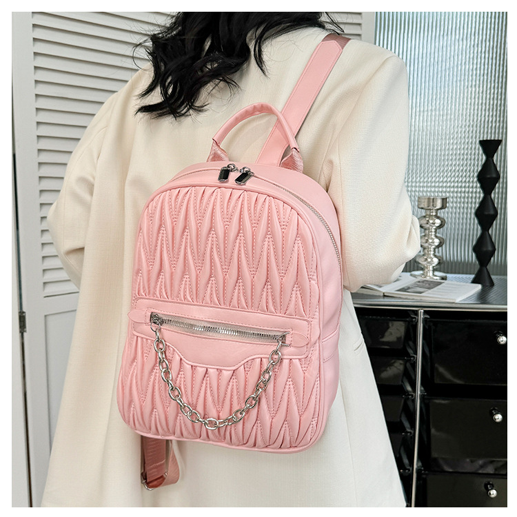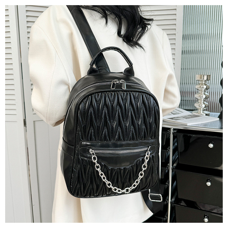 2024新款女士PU高品质双肩包休闲流行旅行背包