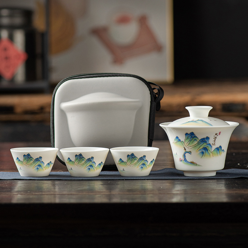 国潮古韵旅行茶具套装 轻奢简约车载户外便携式茶器创意商务礼品