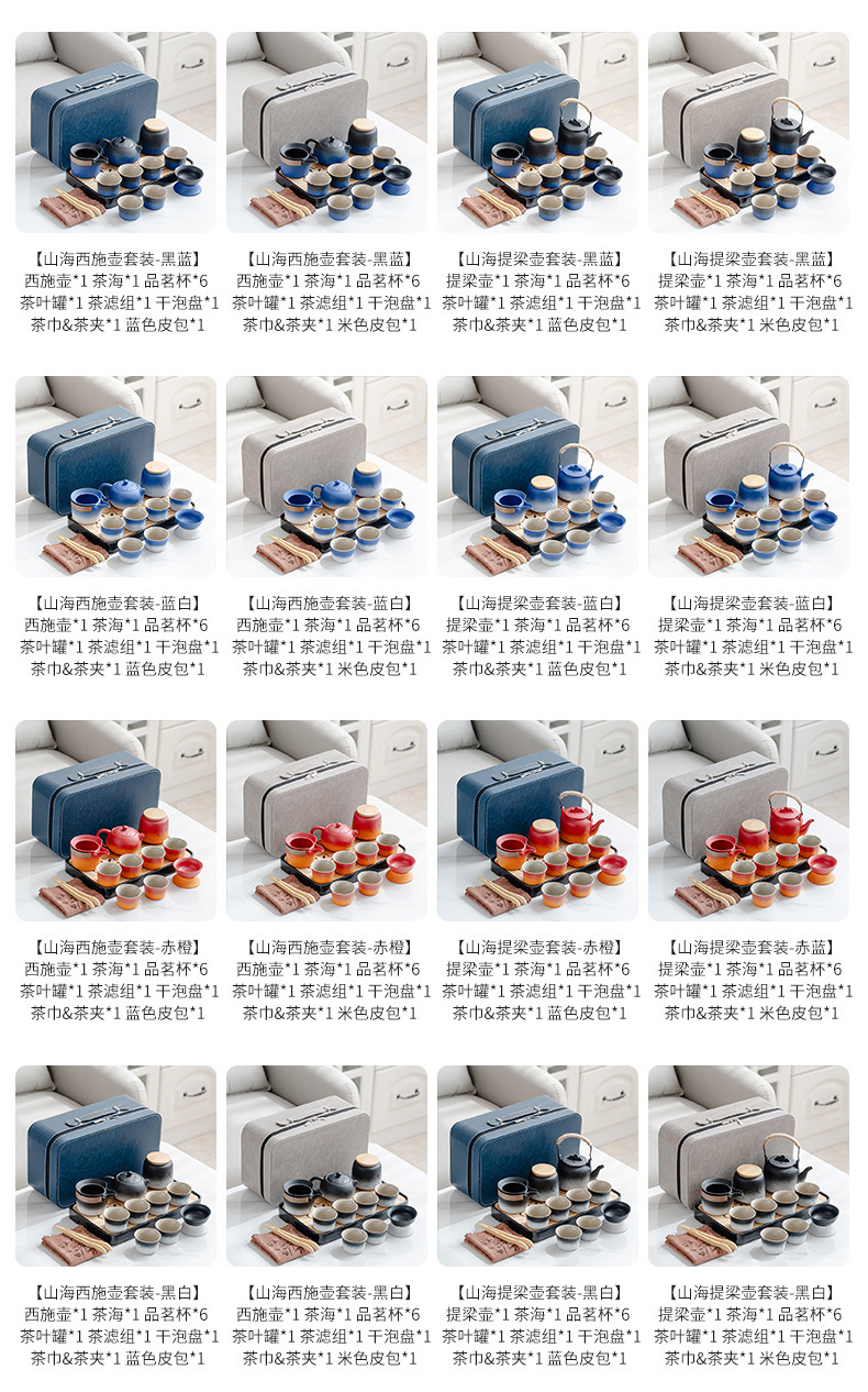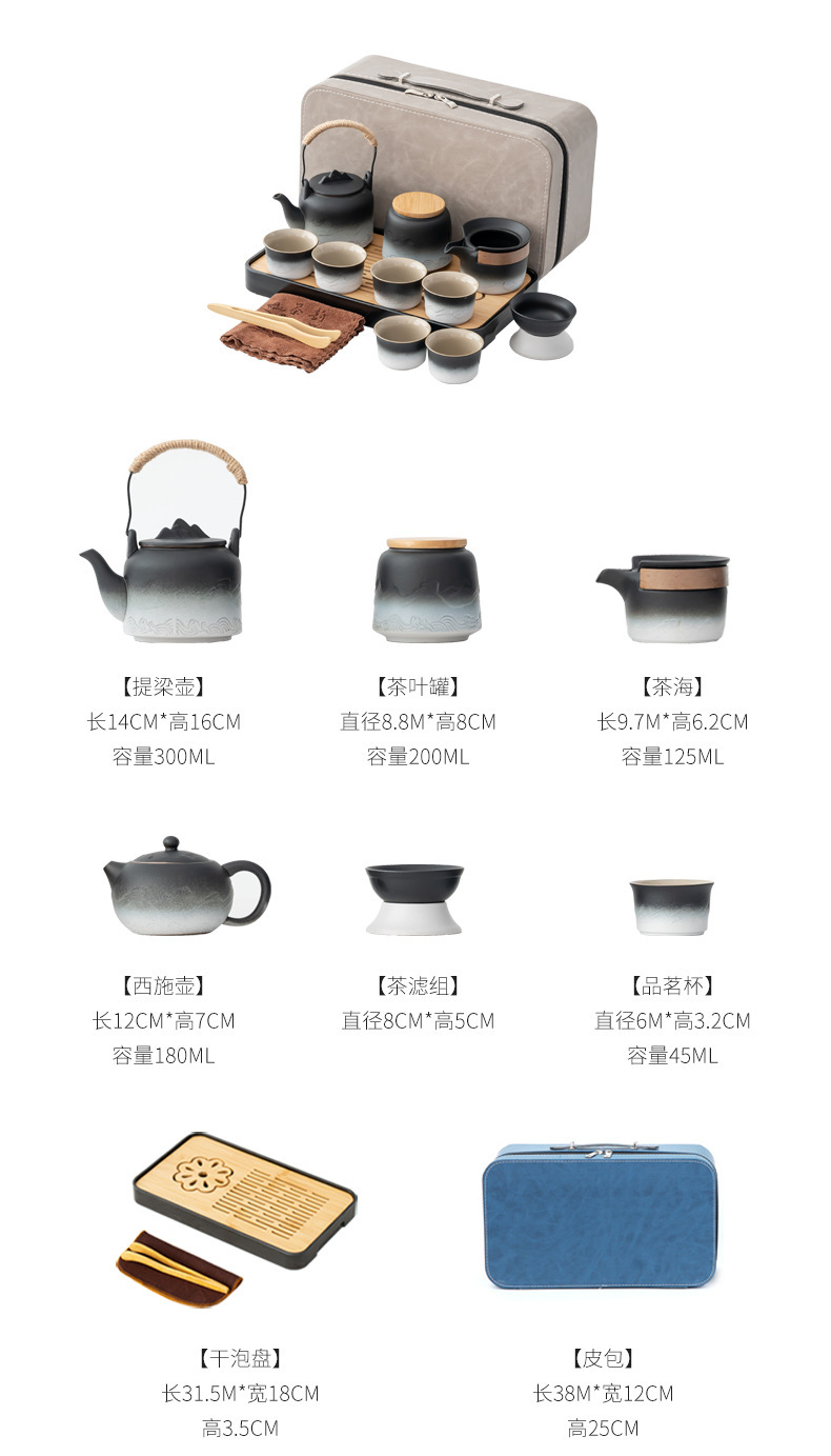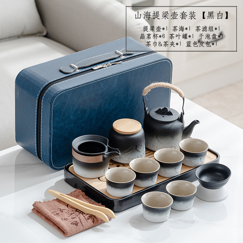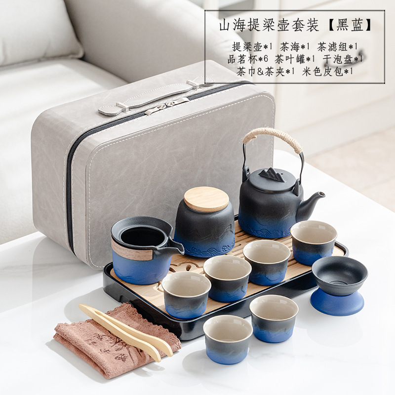 渐变提梁壶旅行茶具套装一壶六杯车载户外吃茶去茶器创意商务礼品