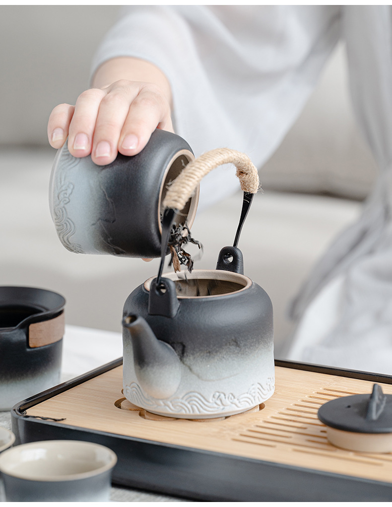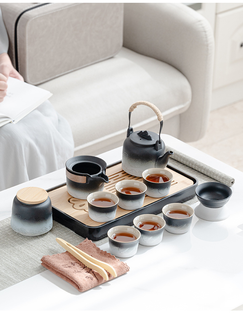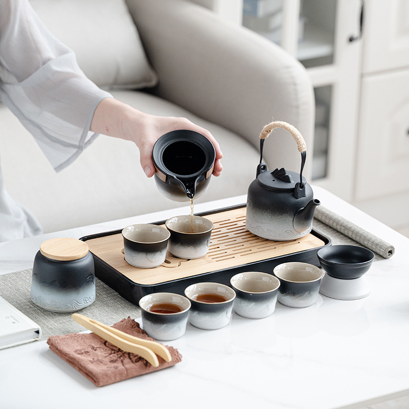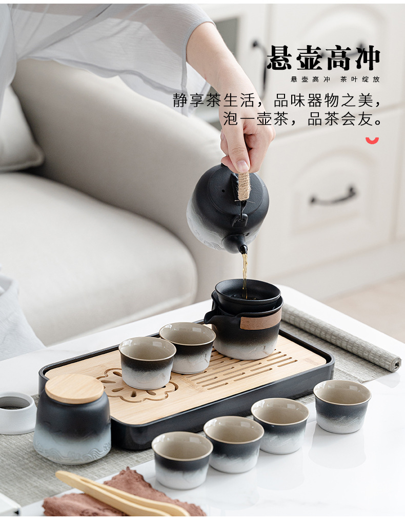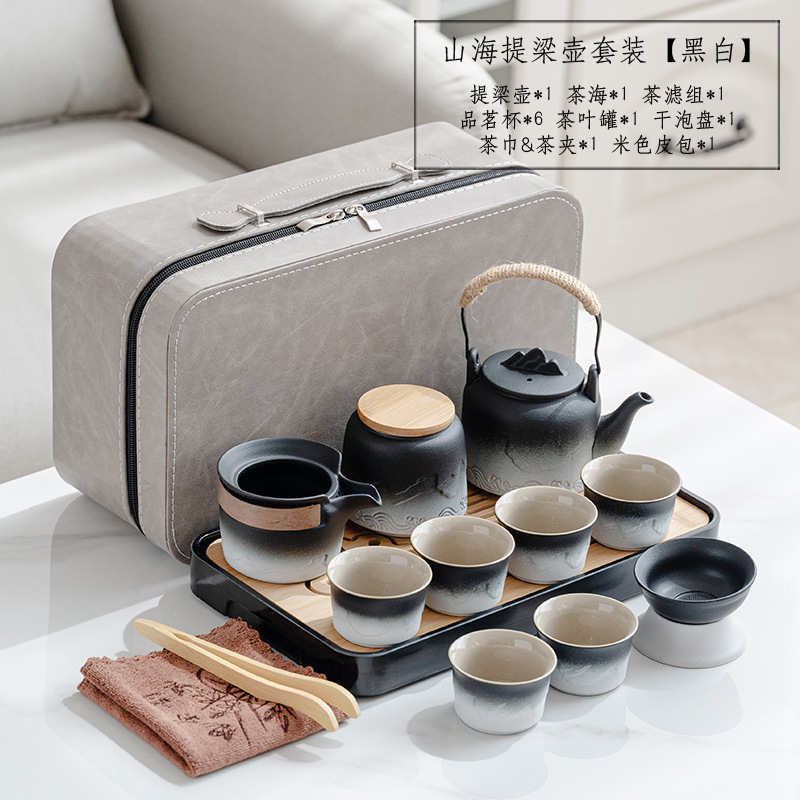渐变提梁壶旅行茶具套装一壶六杯车载户外吃茶去茶器创意商务礼品