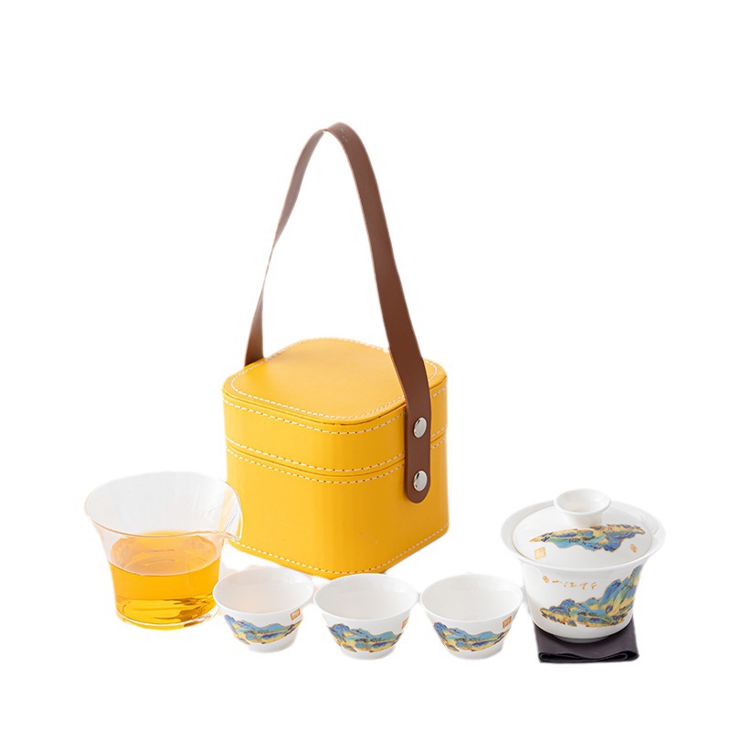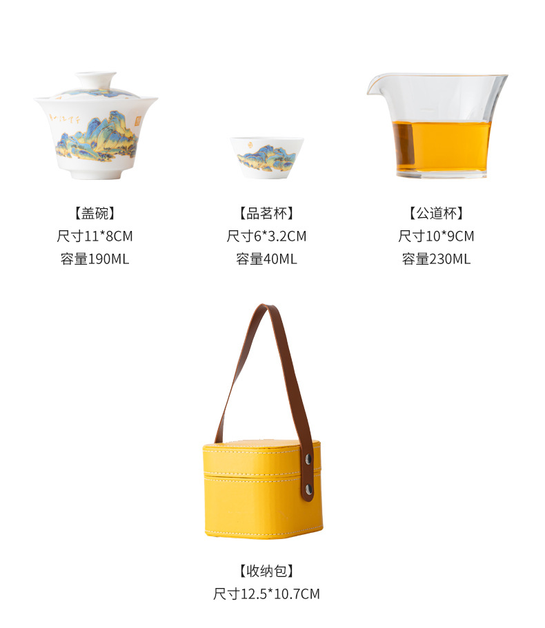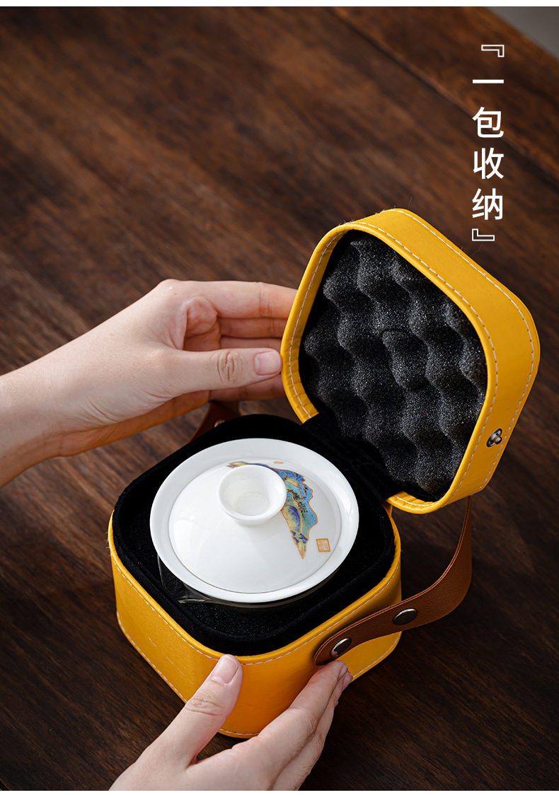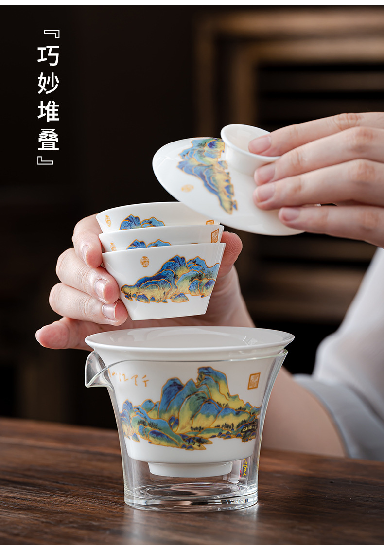 白瓷玻璃公杯旅行茶具套装 国潮简约泡茶盖碗茶水分离杯商务礼品