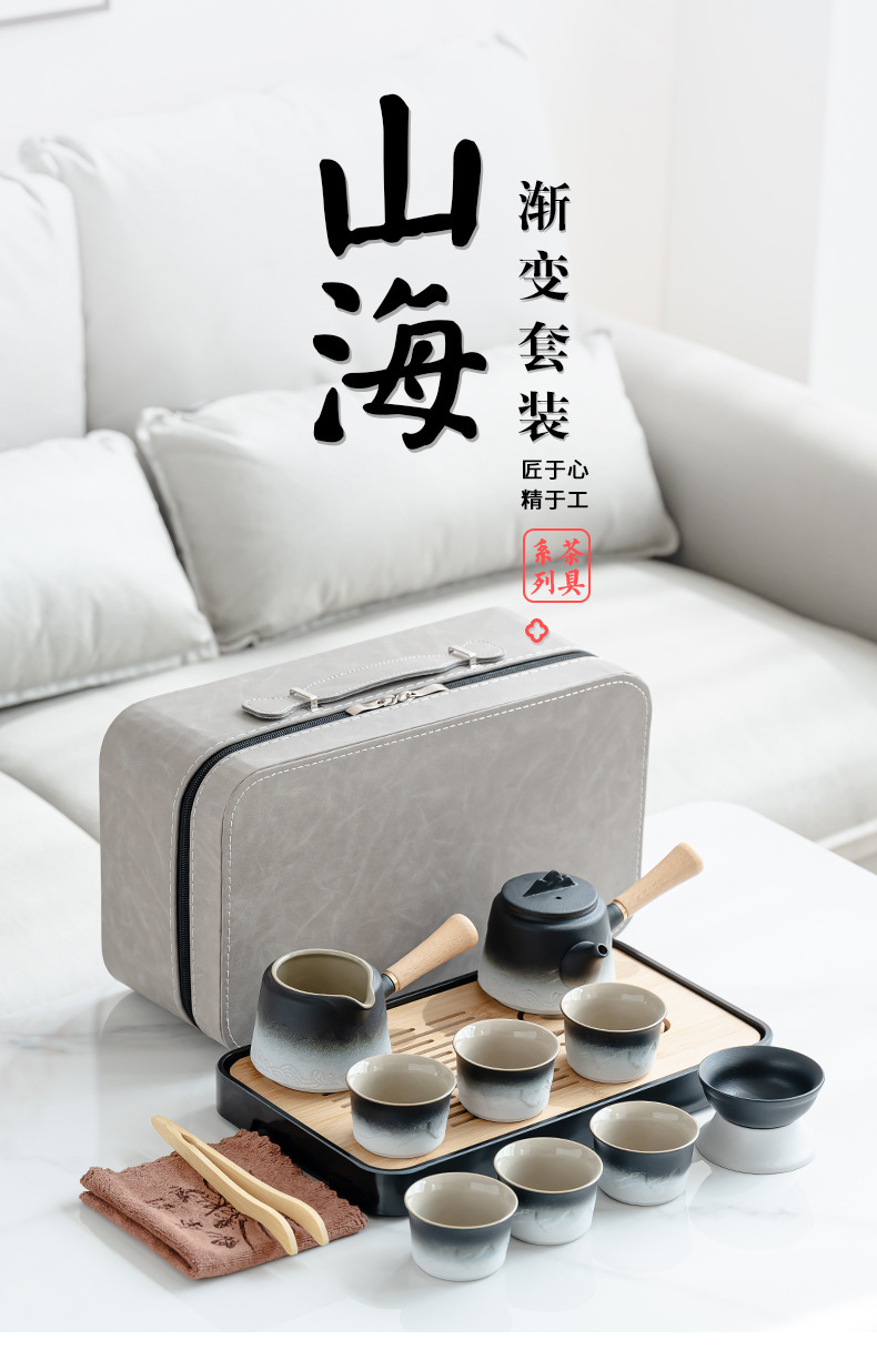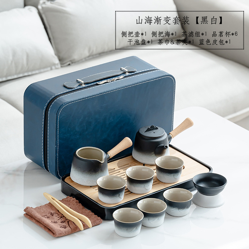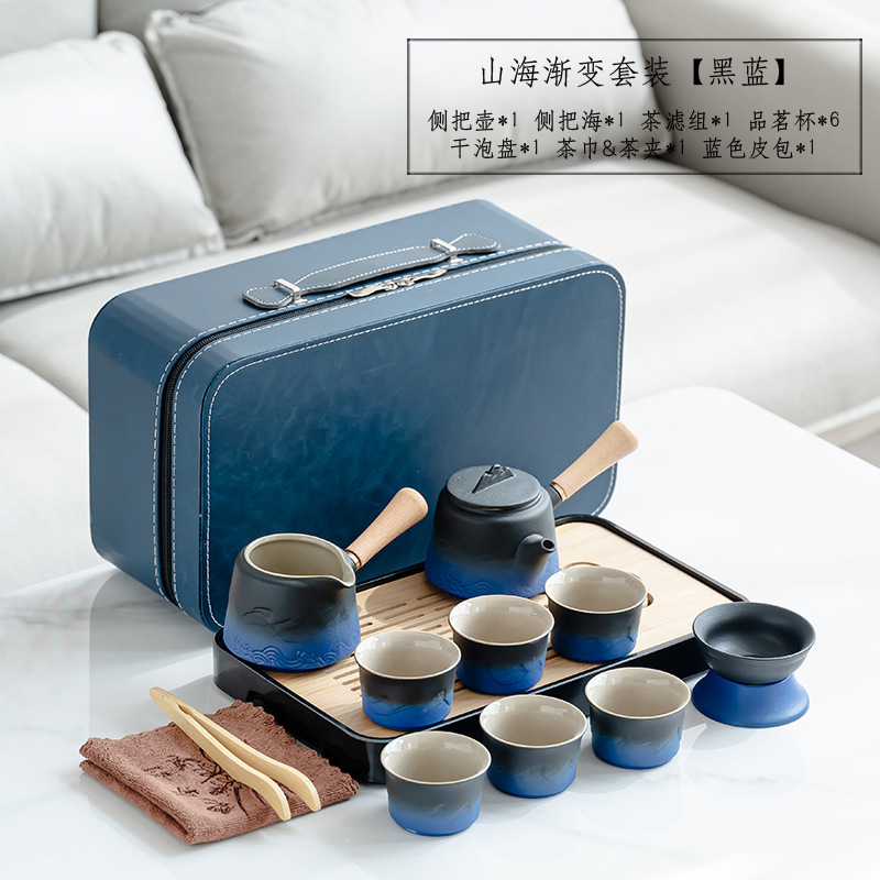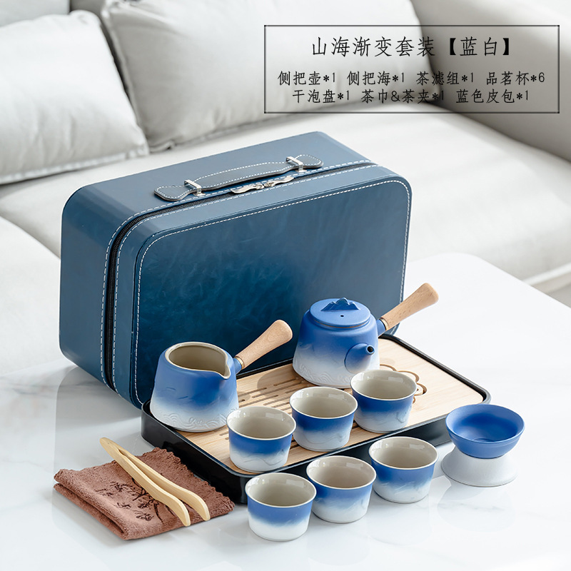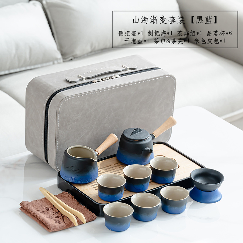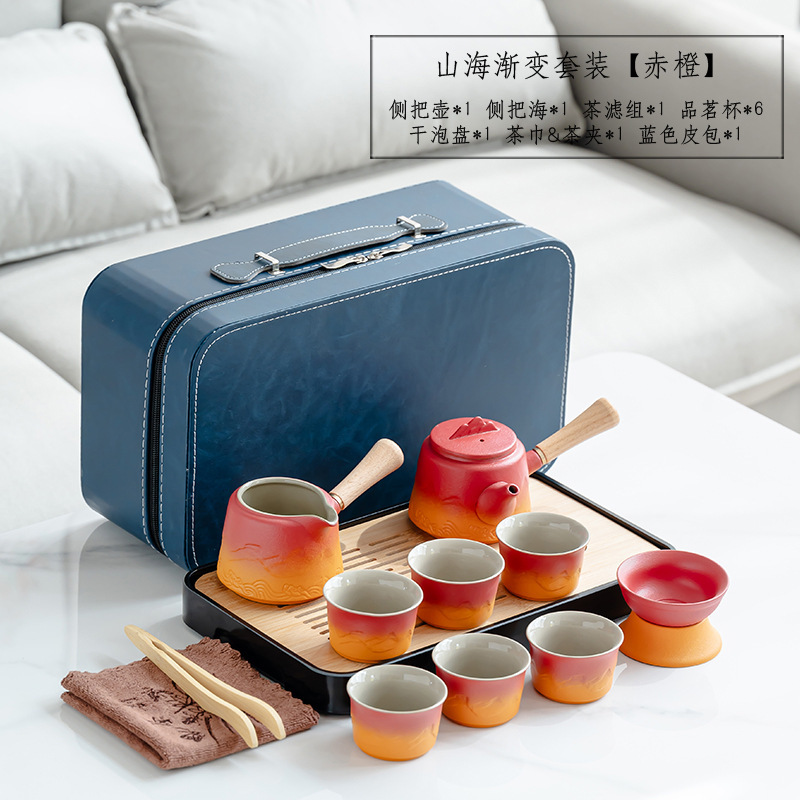 渐变侧把壶旅行茶具套装轻奢简约车载一壶六杯便携式创意商务礼品