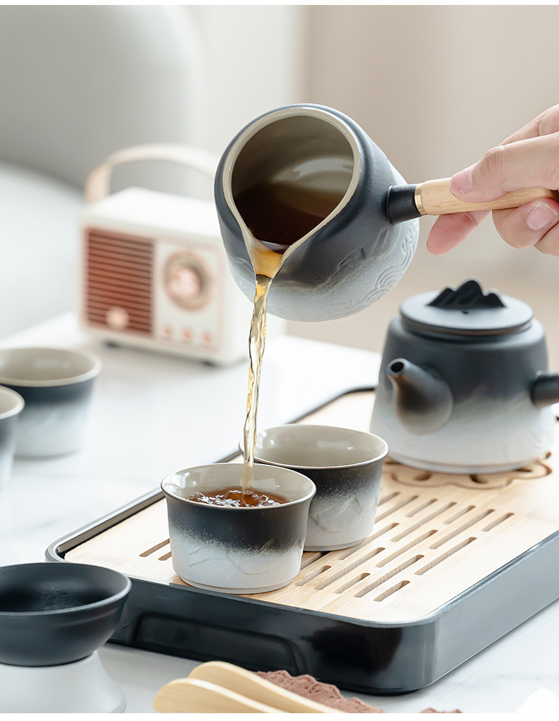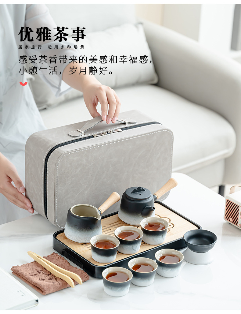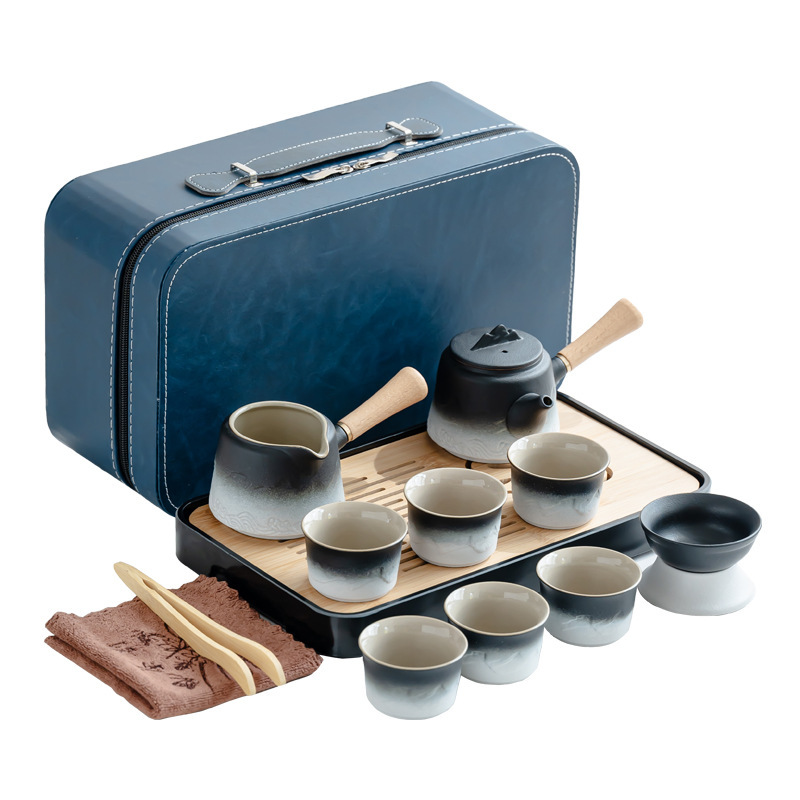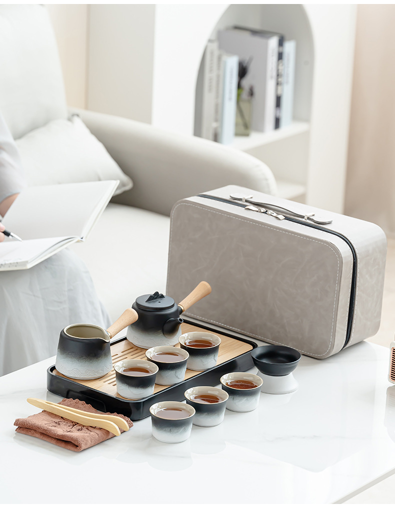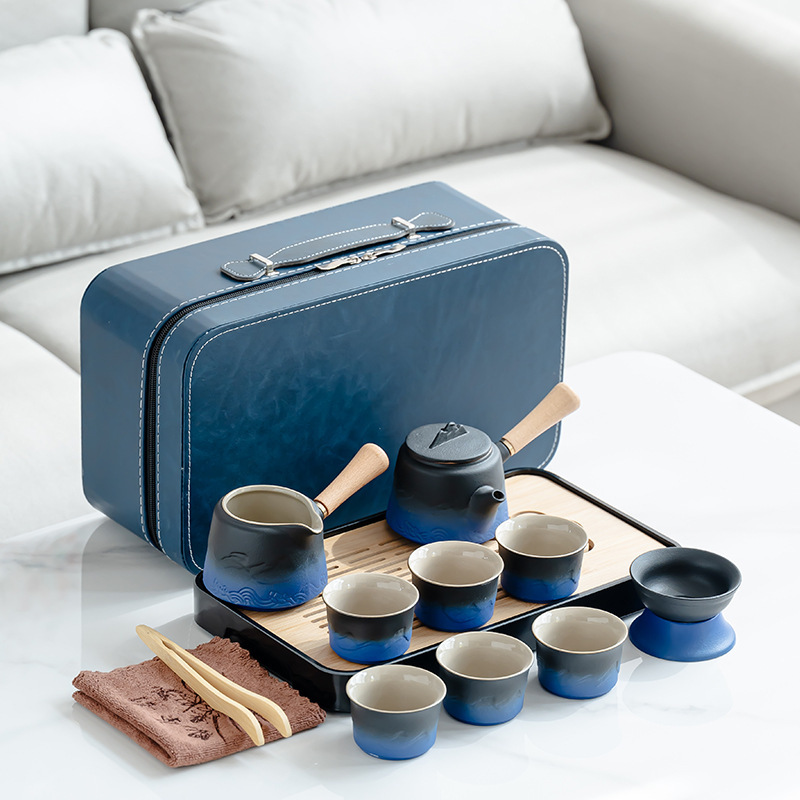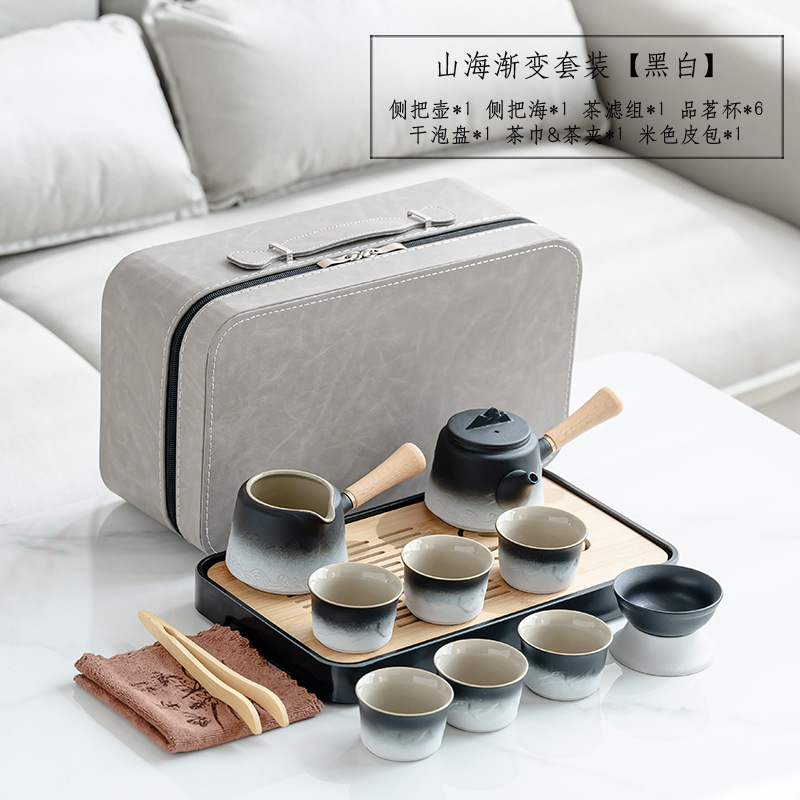 渐变侧把壶旅行茶具套装轻奢简约车载一壶六杯便携式创意商务礼品