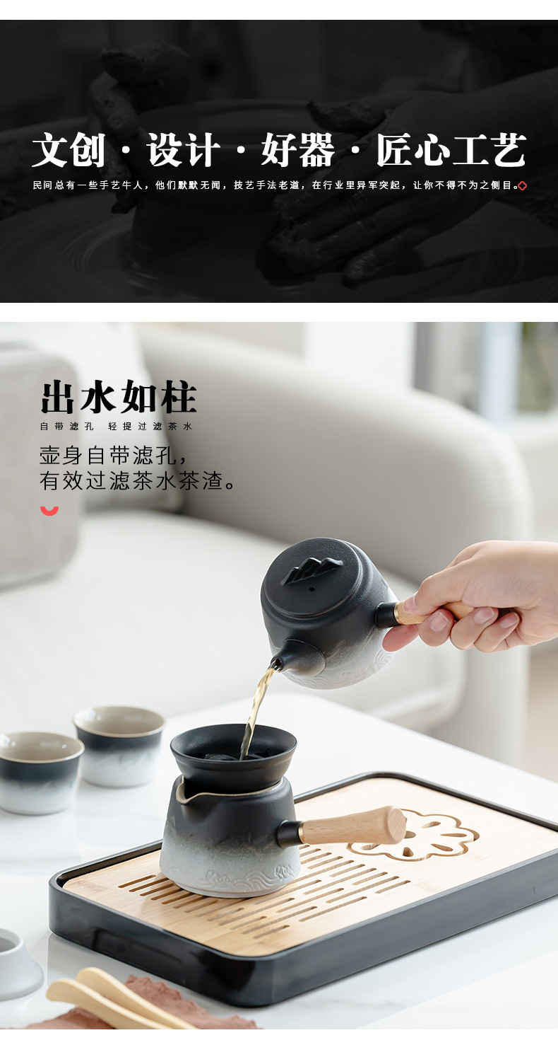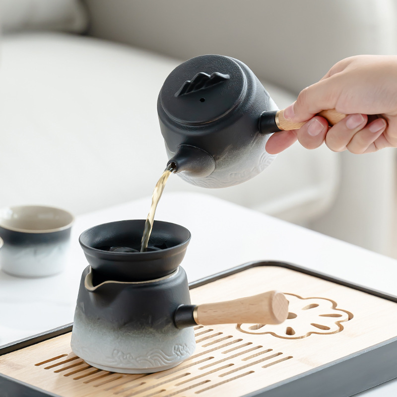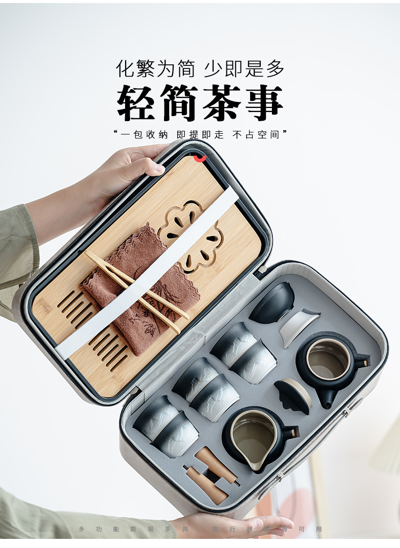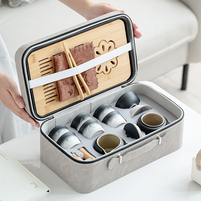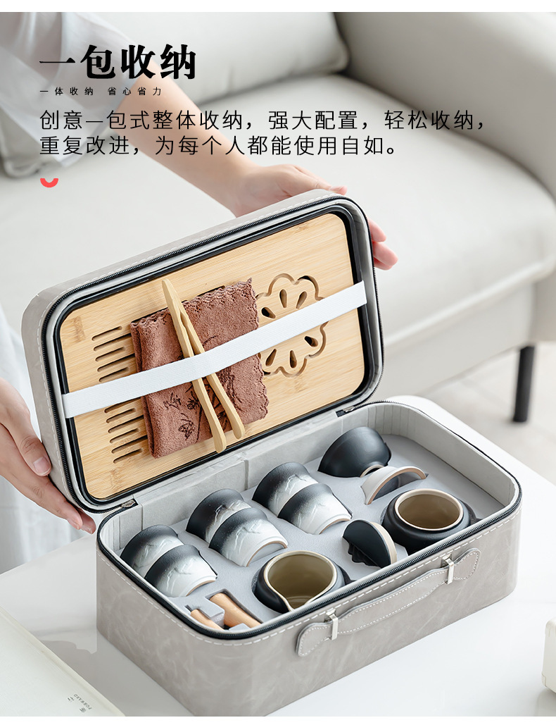 渐变侧把壶旅行茶具套装轻奢简约车载一壶六杯便携式创意商务礼品