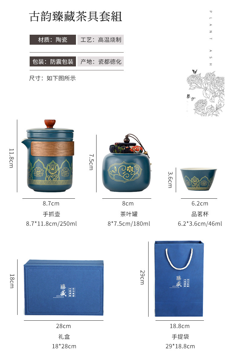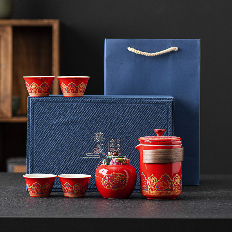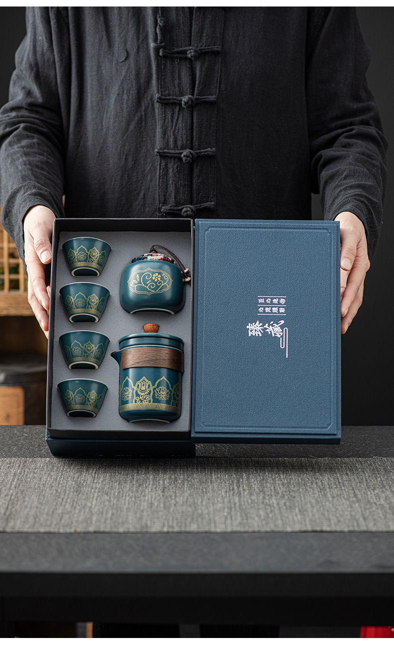 国潮古韵旅行茶具套装 轻奢简约车载户外便携式茶器创意商务礼品