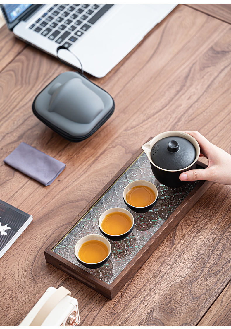 江山旅行茶具 快客杯一壶三杯高颜值小套装茶水分离带盖商务礼品