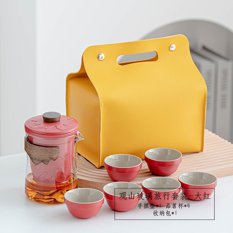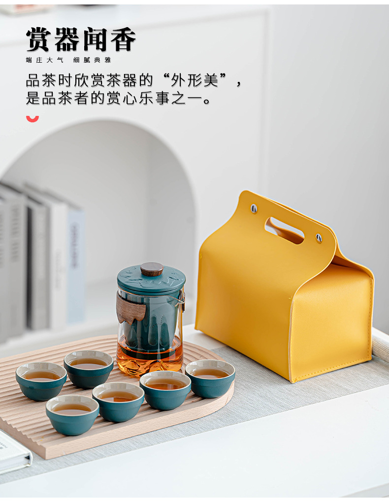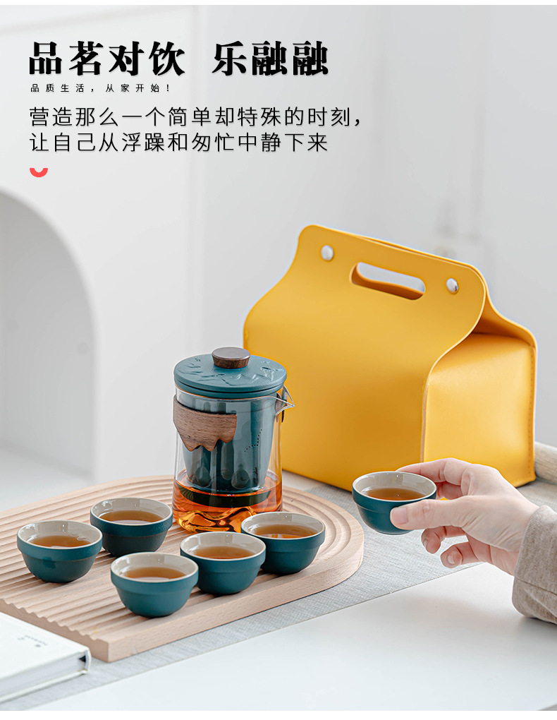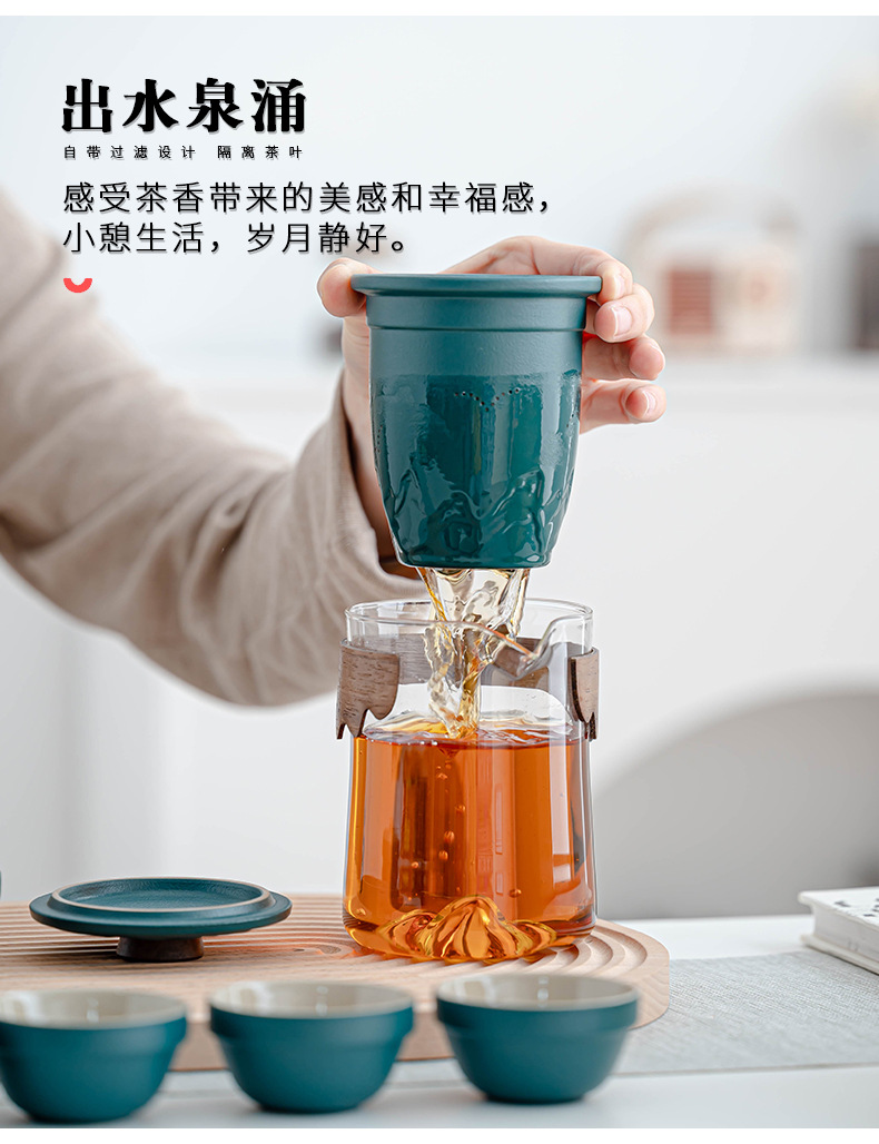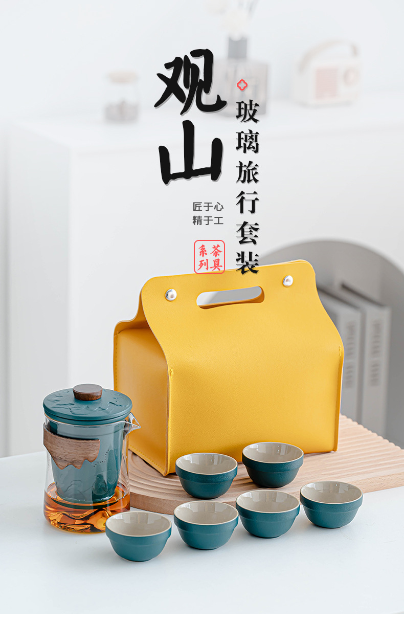 观山玻璃飘逸杯旅行茶具套装高颜值简约便携一壶六杯茶水分离杯