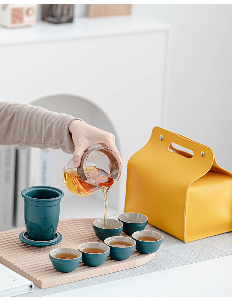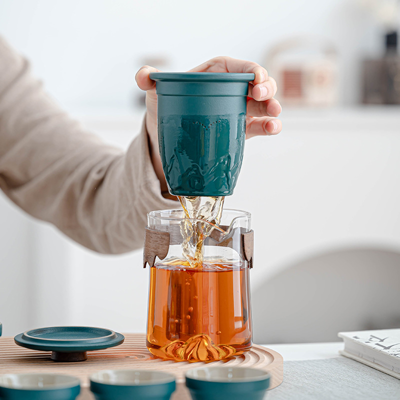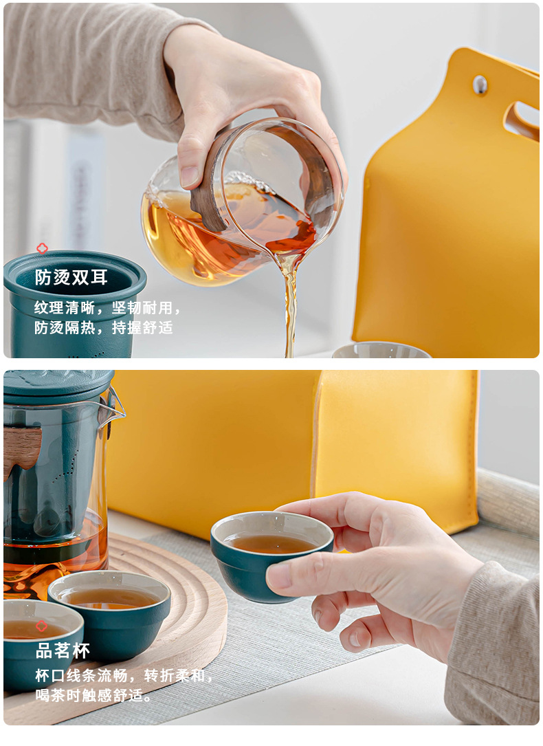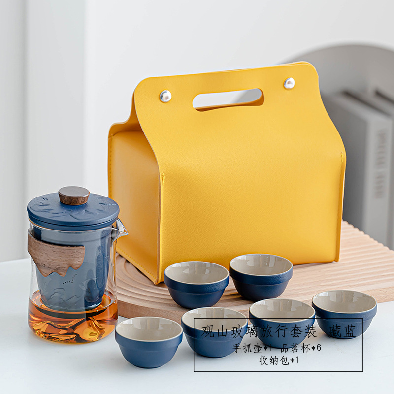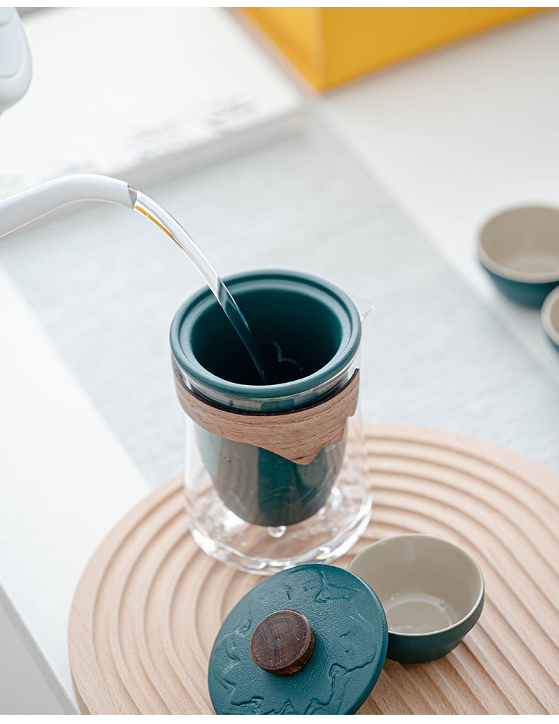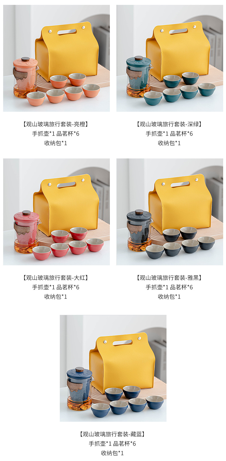 观山玻璃飘逸杯旅行茶具套装高颜值简约便携一壶六杯茶水分离杯