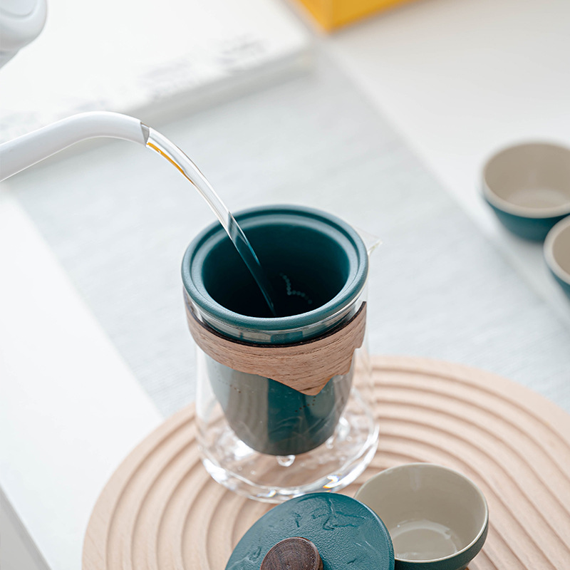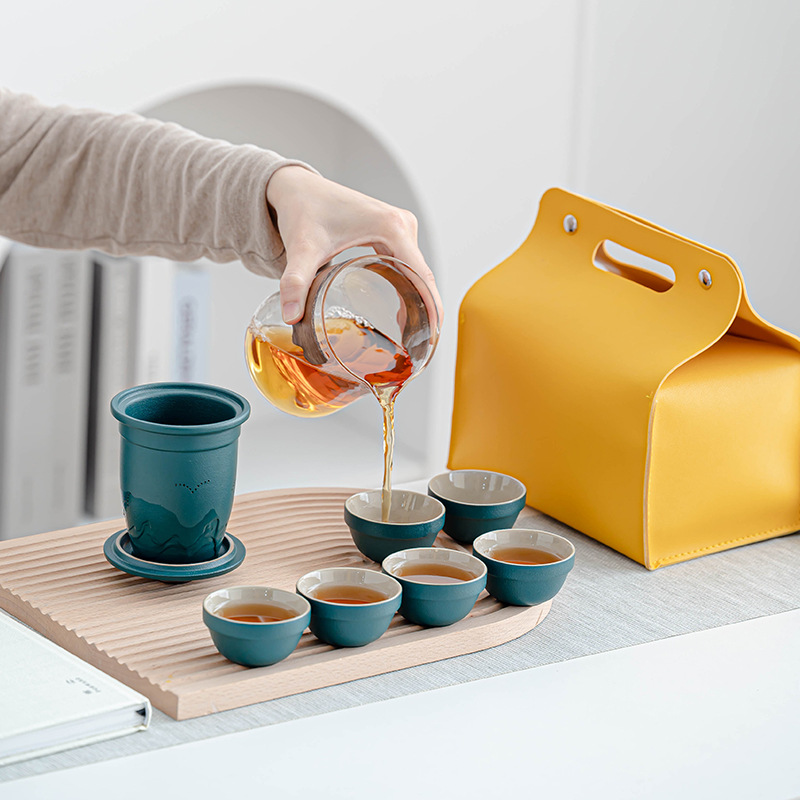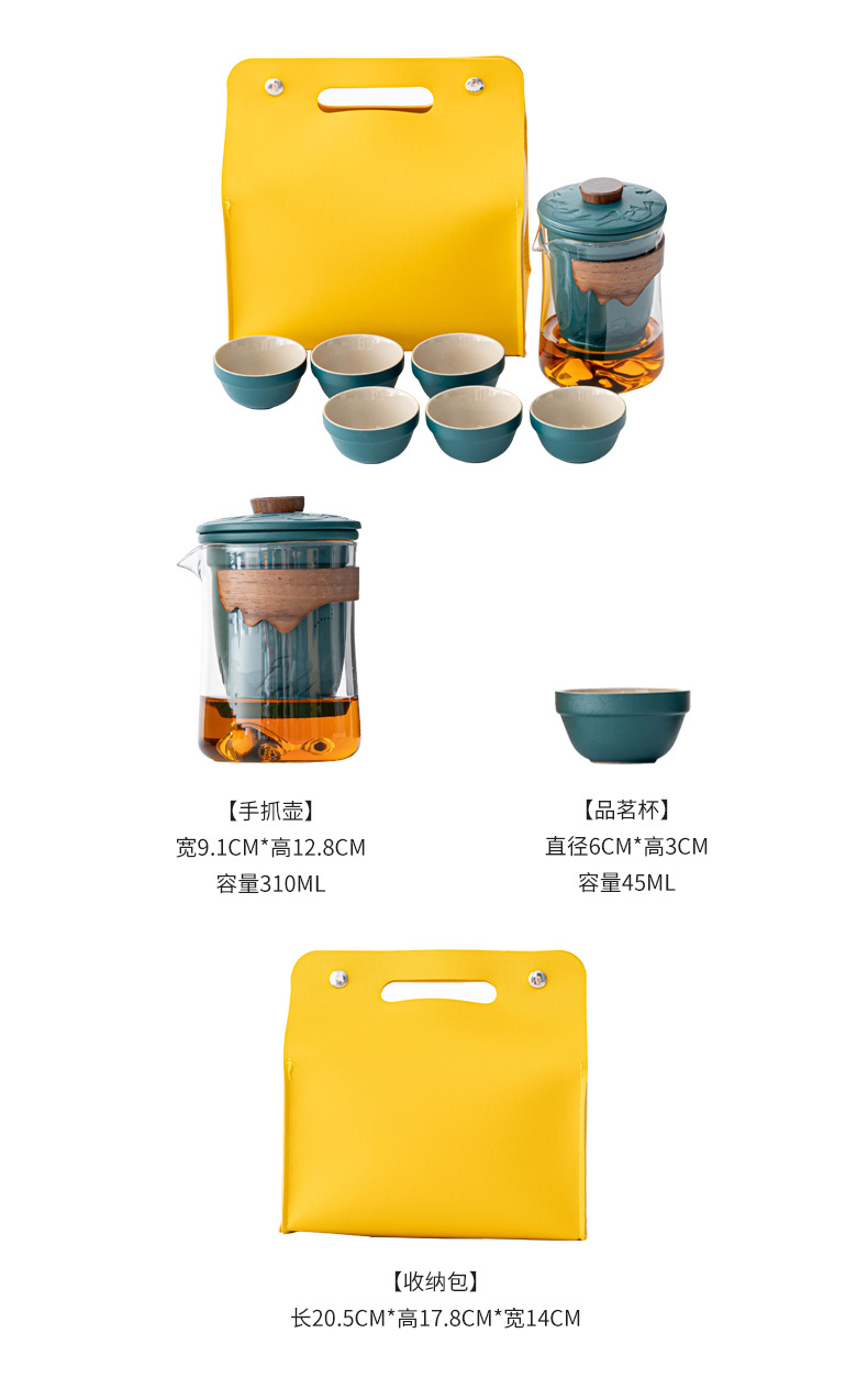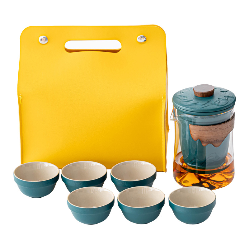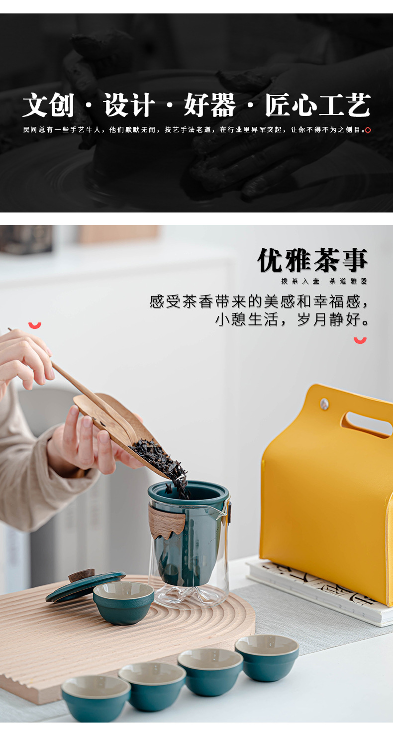 观山玻璃飘逸杯旅行茶具套装高颜值简约便携一壶六杯茶水分离杯