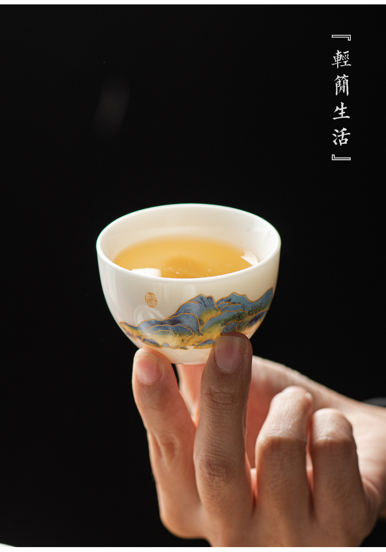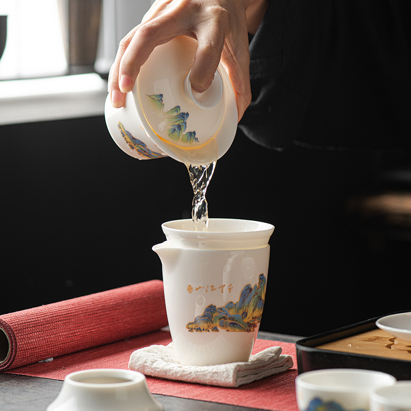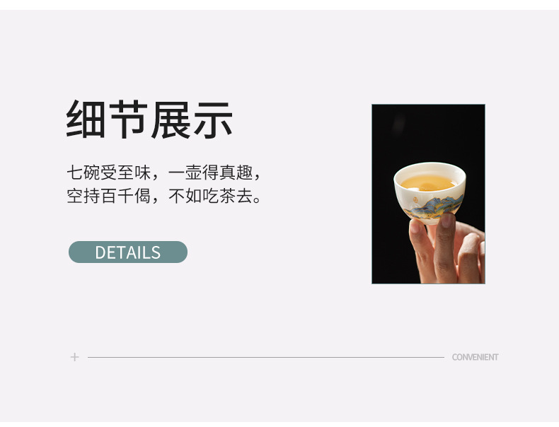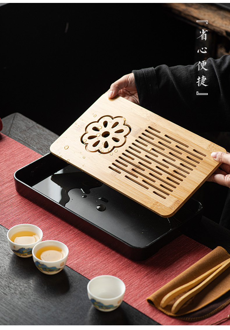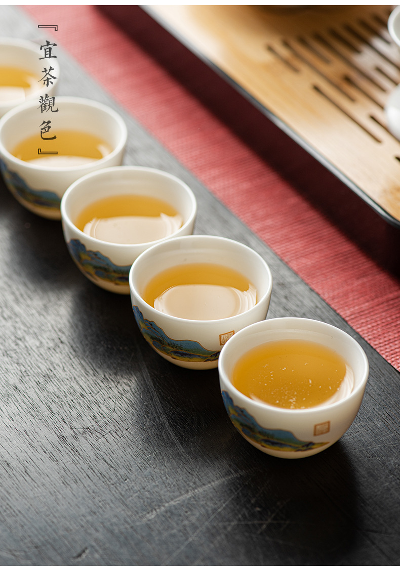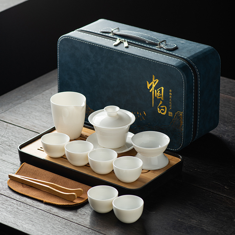 羊脂玉功夫茶具盖碗六杯竹茶盘简约精致轻奢便携沥水茶盘功夫茶具