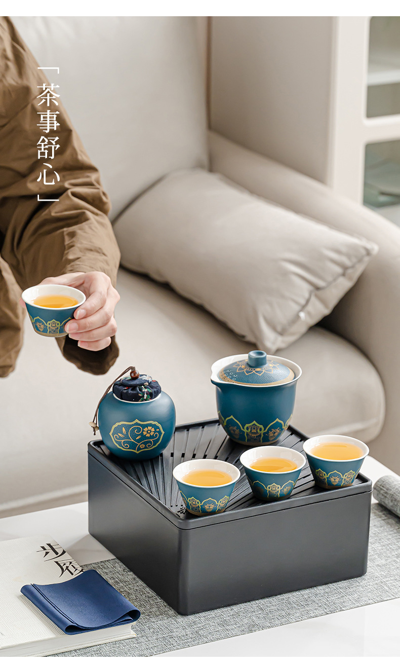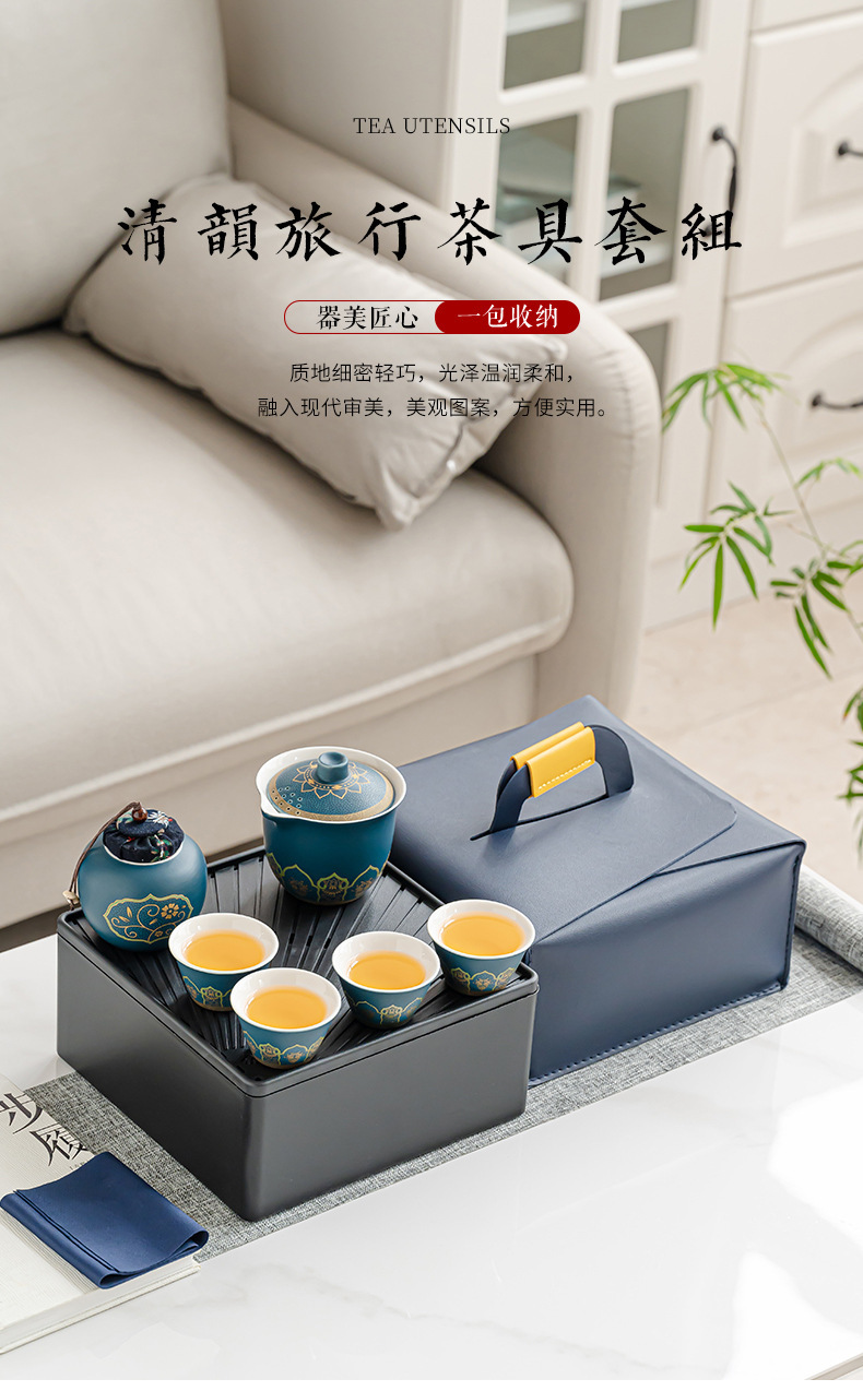 国潮清韵旅行茶具套装 吃茶去轻奢简约车载户外便携式商务礼品
