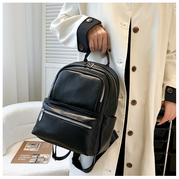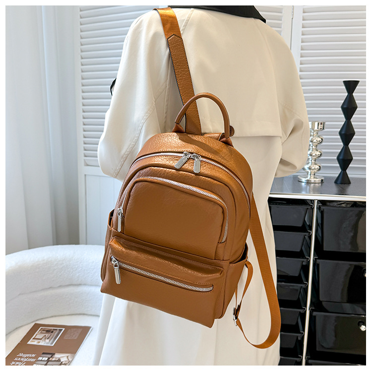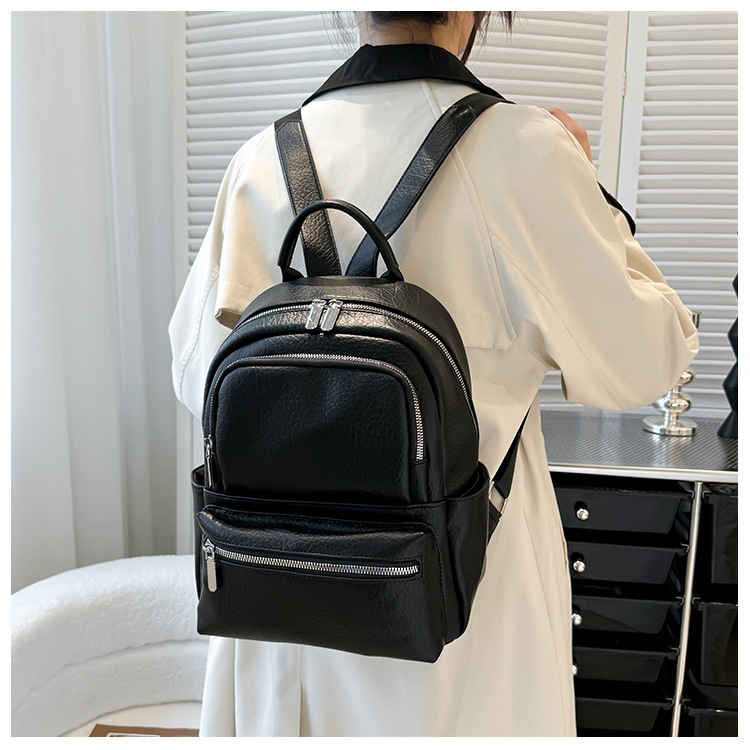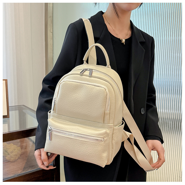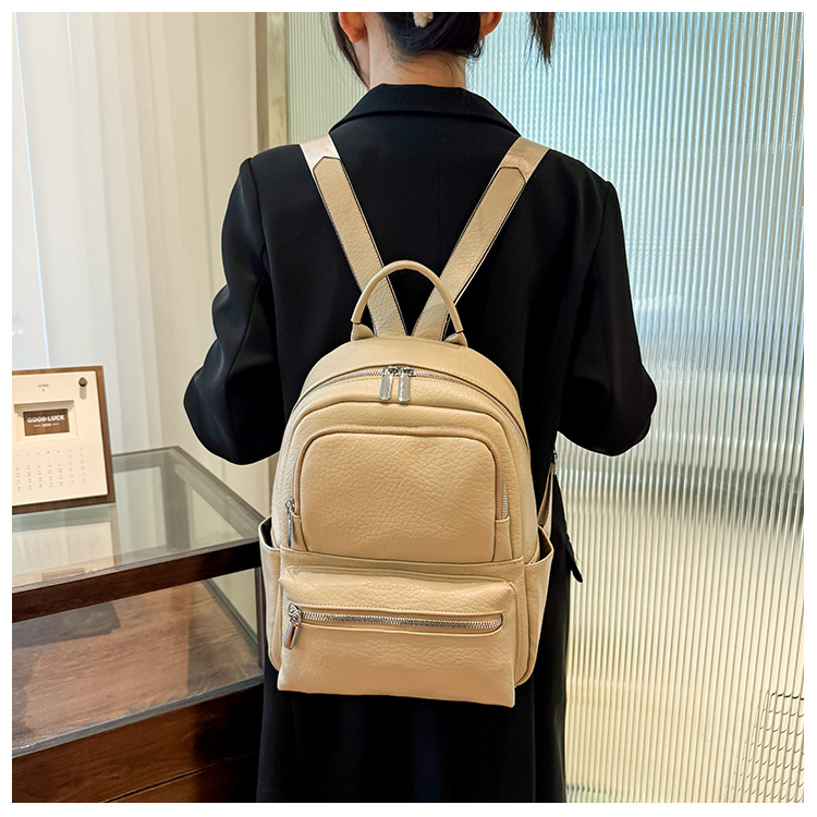 包包女新款时尚简约双肩背包商务出行背包软皮双肩包