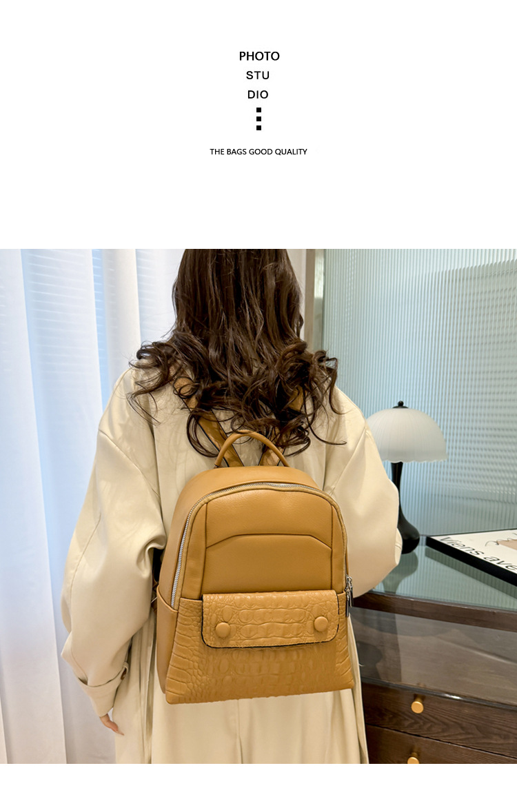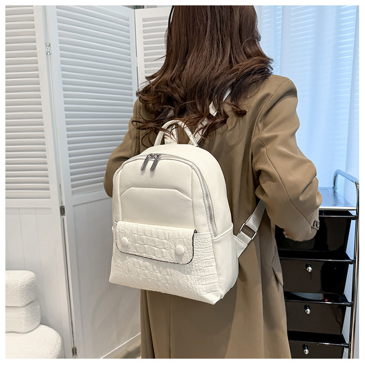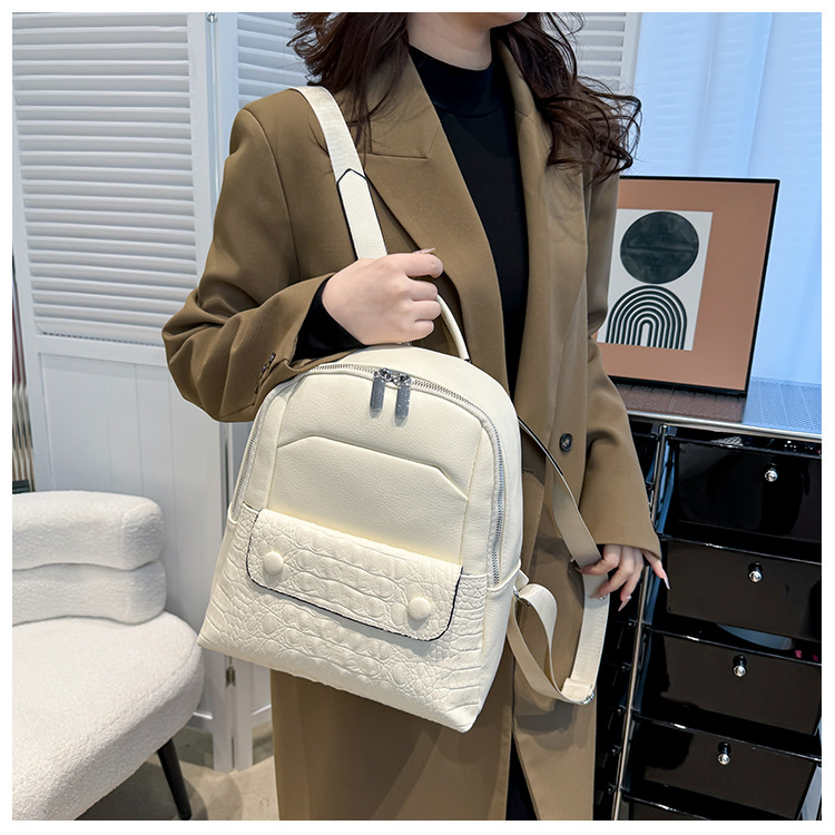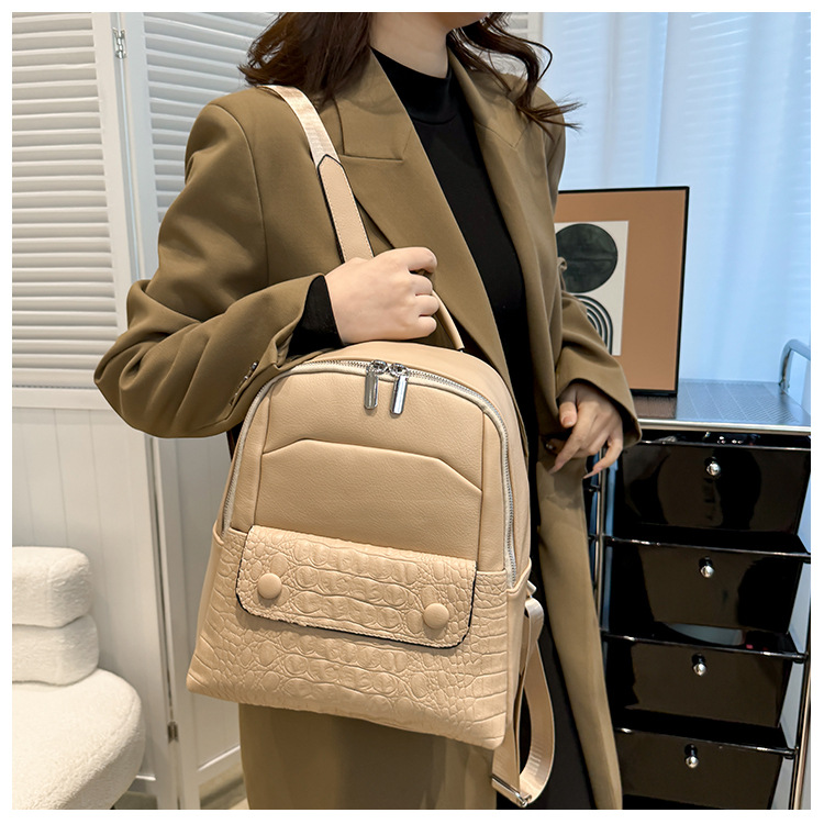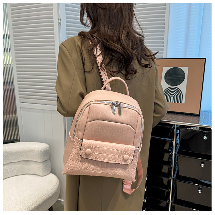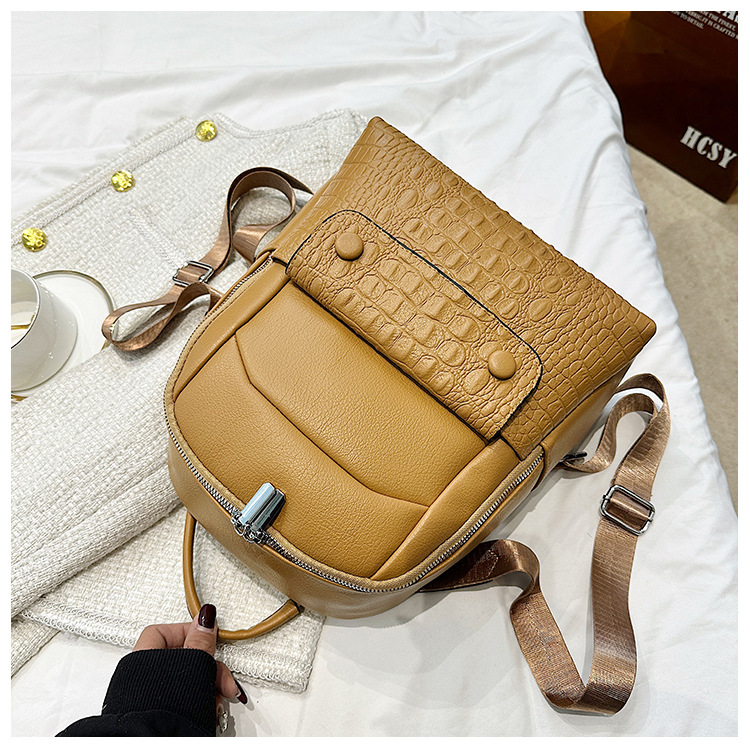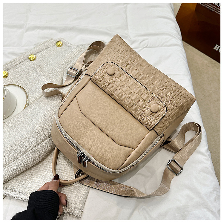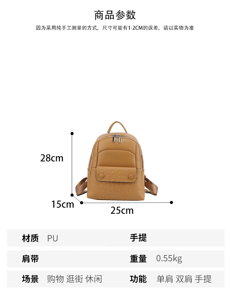 新款潮流女士双肩包时尚鳄鱼纹单肩手提背包