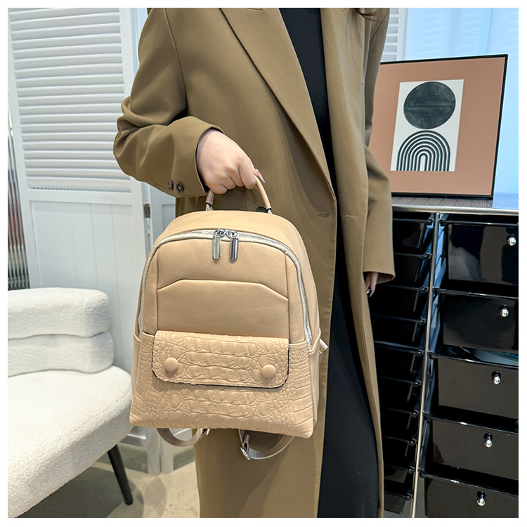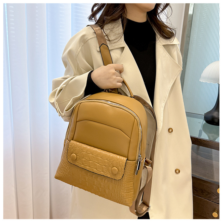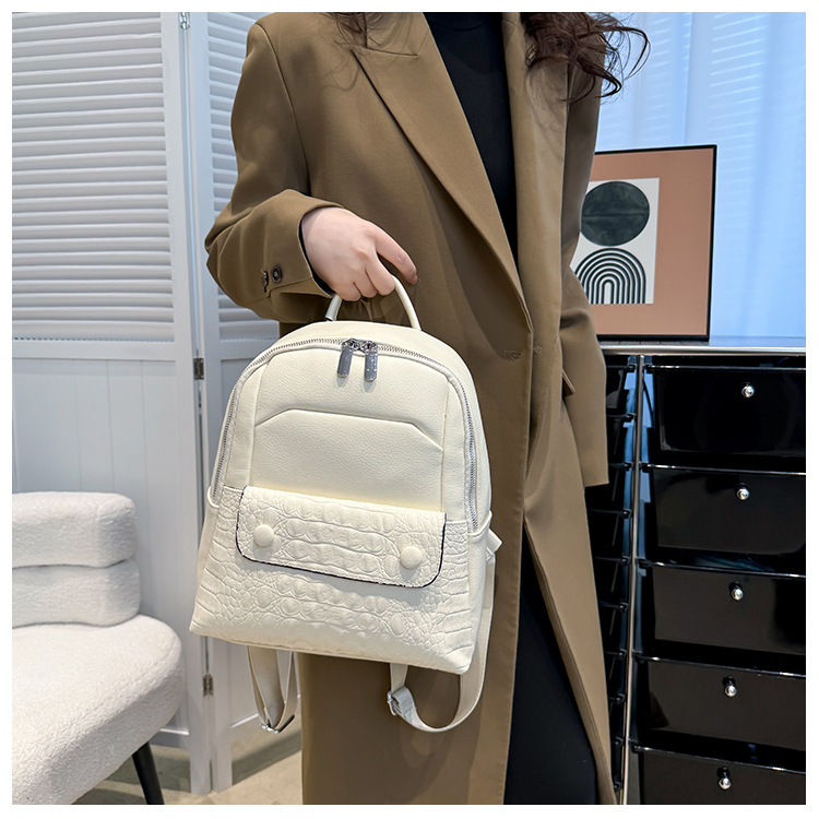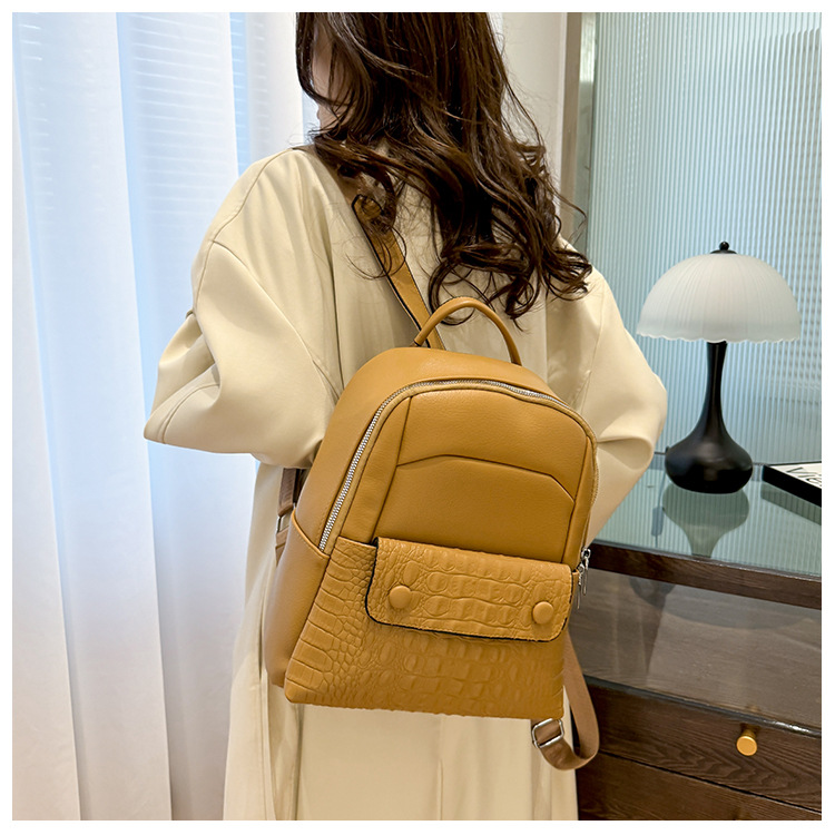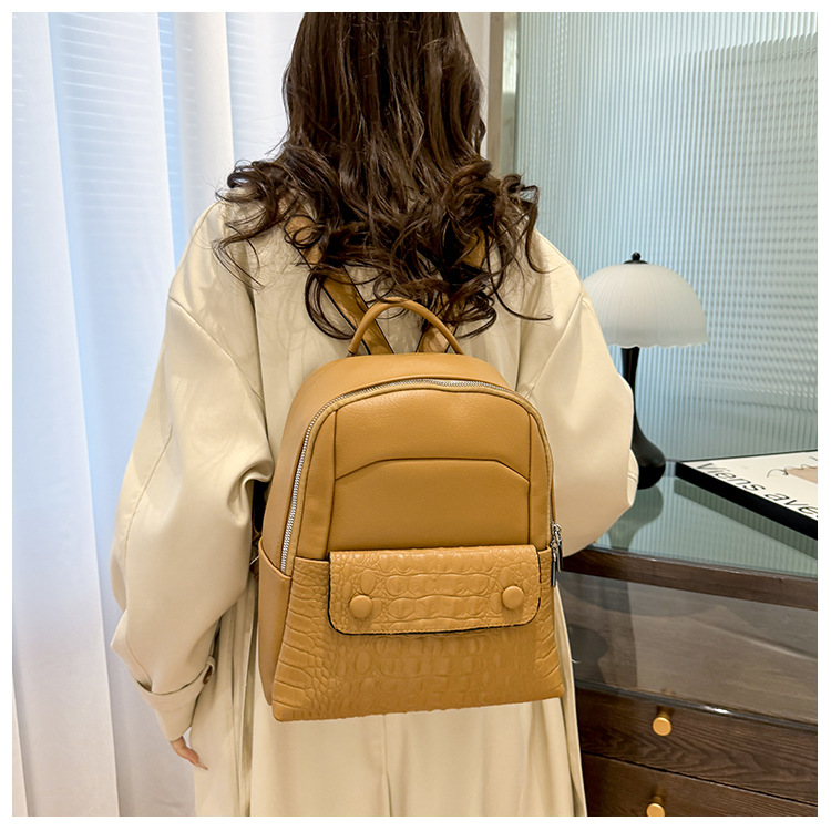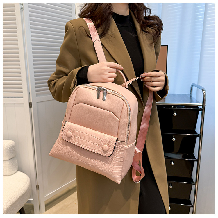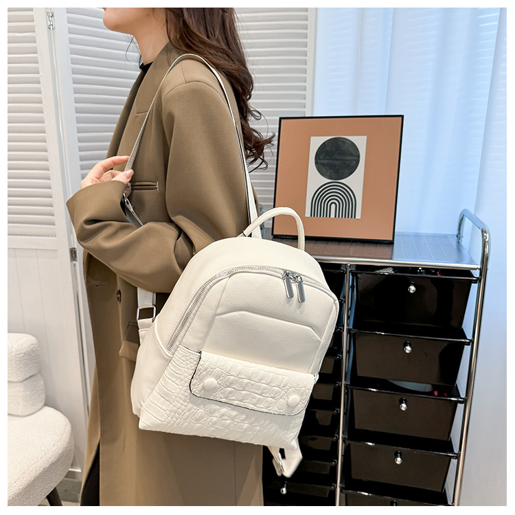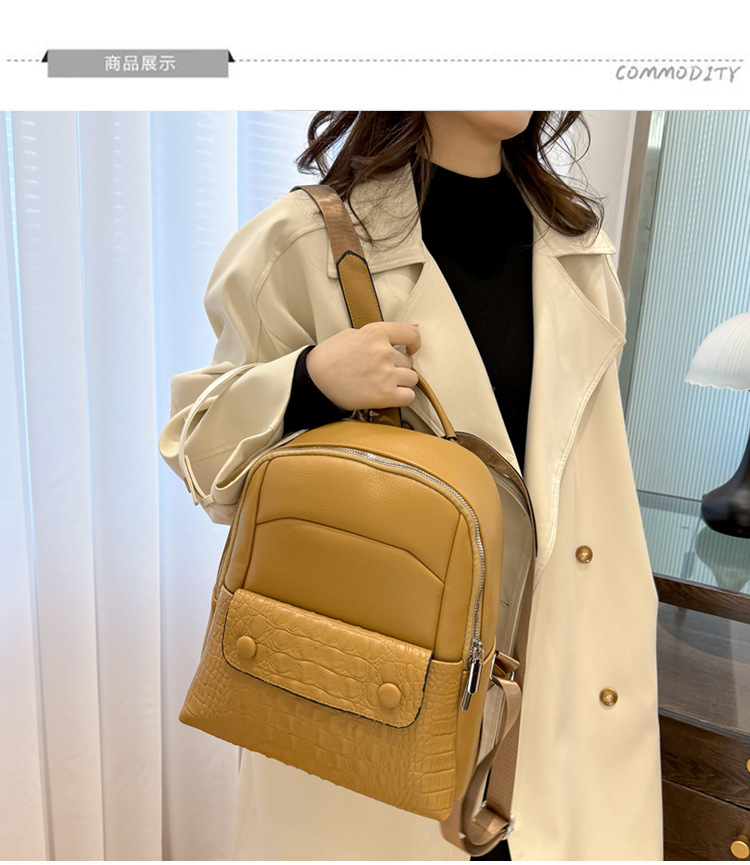 新款潮流女士双肩包时尚鳄鱼纹单肩手提背包