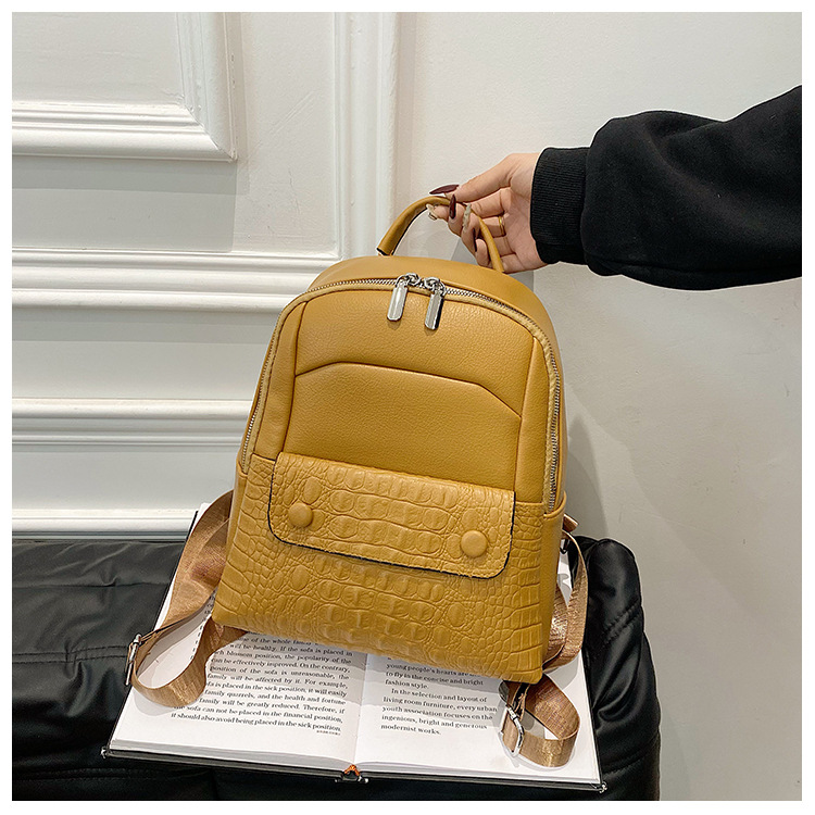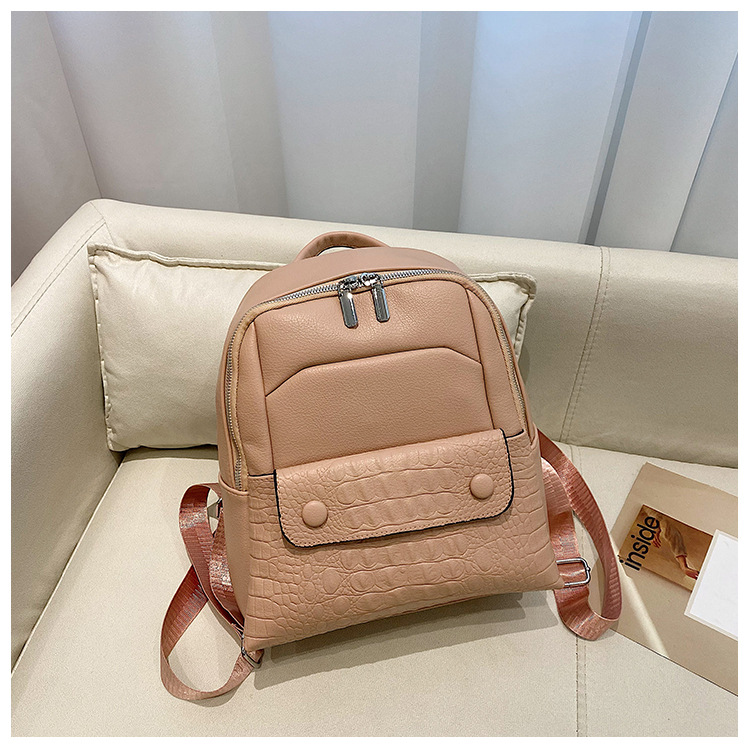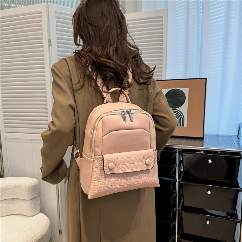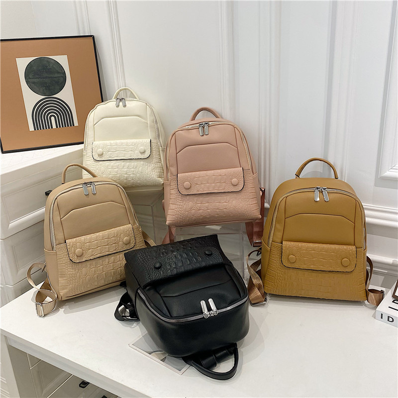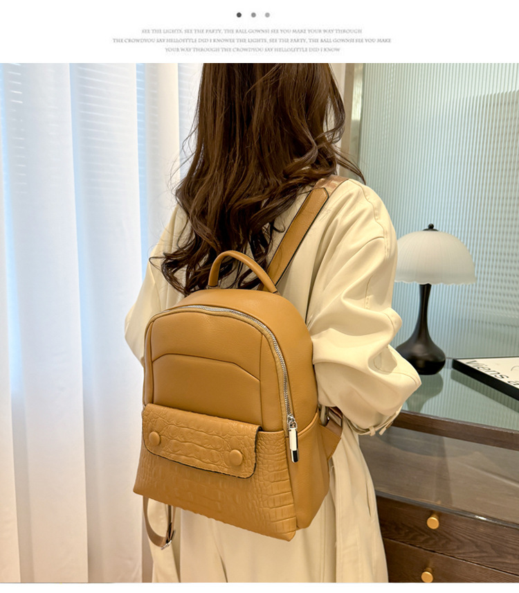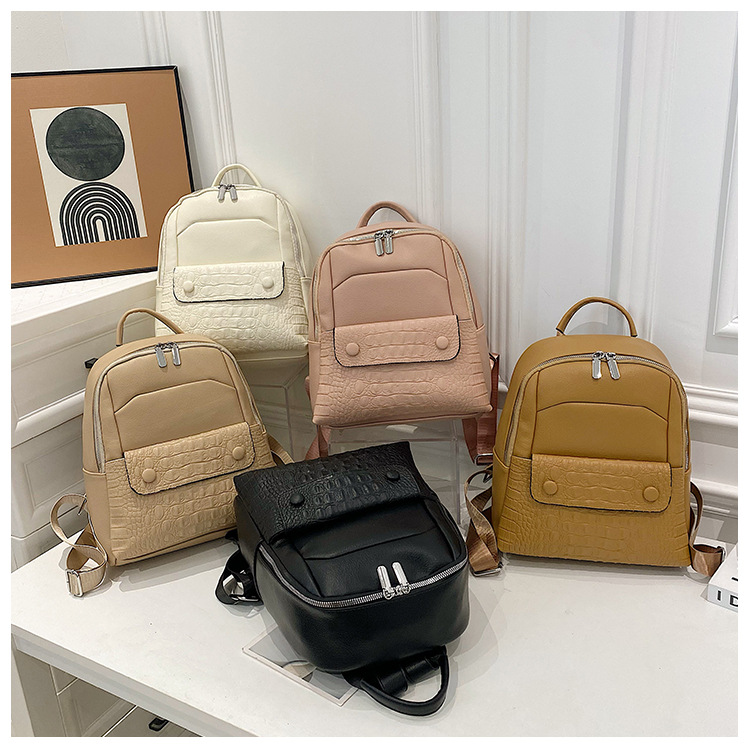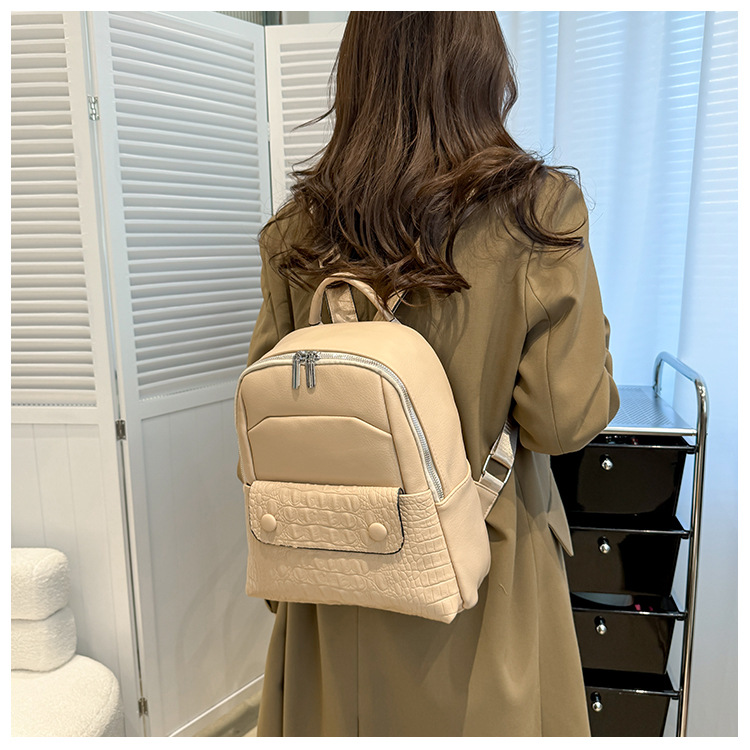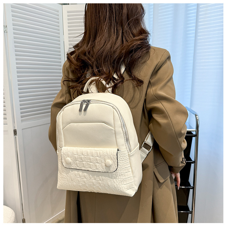 新款潮流女士双肩包时尚鳄鱼纹单肩手提背包